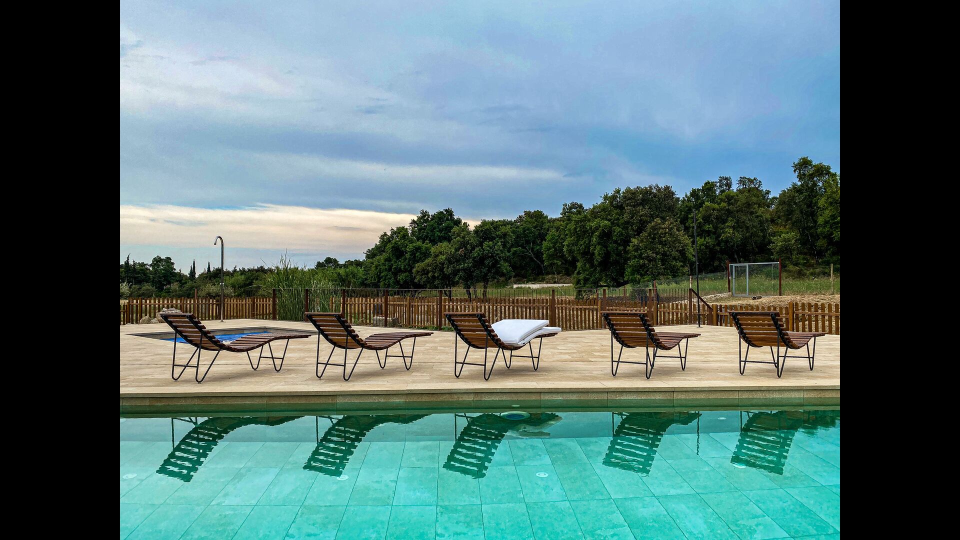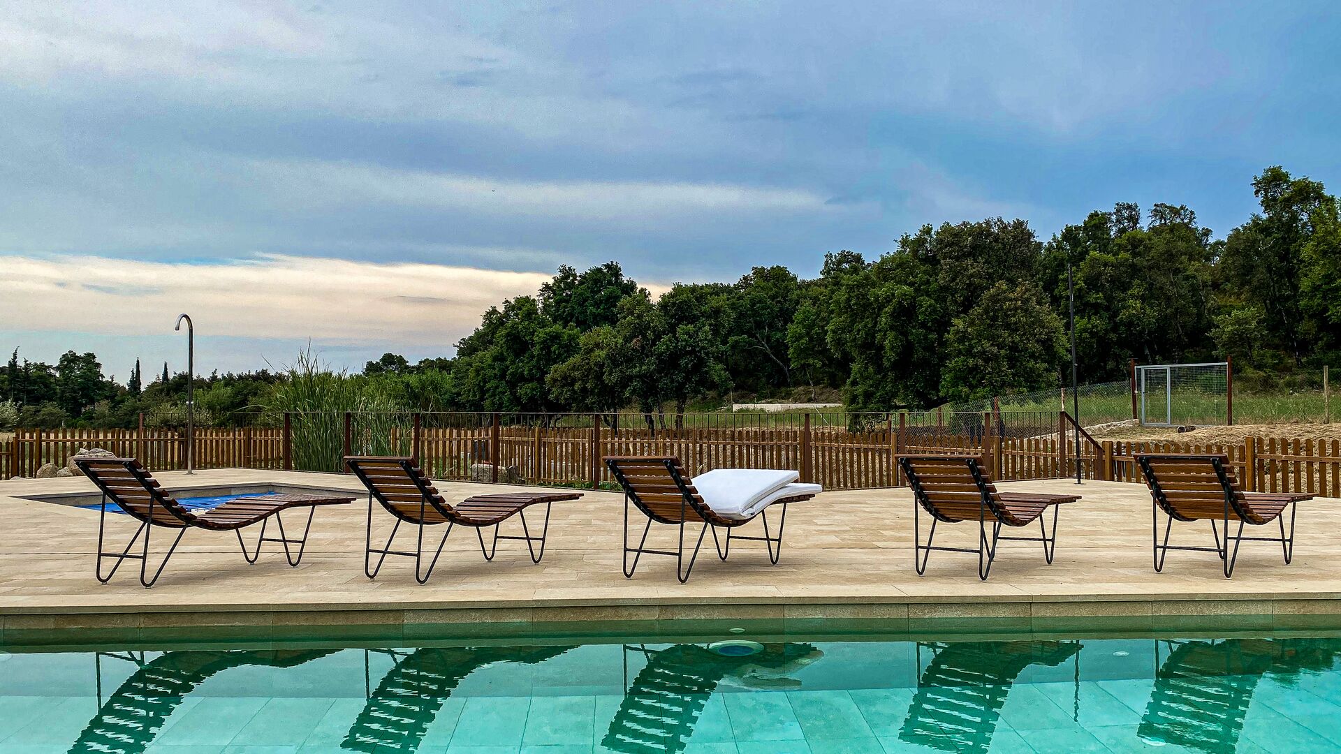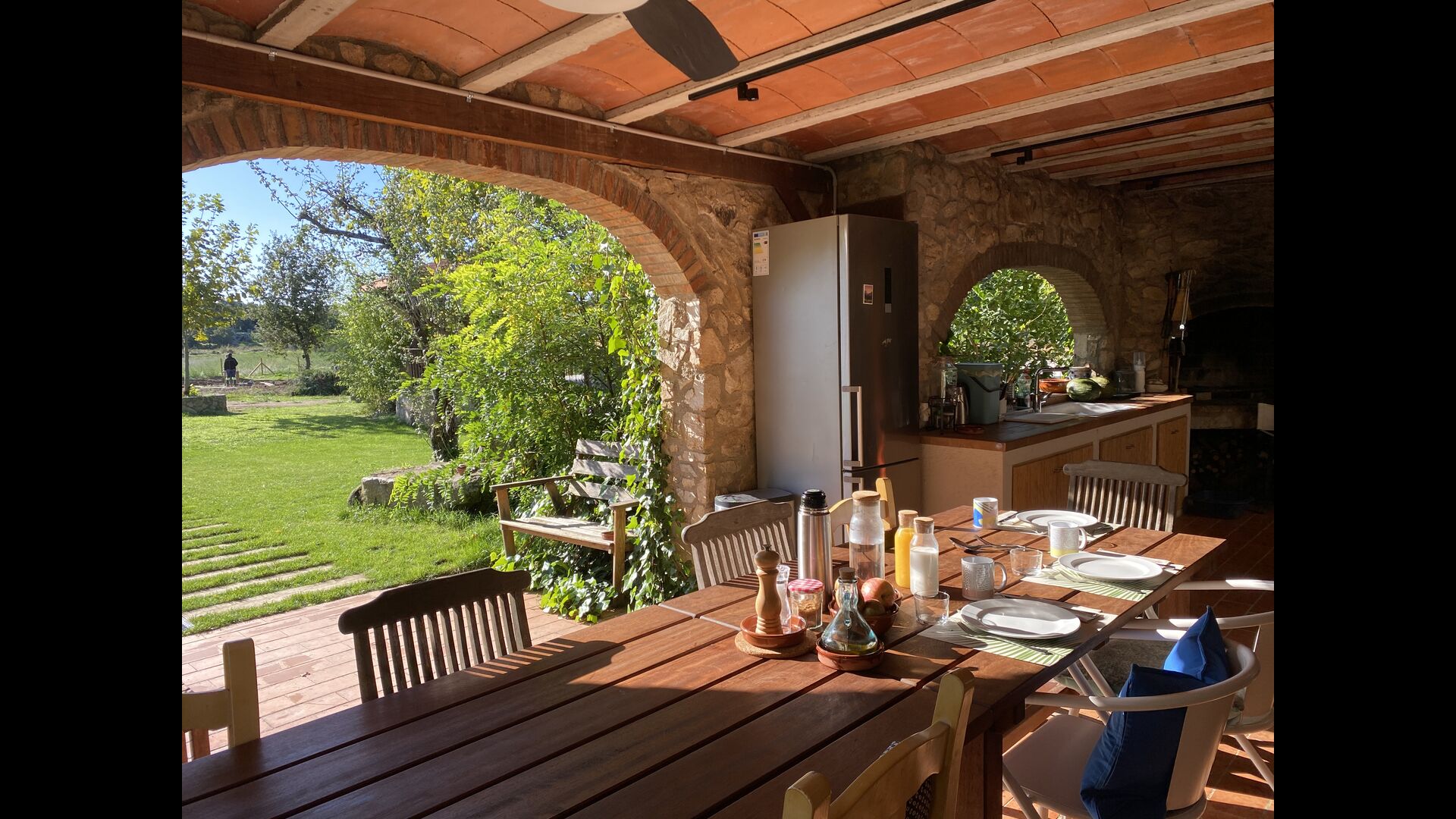 Im Garten gibt es viele verschiedene Räume und Ecken, zwei große Veranden mit Grillmöglichkeiten und auch einen schönen Pavillon aus Stein und Holz, alles am Pool und Whirlpool, beide Salzwasser. Sie finden auch Sportgeräte wie einige Fahrräder, Schläger, Netze, Bälle, Tore und traditionelles katalanisches Bowling. Erwähnenswert sind auch die vielzahligen Routen zum Wandern, Radfahren oder Mountainbiken, die das Mas umgeben.