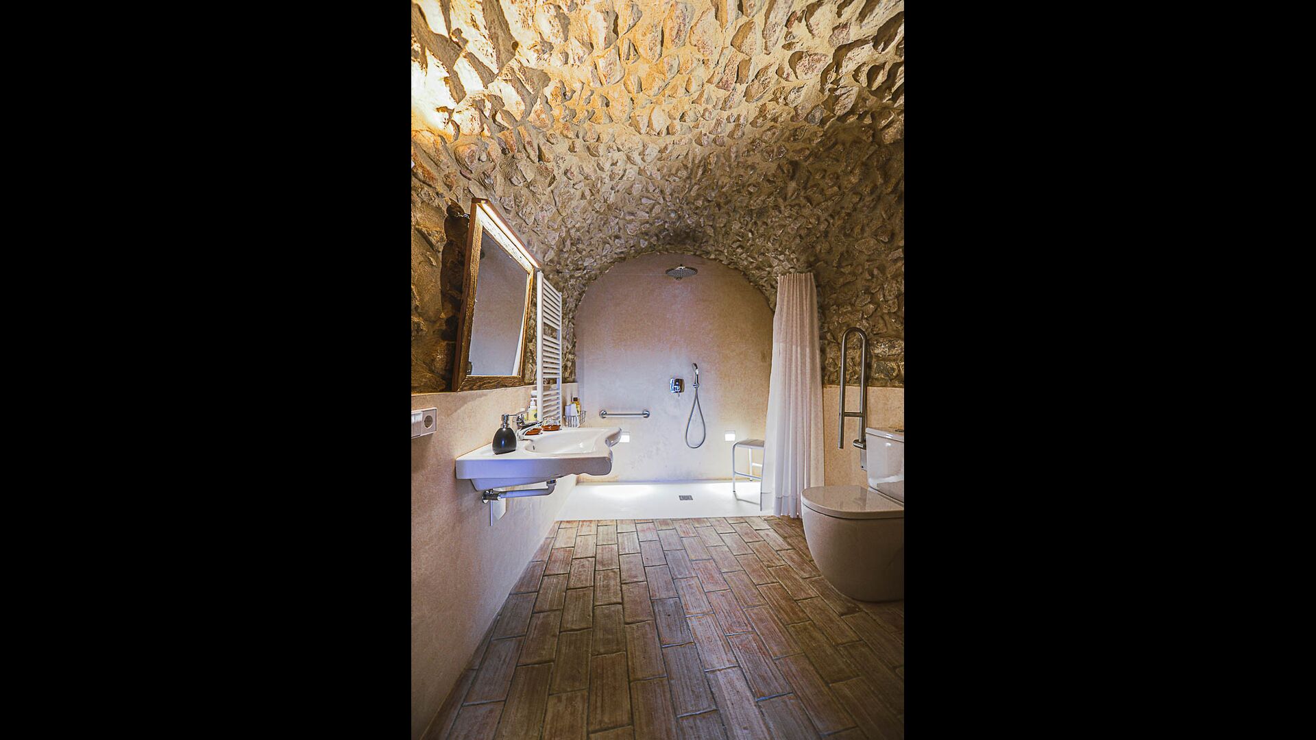 Um es zusammenzufassen: Alle Zimmer (7) verfügen über ein voll ausgestattetes Badezimmer. Alle Wohnungen verfügen über eine Klimaanlage, mit Ausnahme der Tramuntana, aufgrund ihrer halbrunden Decke.Es ist nach Norden ausgerichtet und sehr kühl. Es verfügt über einen effizienten Deckenventilator.