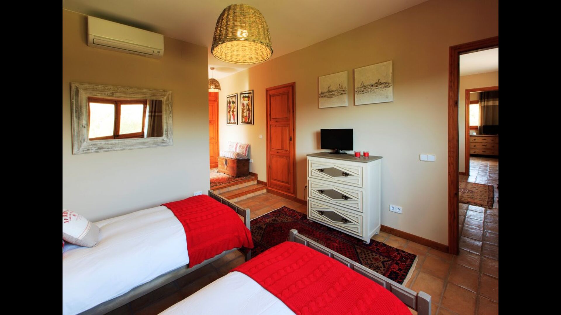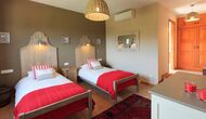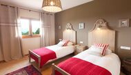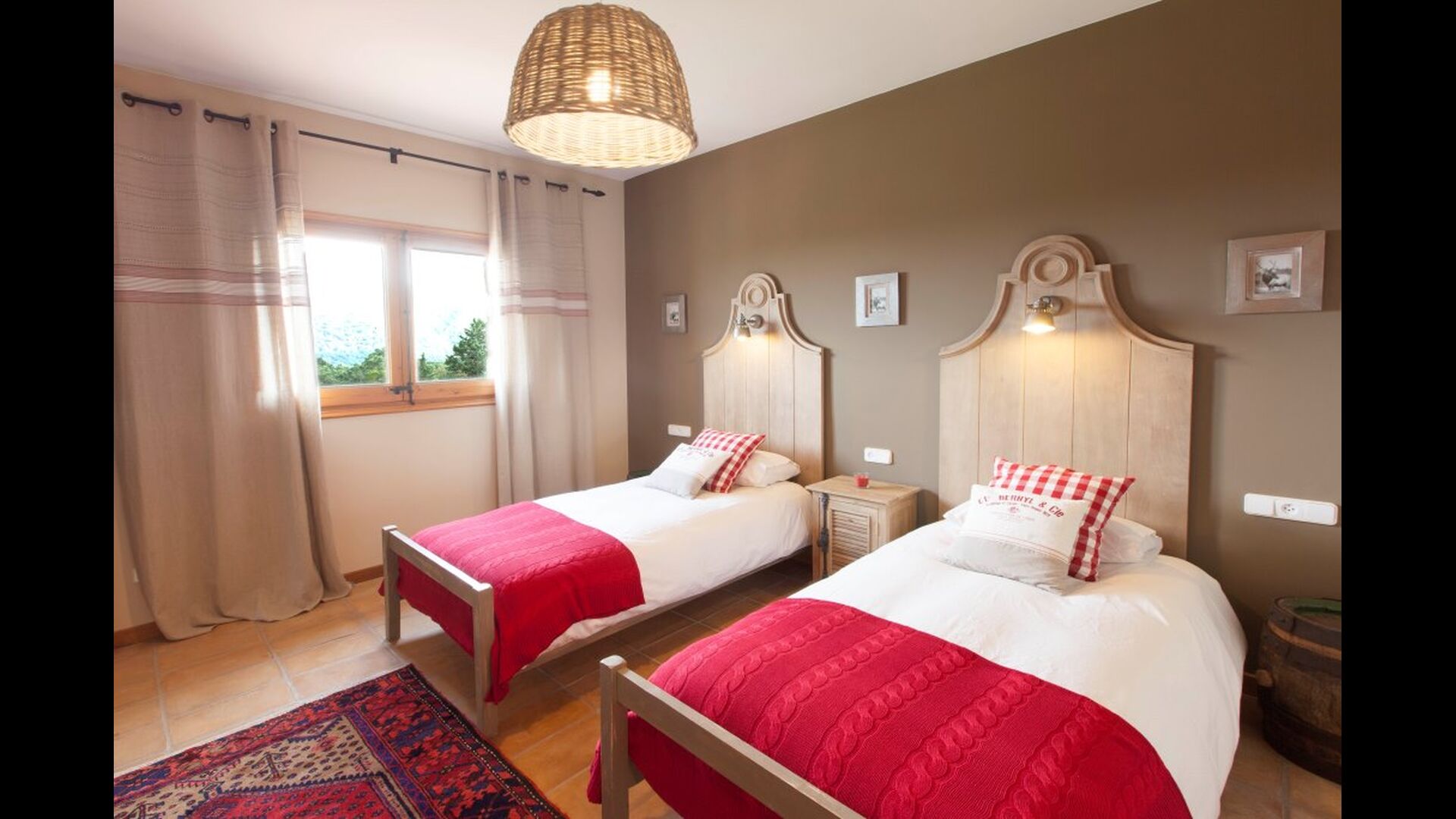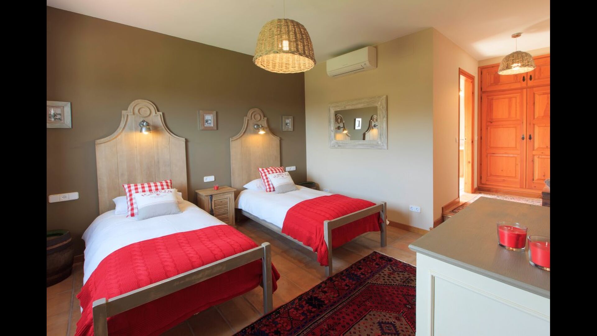 Die Red Mountain Suite ist eine Suite von 35 m² mit zwei Einzelbetten, komplett ausgestattet mit TV, Badezimmer mit Dusche und Badewanne und Kleiderschrank. Es überblickt die Gärten, den wunderschönen Naturpark Montnegre und die ruhige und gemütliche Terrassenecke, wo der Steintisch neben den Bäumen liegt, um sich auszuruhen. Es befindet sich im Südflügel des Dachgeschosses. Seine Einrichtung erinnert an die nordischen gemütlichen Häuser, die die intensive rote Farbe mit Holz- und Khakitönen kombinieren, die den gesamten Aufenthalt mit Licht und Farbe durchdringen.