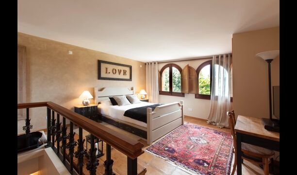 Die Romantic Attic Suite ist eine ganz besondere und romantische Suite von 40m2 mit Doppelbett in der obersten Etage des Hauses, ausgestattet mit TV und DVD und Kleiderschrank. Es hat ein großes Badezimmer mit Dusche und Badewanne mit spektakulärem Blick über das Anwesen, den Naturpark Montnegre und die Stadt Blanes und das Meer. Darüber hinaus bietet das Zimmer vom Haupteingang des Hauses aus einen herrlichen Blick über das Anwesen, dessen Anziehungspunkt die fantastischen Oliven- und Palmenbäume und ein wunderschöner Pinienwald sind. Das Dekor ist eine Kombination aus neutralen und schwarzen Farben, die ihm eine einzigartige Persönlichkeit verleihen und den Aufenthalt zu einer sehr romantischen und sehr gemütlichen Ecke machen. Das Wort „Liebe” aus Echtholz dominiert den Raum und verleiht ihm eine ganz besondere Noteberühren.