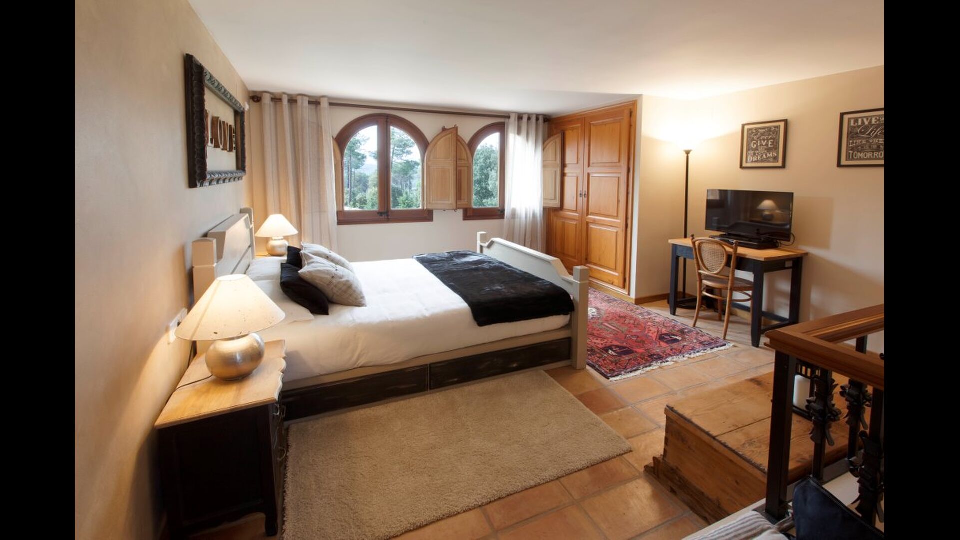 Die Country Suite ist eine 30 m² große Suite mit Doppelbett, komplett ausgestattet mit TV, Badezimmer mit Dusche und Badewanne und Kleiderschrank. Es befindet sich im Südflügel der obersten Etage und überblickt den wunderschönen Olivenbaum gegenüber dem Haupteingang des Hauses. Das Dekor ist von der französischen Landschaft mit karierten Details, Leder und Metall inspiriert.