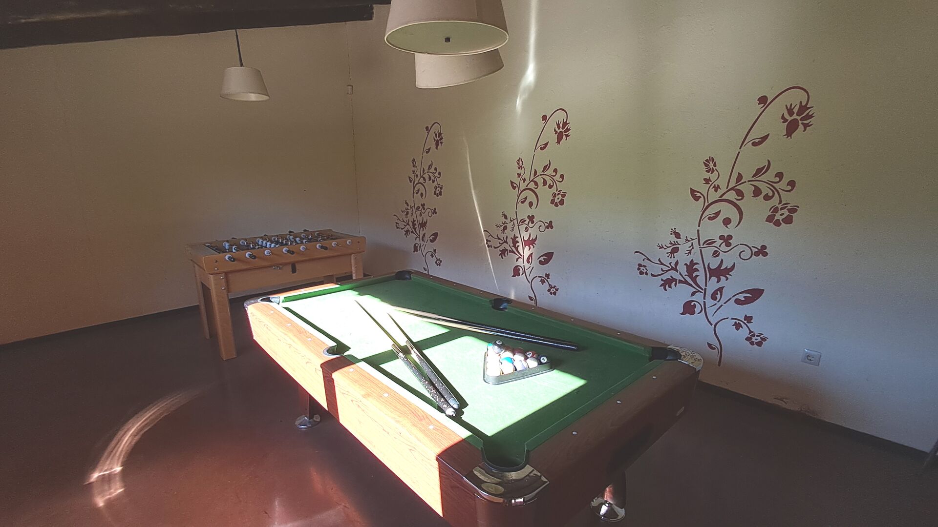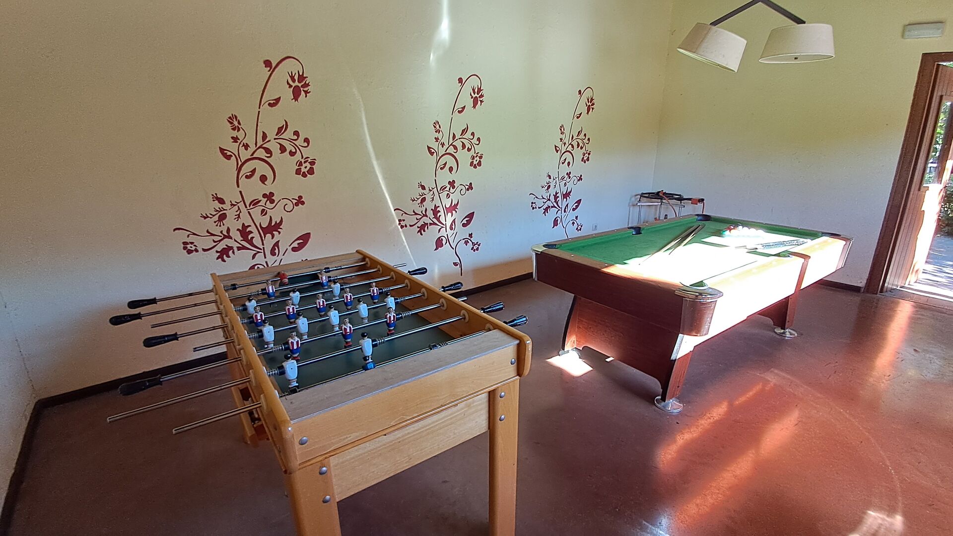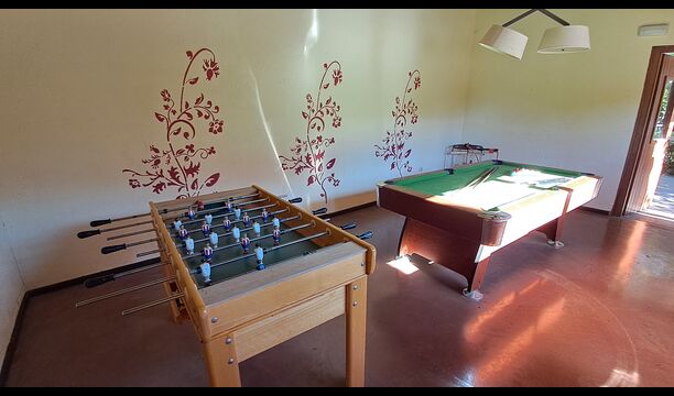 Dieses Ferienhaus ist einzigartig wegen der Kombination von Stadt- und Gartenbereich mit Pool, die viele Tätigkeiten anbietet: Im Swimmingpool der eine Größe von 72 m2 hat und eingezäunt ist, können Sie schwimmen, spielen oder einfach in der Hitze abkühlen, und Sie können in den Liegestühlen entspannen. Auf dem großen Rasen können Sie Ball spielen, es gibt Schwingen für die kleinste in der Gruppe, und Sie können Tischtennis spielen. Außerdem gibt es im Erdgeschoß, einen kleinen Spielraum mit Billard und Tischfußball. Weiter, die Straße hinunter, gibt es Bäckerei, Supermärkte und Bars. In Masia de Las Flores, wohnen Sie mit ausgezeichneten Gelegenheiten im Hinterhof und Geschäften vor der Tür - dieses ist aussergewöhnlich.