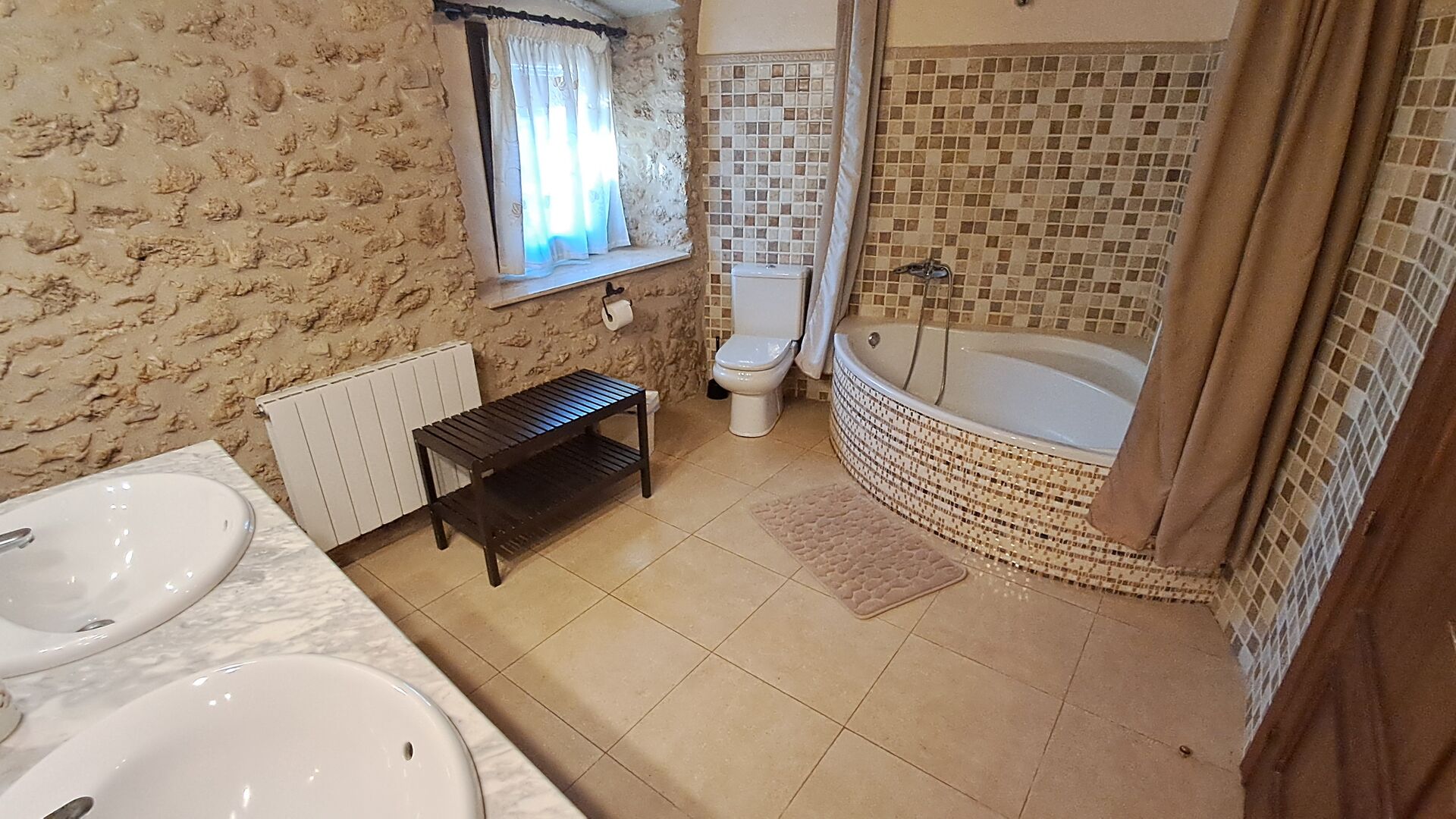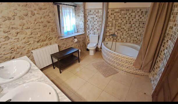 Wie das übrige, sind die Schlafzimmer auch von einem hohen Standard - die Besitzer haben sich wirklich mit dem Design bemüht. Alle Zimmer sind verschieden dekoriert, aber für alle gelten Räumlichkeit und Qualität. Wenn Sie viele Leute zusammen reisen, kann es ab und zu angenehm sein, sich zurückzuziehen um die Ruhe alleine zu genießen, und die Schlafzimmer sind für diesen Zweck sehr geeignet. Im Ganzen gibt es im ersten und zweiten Stock 11 Schlafzimmer - 7 von ihnen sind Doppel- und 4 sind Dreibettzimmer. Diese schließen ein Mädchenschlafzimmer mit rosafarbenen Bettwäschen und ein Jungenzimmer mit blauen Betten ein. 7 von den Schlafzimmer haben eigene Bäder, 3 von ihnen mit Badewanne. Es gibt 8 moderne und geräumige Badezimmer im Haus..