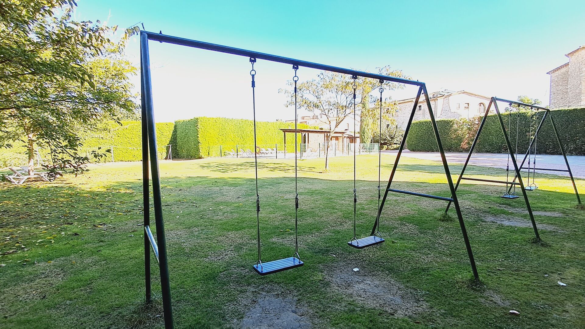 •Großer Garten mit schönem Rasen und Schwingen