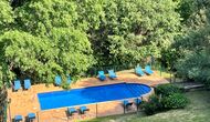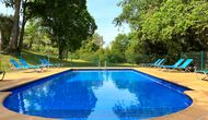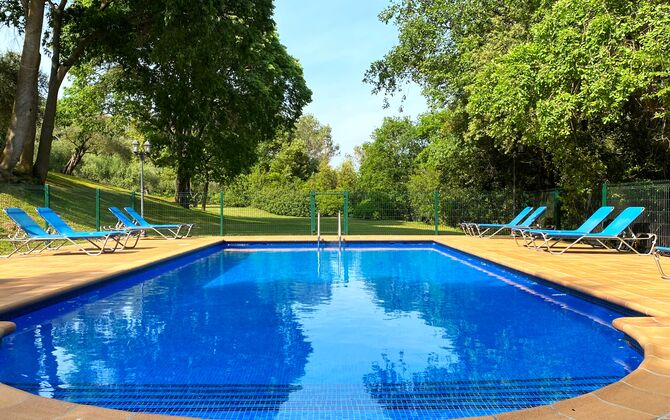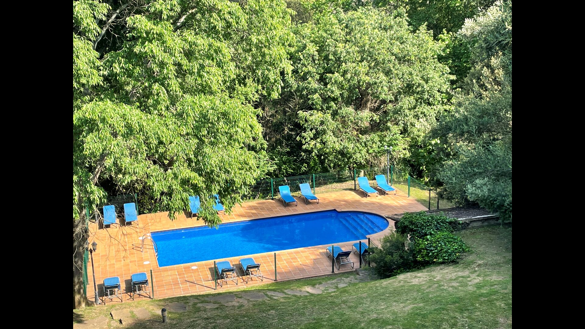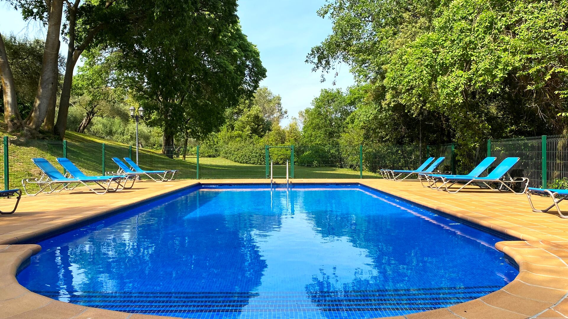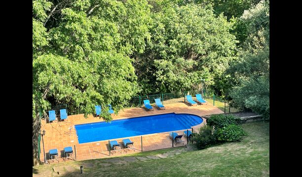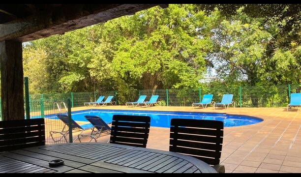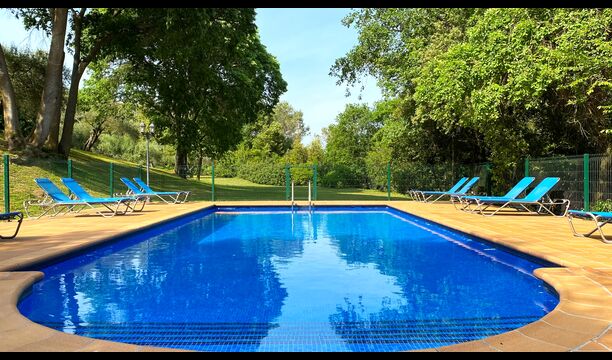 Der Poolbereich liegt in fantastischer grüner Umgebung unterhalb des Hauses. Es ist fast in einen Olivenwäldchen gelegen mit vielen Sonnenliegen und eine überdachte Terrasse. Auch die Orangen und Mandarinen tragen zum Gefühl des Alleinseins in der katalanischen Natur bei. Für die Kinder hat der Garten eine kleine Fußballfeld mit Toren. Das Haus hat drei große Terrassen mit Sitzgelegenheiten und Liegestühlen. Es gibt mehrere Grillplätze.
