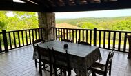Von der Terrasse mit Grillplatz, kommen Sie in die Empfangsdiele hinein. Wenn Sie geradeaus gehen, kommen Sie zu der "Truit" Einheit. Es ist sehr geräumig und mit hoher Decke. Es hat eine große offene Küche mit allem Komfort (Geschirrspüler, Mikrowelle, Backofen, Kochplatten, Waschmaschine). Es gibt auch einen Essbereich mit Esstisch, Sofaecke mit Fernseher und eine Toilette. Es gibt Zugang zu einer Terrasse mit Hängematte und eine schöne Aussicht.