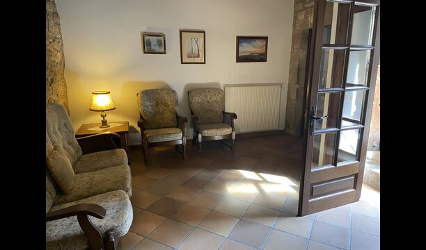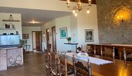 Im anderen Seite des Hauses, auch im ersten Stock, liegt die Einheit "Exida". Der erste Raum ist ein großer Gemeinschaftsraum mit einem großen Esstisch und angrenzender Toilette. Es gibt einen Essbereich und eine weitere voll ausgestattete Küche mit Geschirrspüler, Backofen, Kochplatten, Mikrowelle etc. Als Dekoration hat man der alte eingebaute Backofen bewahrt.