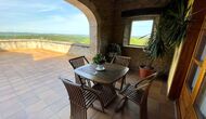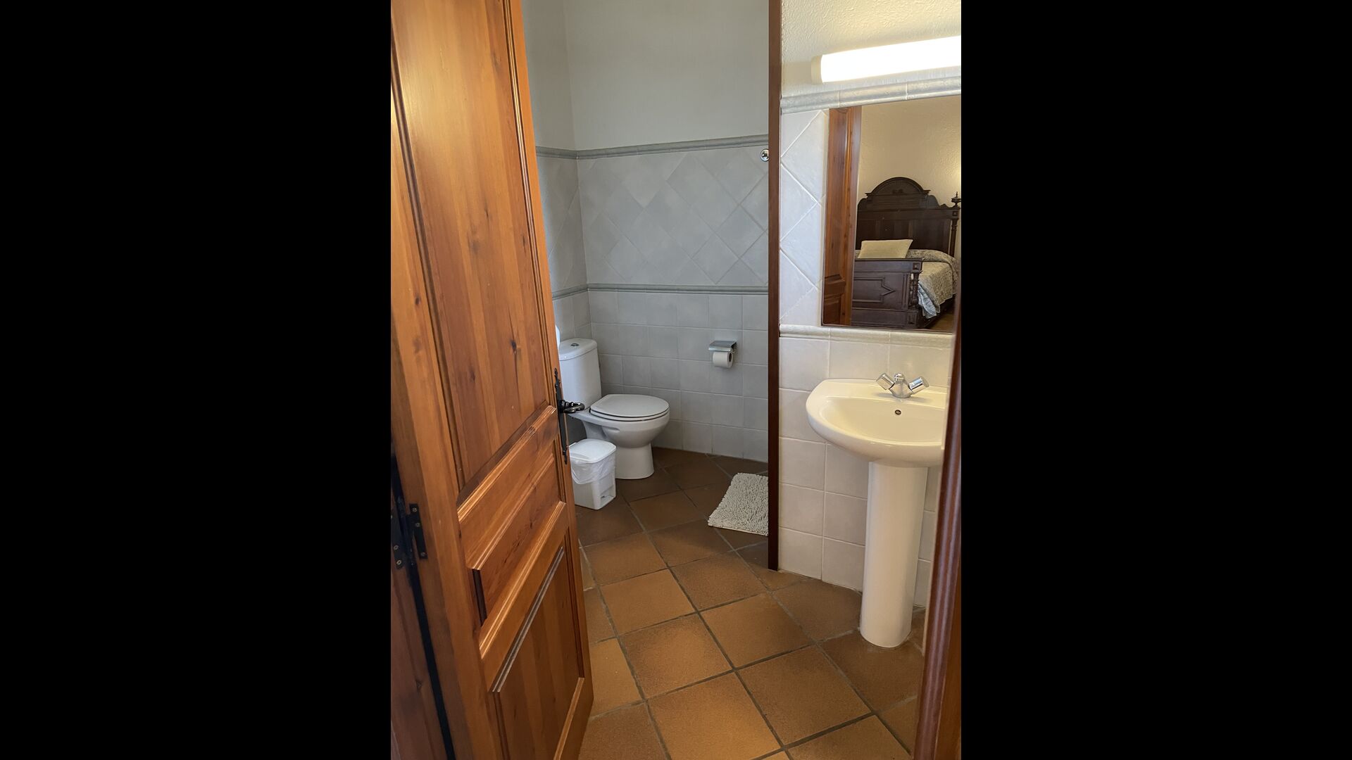 Im ersten Stoc, liegt Sie die "Mirador" Einheit. Diese Wohnung verfügt über eine große Terrasse mit einem herrlichen Blick über die Landschaft. Für eine grosse Gruppe ist diese Terrasse der offensichtliche Ort sich zu versammeln. Auch der Aufenthaltsraum ist groß und mit hoher Decke. Es gibt einen Esstisch, eine Sitzgruppe mit TV und Zugang zur separaten Küche mit einem weiteren Essbereich und Geschirrspüler, Backofen, Kochplatten, Mikrowelle u.s.w.. Hier ist Zugang zu 3 Schlafzimmern, ein Doppelzimmer, ein Zweibettzimmer und ein Einzelzimmer . Es gibt ein Bad mit Dusche.