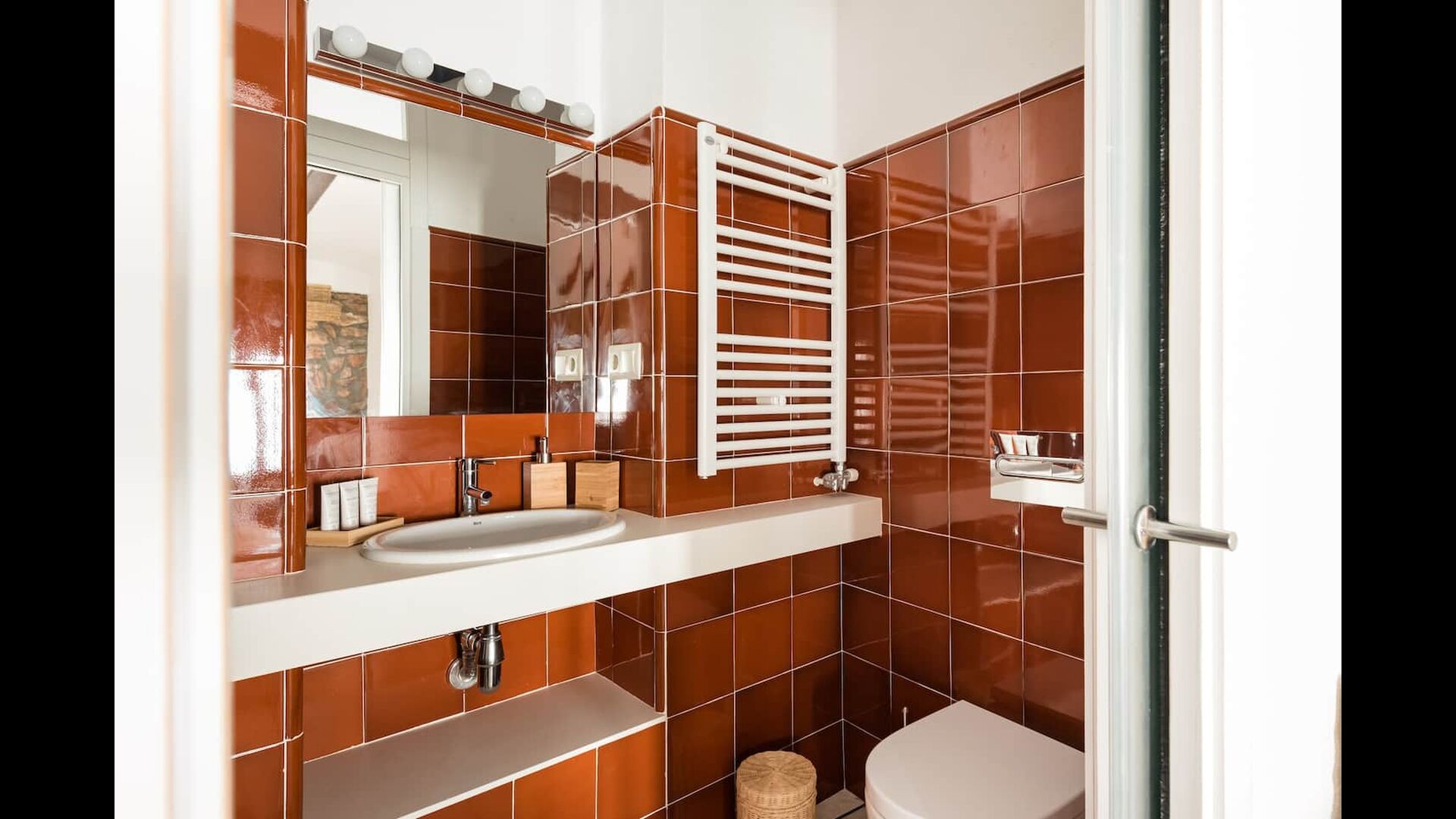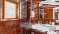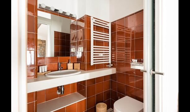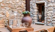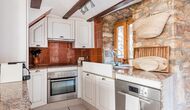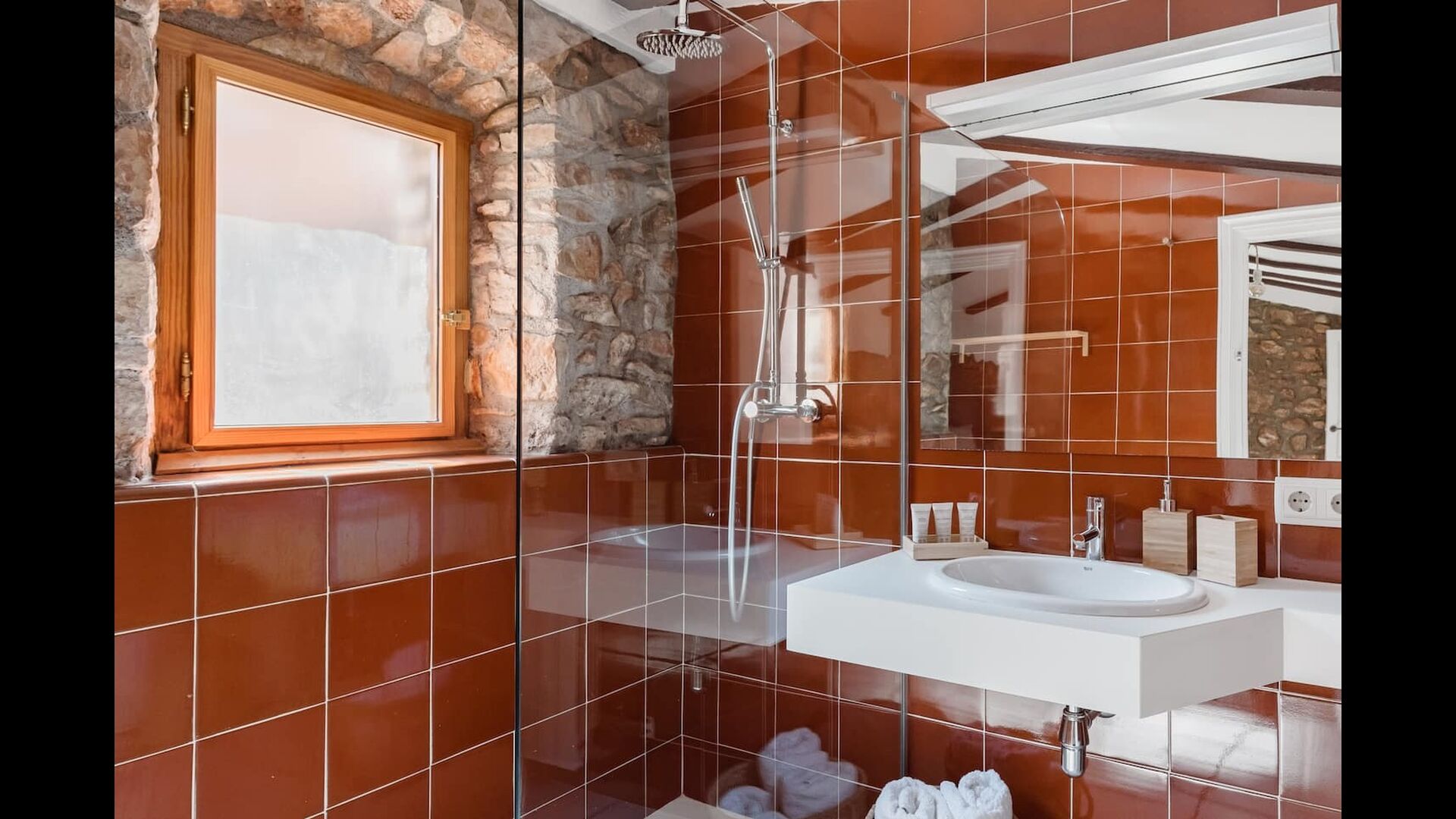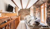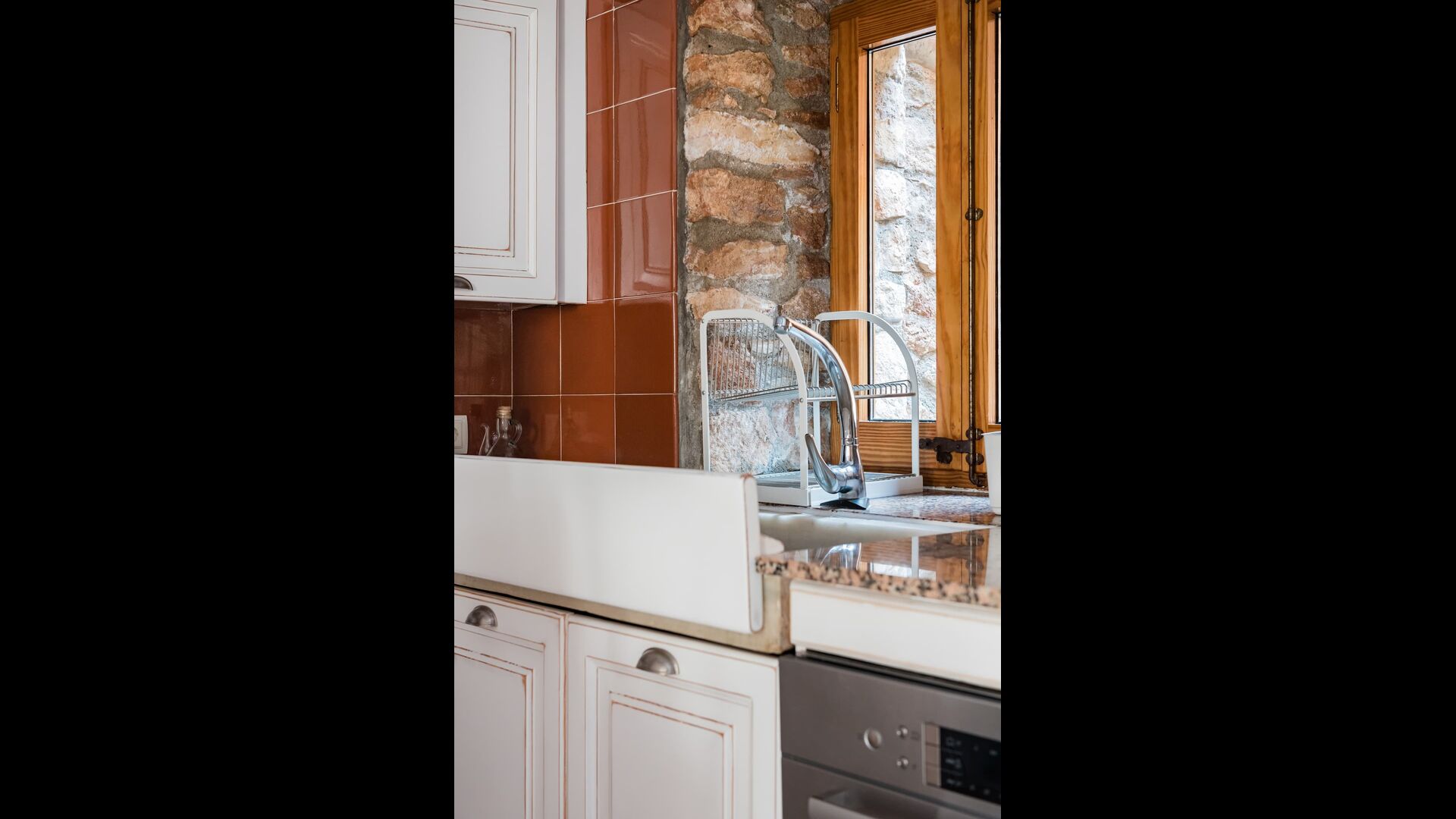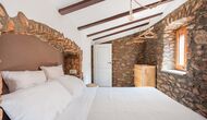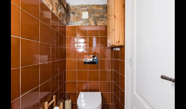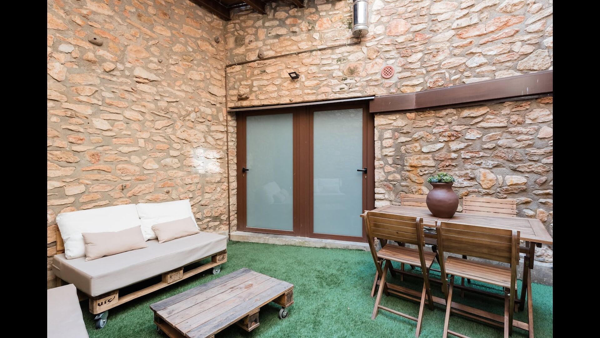 Die Wände der Wohnung sind komplett aus Stein gebaut. Im Erdgeschoss befindet sich das Wohnzimmer mit offener Küche. Vom Erdgeschoss führen Türen auf die Terrasse der Wohnung. Dort finden Sie auch eine kleine Toilette und ein Zwischengeschoss, das als TV-Raum umgebaut wurde. Oben, im Obergeschoss, gibt es zwei Doppelzimmer; eines mit einem Doppelbett und das andere mit 1 Etagenbett. Beide Zimmer besitzen ihre eigenen Badezimmer. Weniger als 100 Meter von der Wohnung entfernt befindet sich ein Parkplatz für Ihr Auto.
