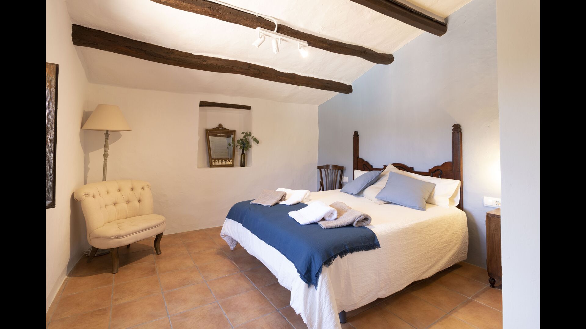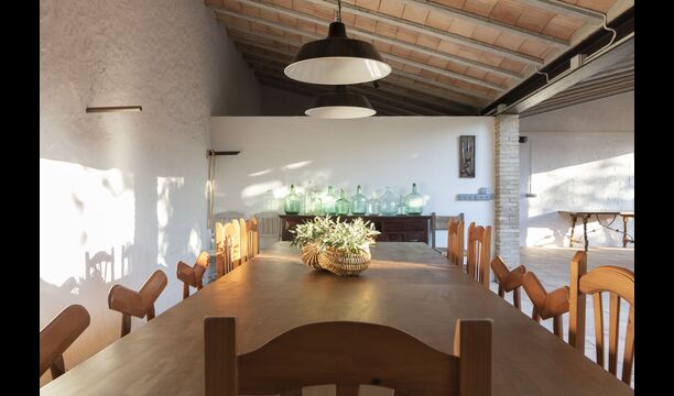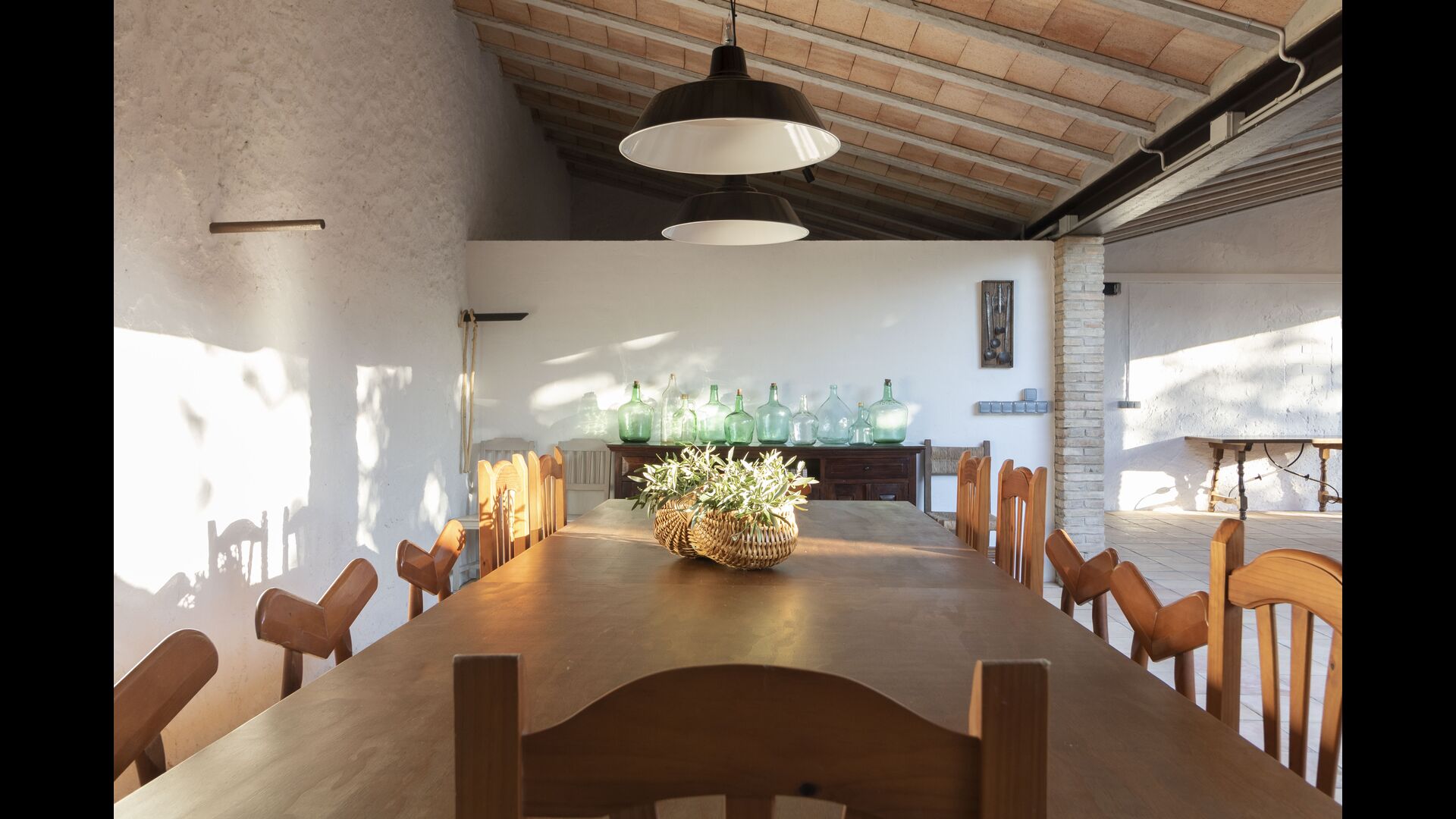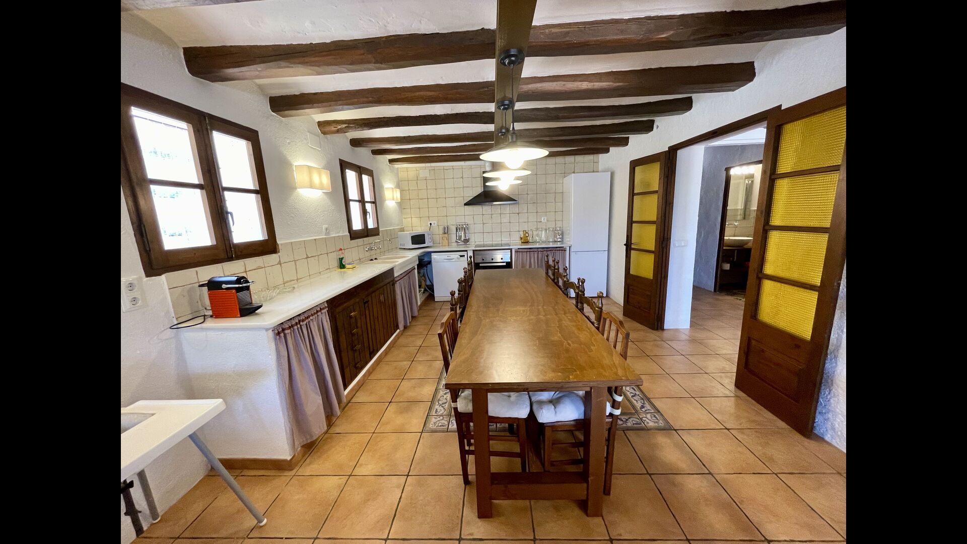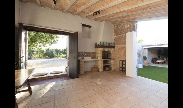 Das Haus verfügt über eine überdachte Terrasse, die sich perfekt zum Frühstück und Abendessen am sanft plätschernden Wasser des Pools eignet, der selbst recht groß ist und über einige Liegestühle verfügt. Egal, ob Sie sich im Pool abkühlen, auf den Liegestühlen entspannen oder ein paar Tapas auf der Außenterrasse genießen, Sie haben die Möglichkeit, auf die wunderschöne katalonische Landschaft zu blicken . Ein Grund dafür, dass Casa Moma so wunderbar isoliert ist, sind 6 Hektar Wald und Johannisbrotbäume sowie 3 Hektar > von Weingärten und Olivenhainen, die das Anwesen umgeben.
