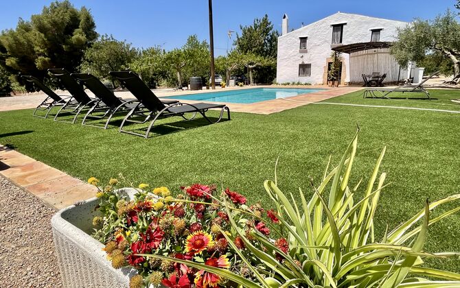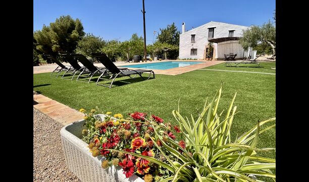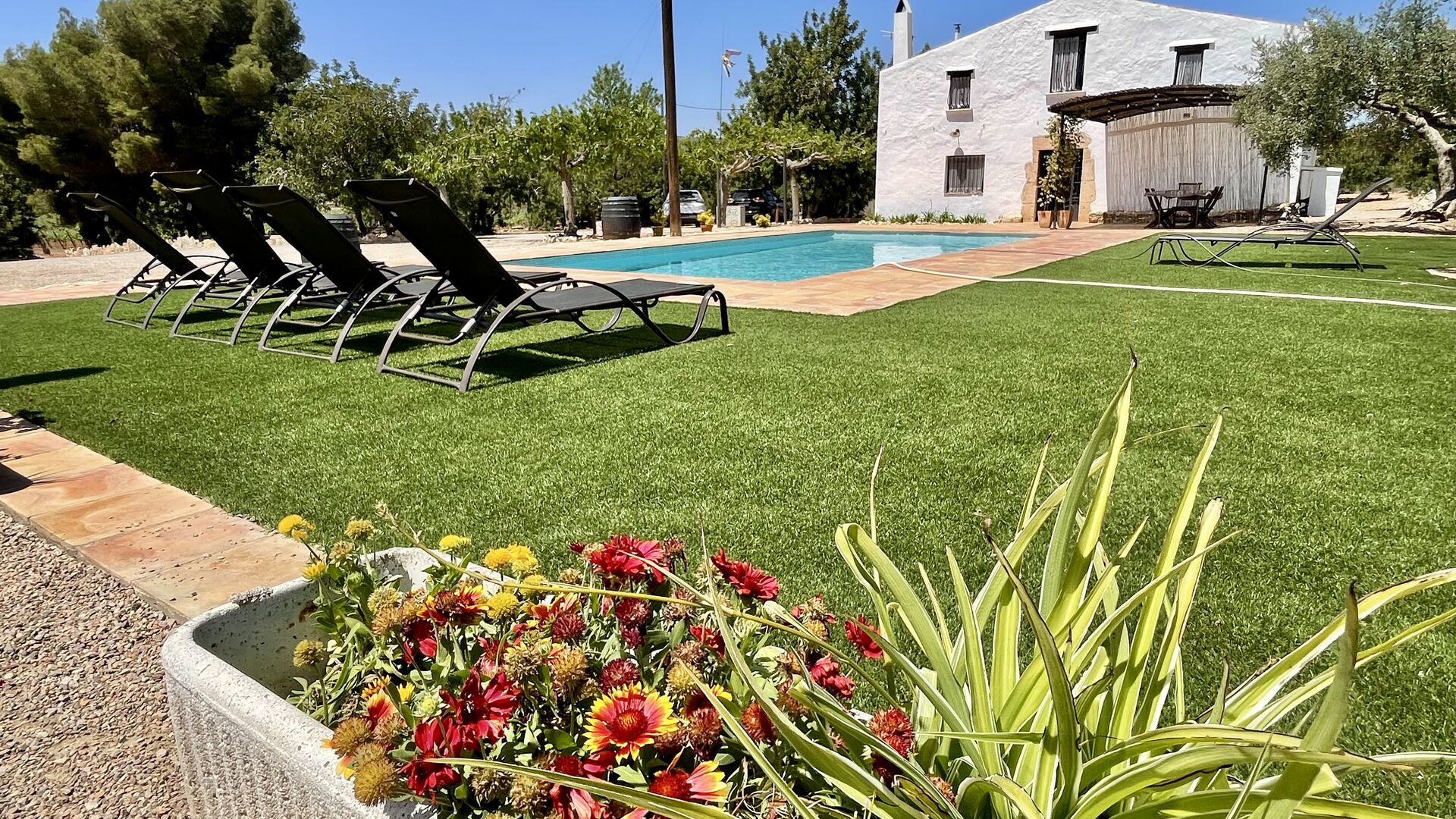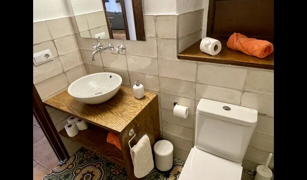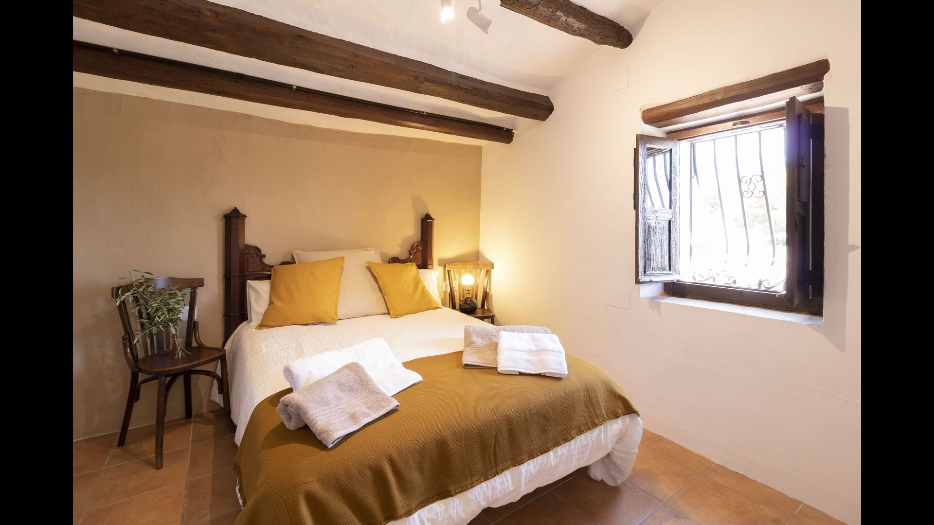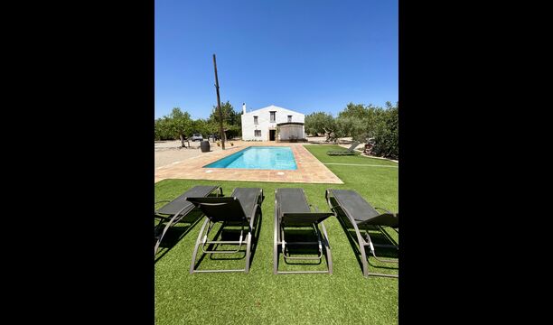 Das Haus verfügt über eine überdachte Terrasse, die sich perfekt zum Frühstück und Abendessen am sanft plätschernden Wasser des Pools eignet, der selbst recht groß ist und über einige Liegestühle verfügt. Egal, ob Sie sich im Pool abkühlen, auf den Liegestühlen entspannen oder ein paar Tapas auf der Außenterrasse genießen, Sie haben die Möglichkeit, auf die wunderschöne katalonische Landschaft zu blicken . Ein Grund dafür, dass Casa Moma so wunderbar isoliert ist, sind 6 Hektar Wald und Johannisbrotbäume sowie 3 Hektar > von Weingärten und Olivenhainen, die das Anwesen umgeben.