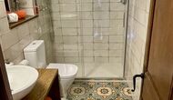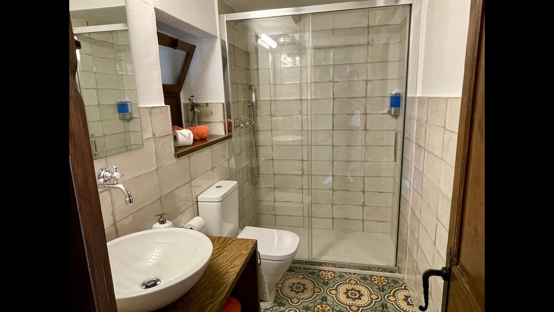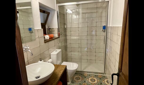Es gibt zwei Etagen – das Erdgeschoss und den ersten Stock. Im Erdgeschoss finden Sie eine Wohnküche, 1 Doppelzimmer und 1 Badezimmer. Im ersten Stock finden Sie einen Flur, 2 Badezimmer (1 der 2 enthält ein Bad gut), 4 Doppelzimmer und 1 Schlafzimmer mit zwei Einzelbetten.