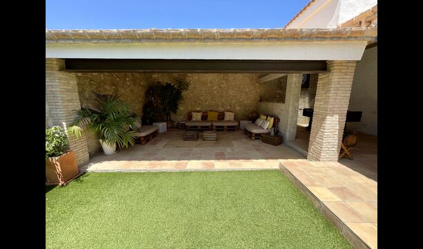 Das Haus verfügt außerdem über einen Innenhof, der von einer Veranda flankiert wird, die mit dem Haus selbst verbunden ist; Auf der Veranda gibt es einen Ruhebereich mit mehreren bequemen Stühlen und gemütlicher Dekoration sowie einen Essraum/Tisch und einen Tischfußballplatz. Genießen Sie die Sonne im Innenhof oder entspannen Sie im Schatten der Veranda – Essen Sie mit Freunden oder der Familie am Esstisch!