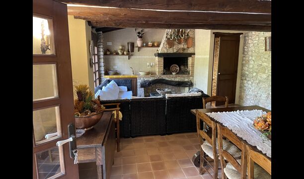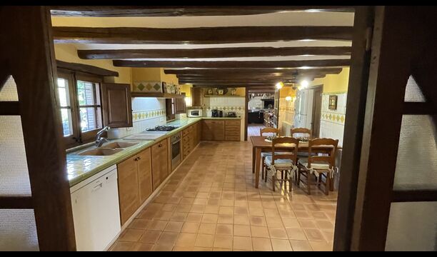 Das Erdgeschoss hat ein großes Wohnzimmer mit Fernseher, dann die gut ausgestattete Küche und dann ein sehr großes Esszimmer mit Terrasse direkt vor dem Haus, sodass Sie nach Belieben drinnen oder draußen essen können . Es gibt auch eine Toilette.O