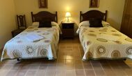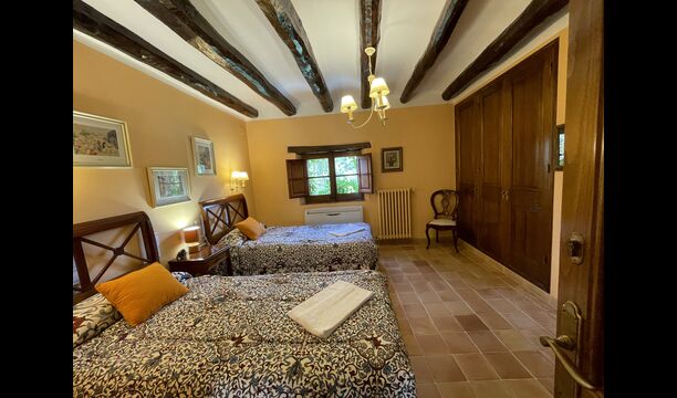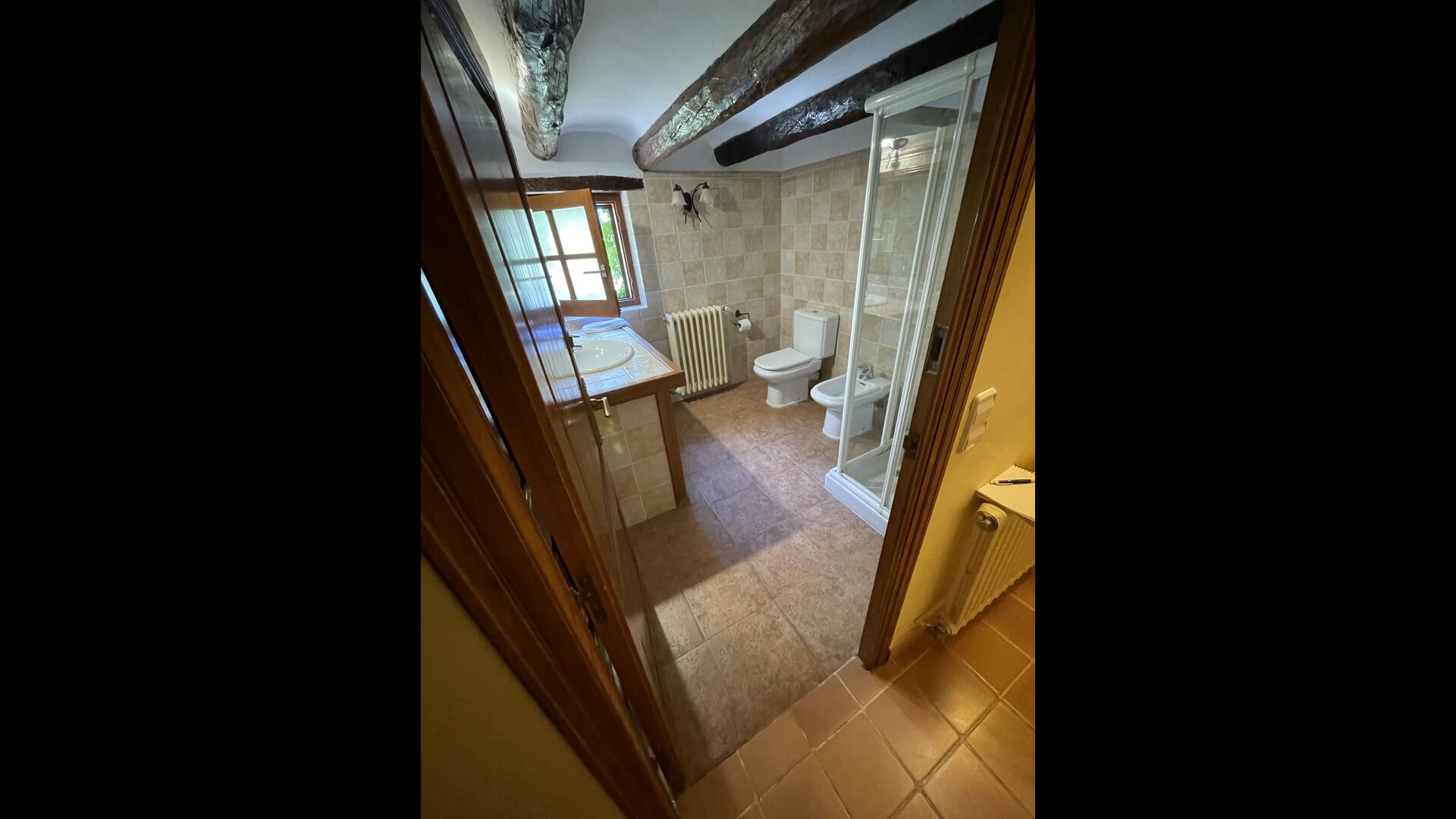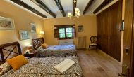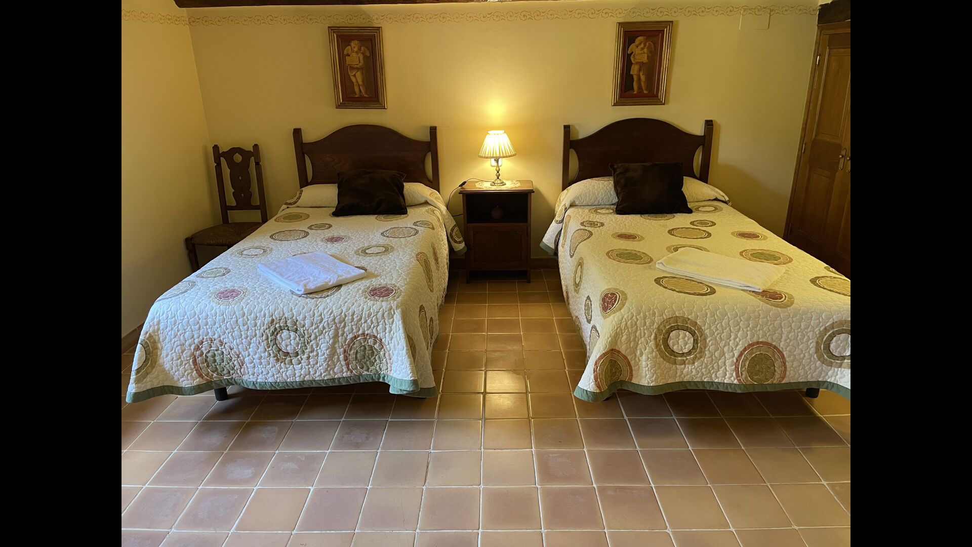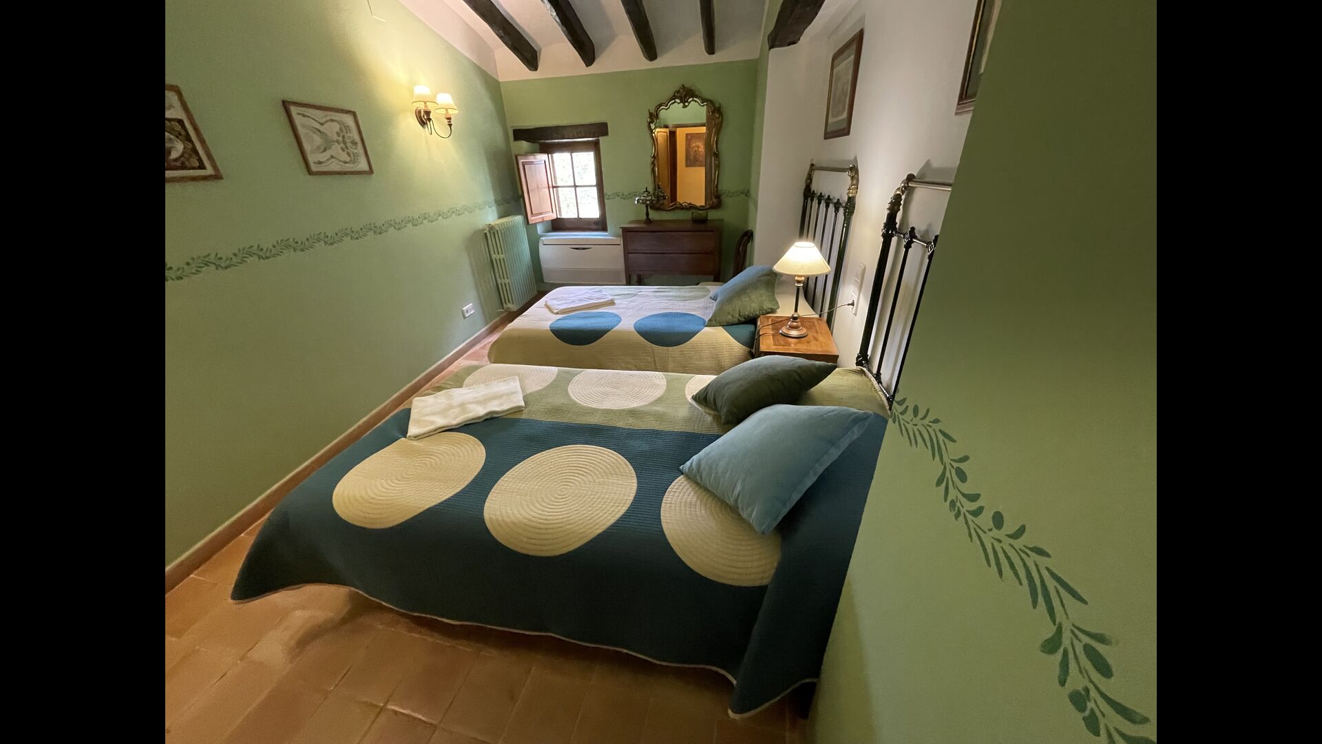Im ersten Stock finden Sie ein Doppelzimmer mit zwei Einzelbetten (und Platz für ein Zustellbett) und ein weiteres Schlafzimmer mit einem Doppelbett. Es gibt ein gemeinsames Badezimmer mit Dusche zwischen den beiden Zimmern.