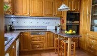 Dort finden Sie auch die moderne Küche (ausgestattet mit Vitro, Backofen, Kühlschrank, Mikrowelle, Waschmaschine und Geschirrspüler, Toaster und allen notwendigen Küchenutensilien) und das Esszimmer mit Kamin, Sofas und ausziehbarem Tisch.