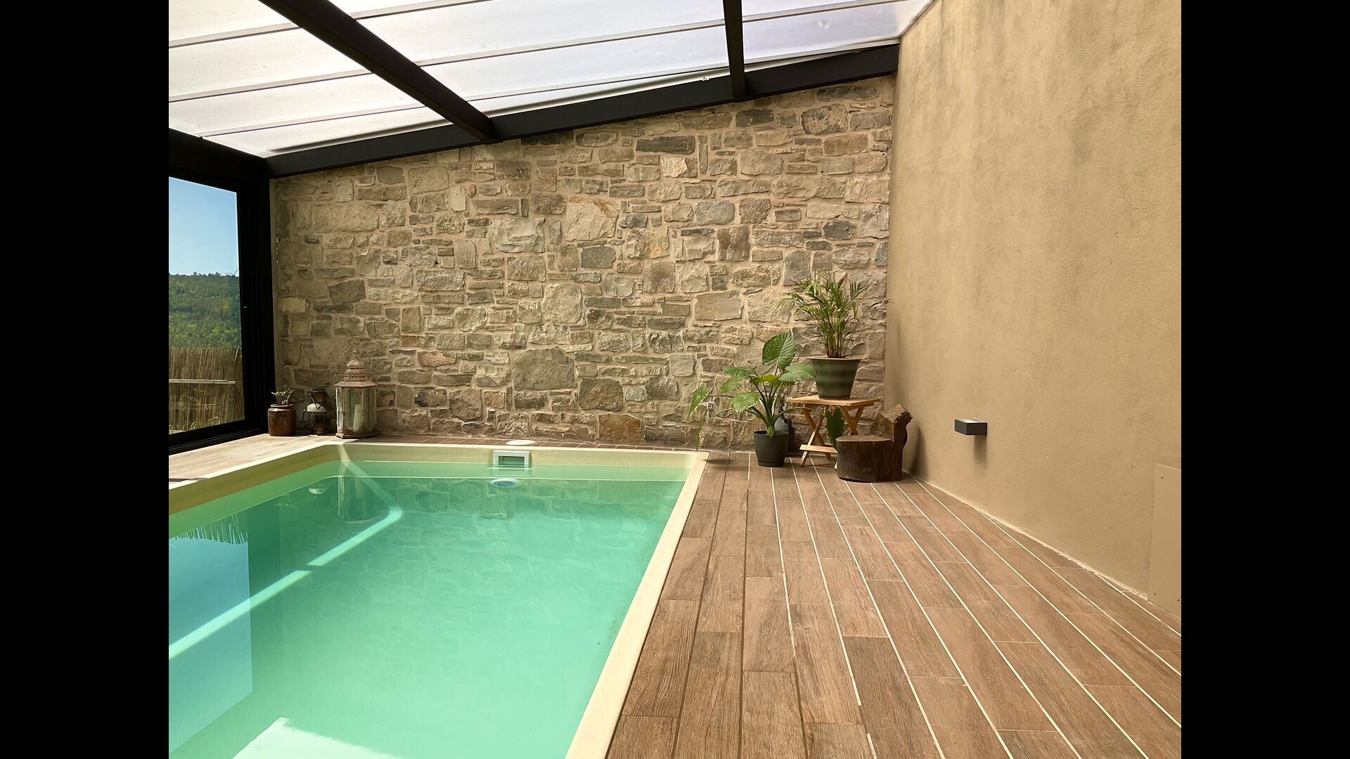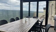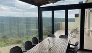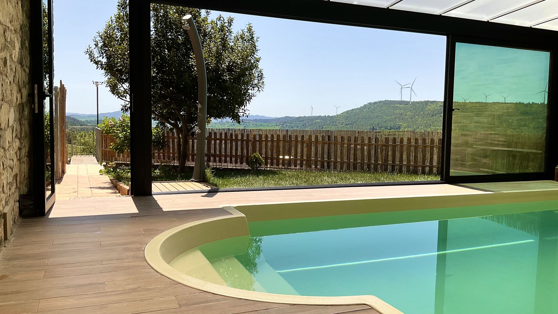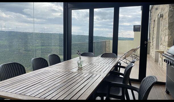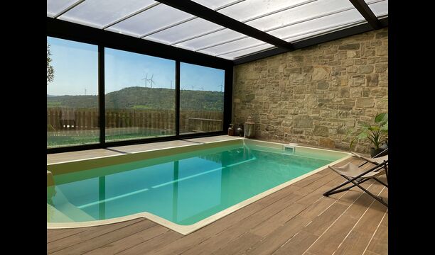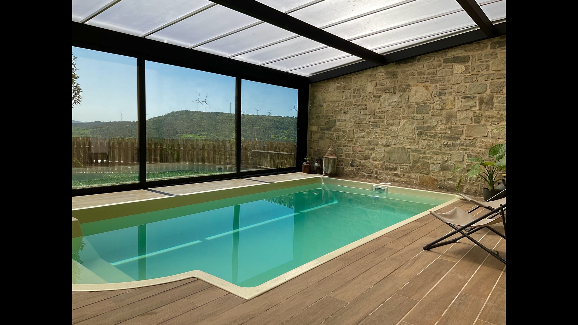 Für die Nebensaison ist ein Teil mit Fenstern überdacht, sodass Sie die Umgebung auch von innen genießen können. Hier gibt es auch einen ausziehbaren Tisch, so dass Sie hier auch speisen können, wenn Sie möchten.