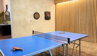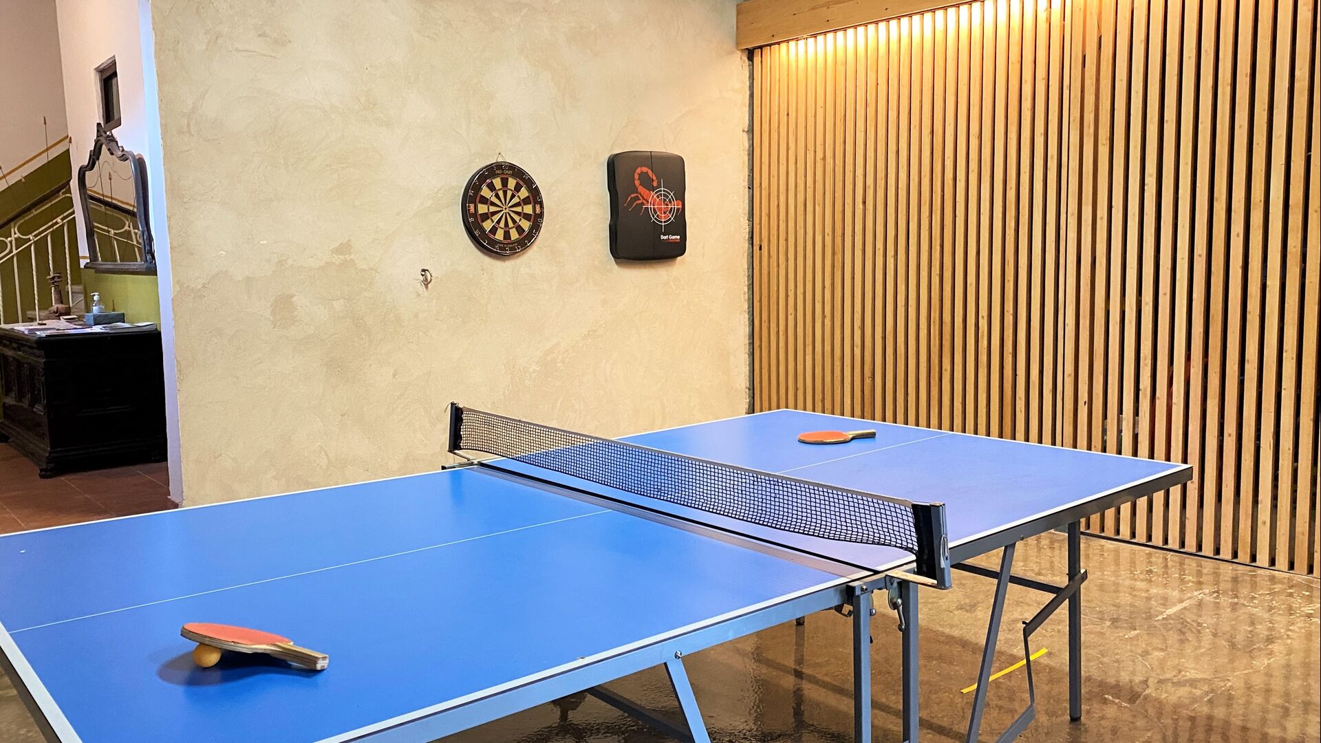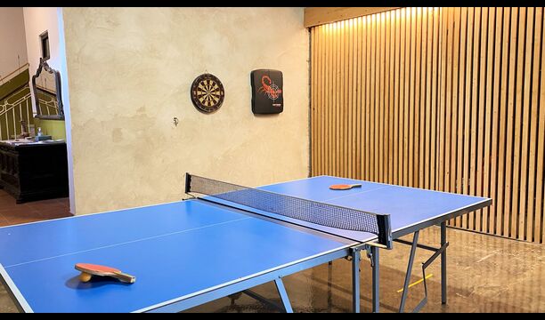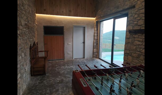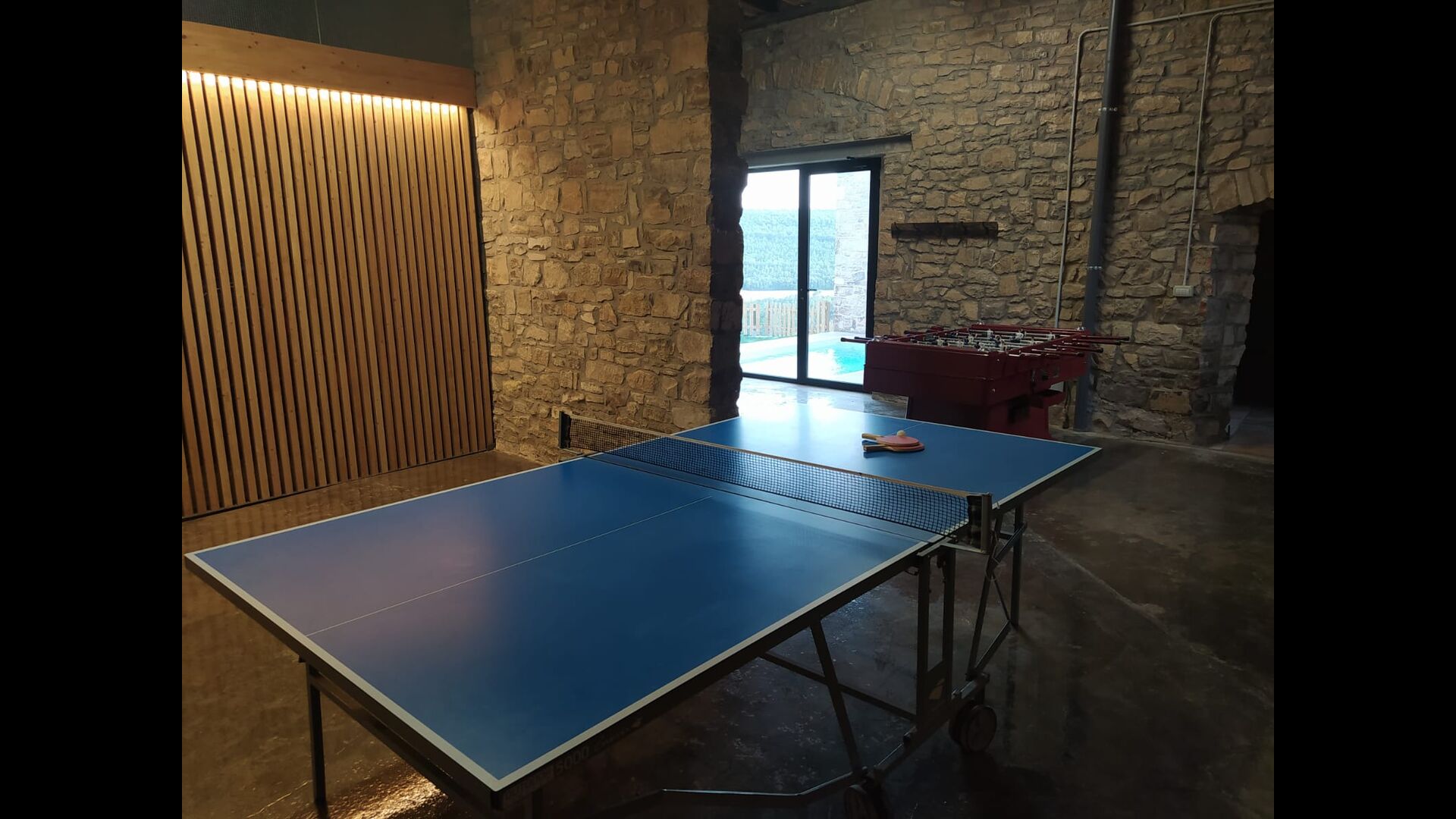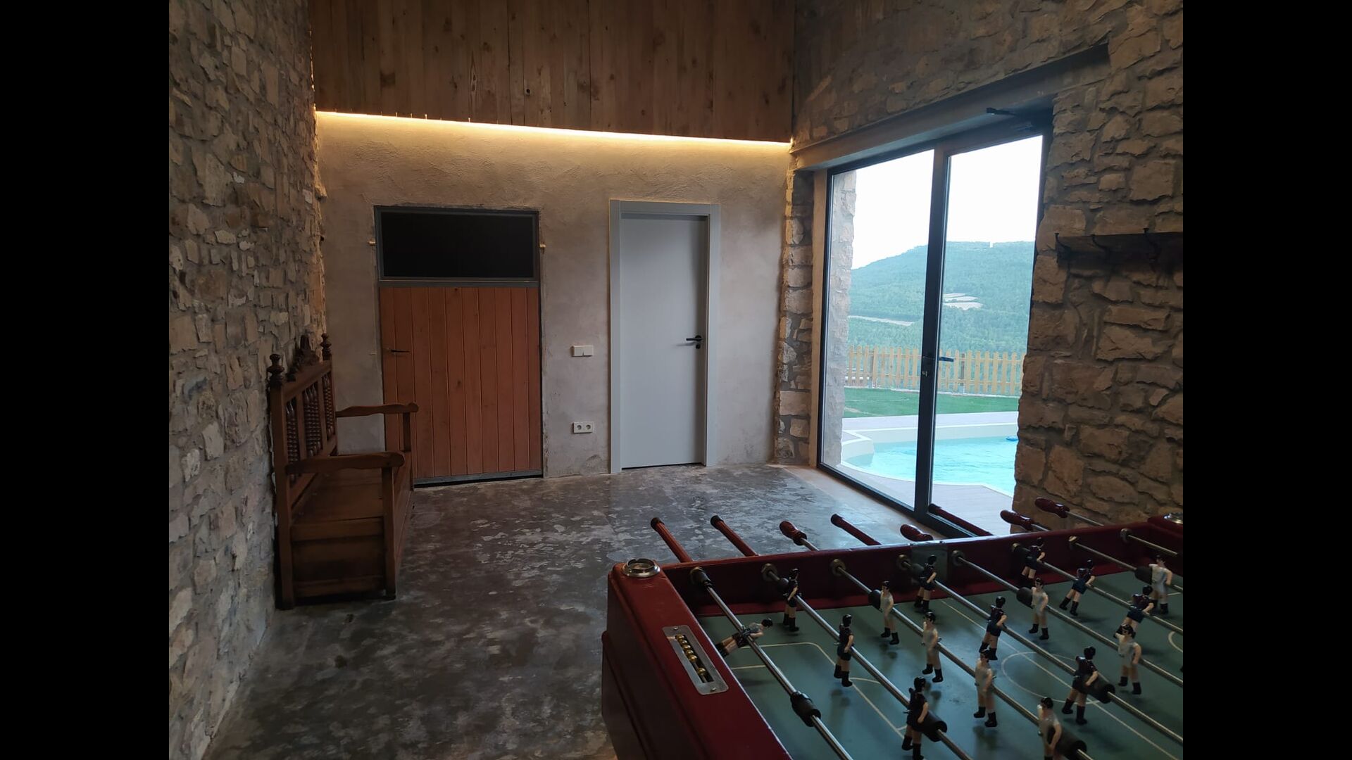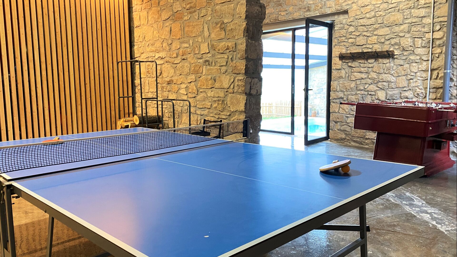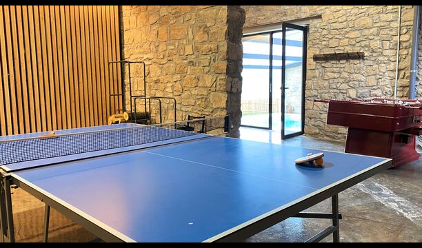 In der unteren Etage, auf Straßenniveau, befindet sich ein Spielzimmer mit Tischtennis, Tischfußball und Darts. Hinter dem Haus ist ein kleiner Garten mit privatem Swimmingpool angelegt, ebenfalls mit der gleichen Aussicht und direktem Zugang zu den Weinbergen, falls Sie Lust auf einen kleinen Spaziergang haben. Es gibt auch eine kleine Terrasse mit Holzkohlegrill.