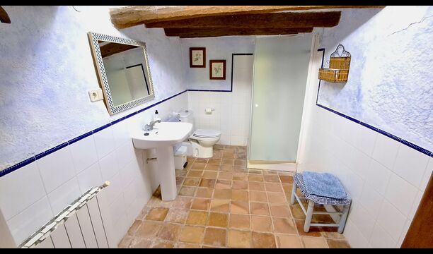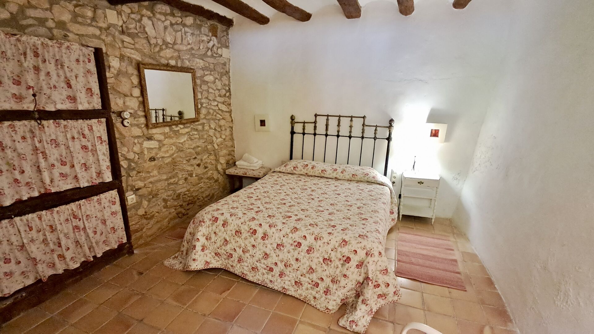 Auf der ersten Etage finden Sie die Küche und das offene Esszimmer mit Zugang zu einer großzügigen Terrasse mit Aussicht und einem Grill. Hier können alle das Essen in den warmen Katalanischen Abenden genießen. Zusätzlich gibt es 3 große und sehr geräumige Schlafzimmer. Sie sind alle verschieden eingerichtet, aber alle mit einem hohen Standard. Eines mit Doppelbett, eines mit zwei Einzelbetten und das dritte hat zwei Doppelbetten, damit es möglich ist, bei Bedarf 4 Personen unterzubringen. Weiter gibt es auf dieser Etage ein voll ausgestattetes Bad. Die Küche ist wie der Rest des Hauses von hoher Qualität, und es hat zur gleichen Zeit rustikal und authentisch eingerichtet