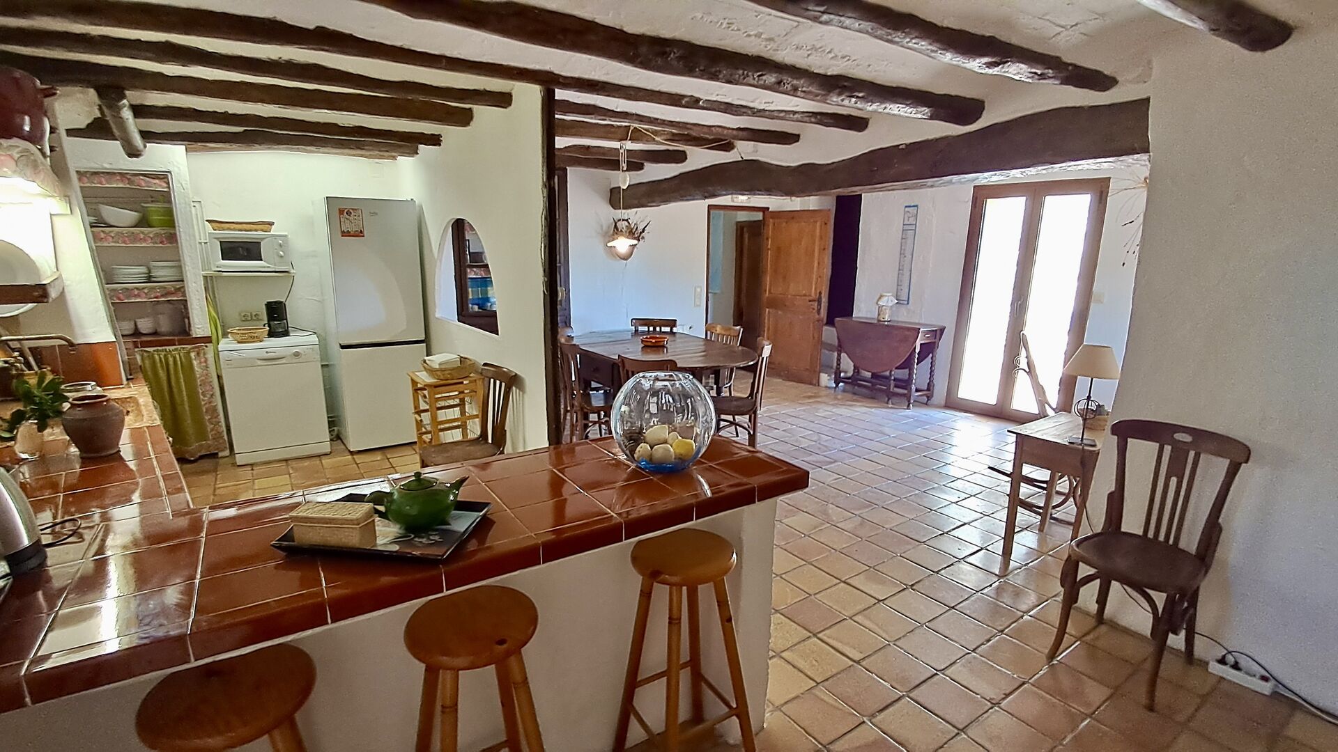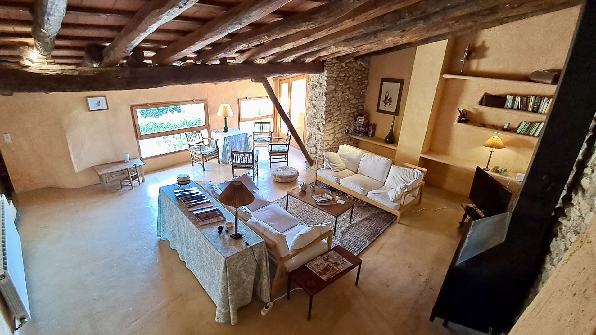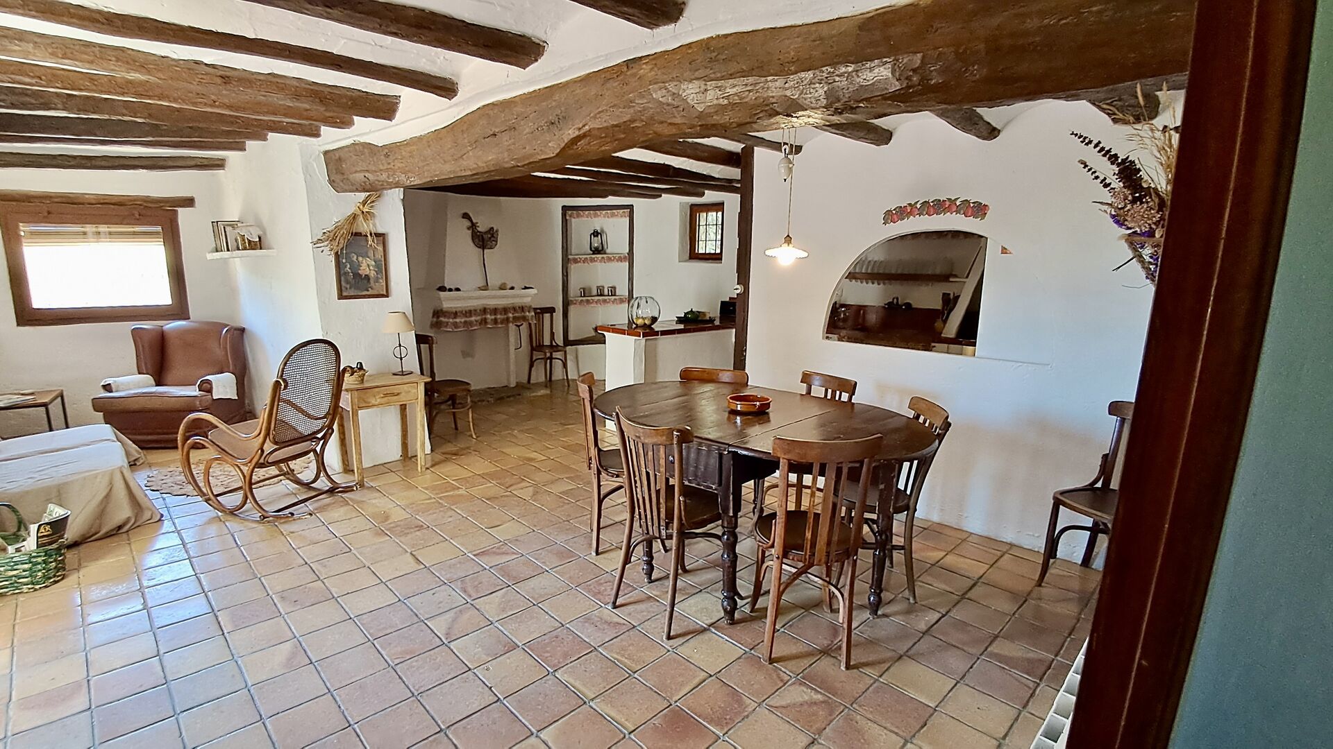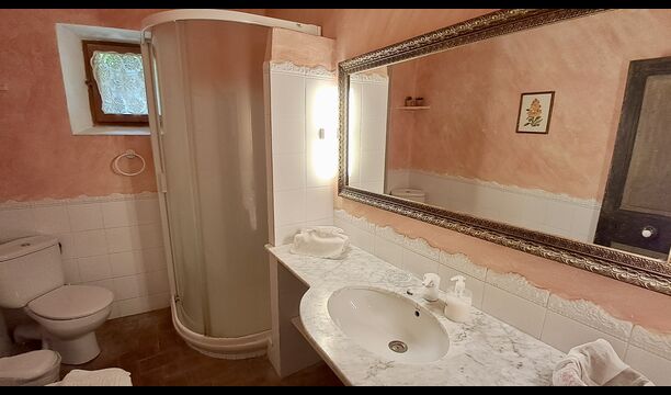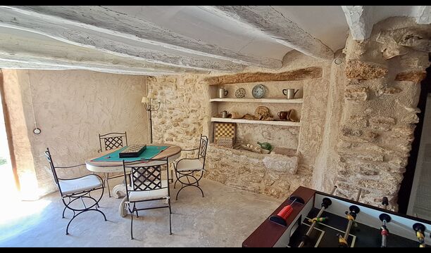 Das 300 m2 Haus ist in vielerlei Hinsichten eine angenehme Urlaubstelle. Die Möbel sind von hoher Qualität und die Decken sind sehr hoch. Obwohl das Haus restauriert ist , scheint die Geschichte immer noch durch, was Sie während Ihres Aufenthalts spüren werden . Es gibt viele kleine Details und Konstruktionen wie z.B. Deckenbalken. Auf der andere Seite der Straße ( keine Autos ) vor dem Vordereingang , finden Sie den großzügigen geteilten Swimmingpool-Bereich mit einem großen Swimmingpool von 10 x 4,5 m , in schattigen Umgebungen mit Sonnenliegen.