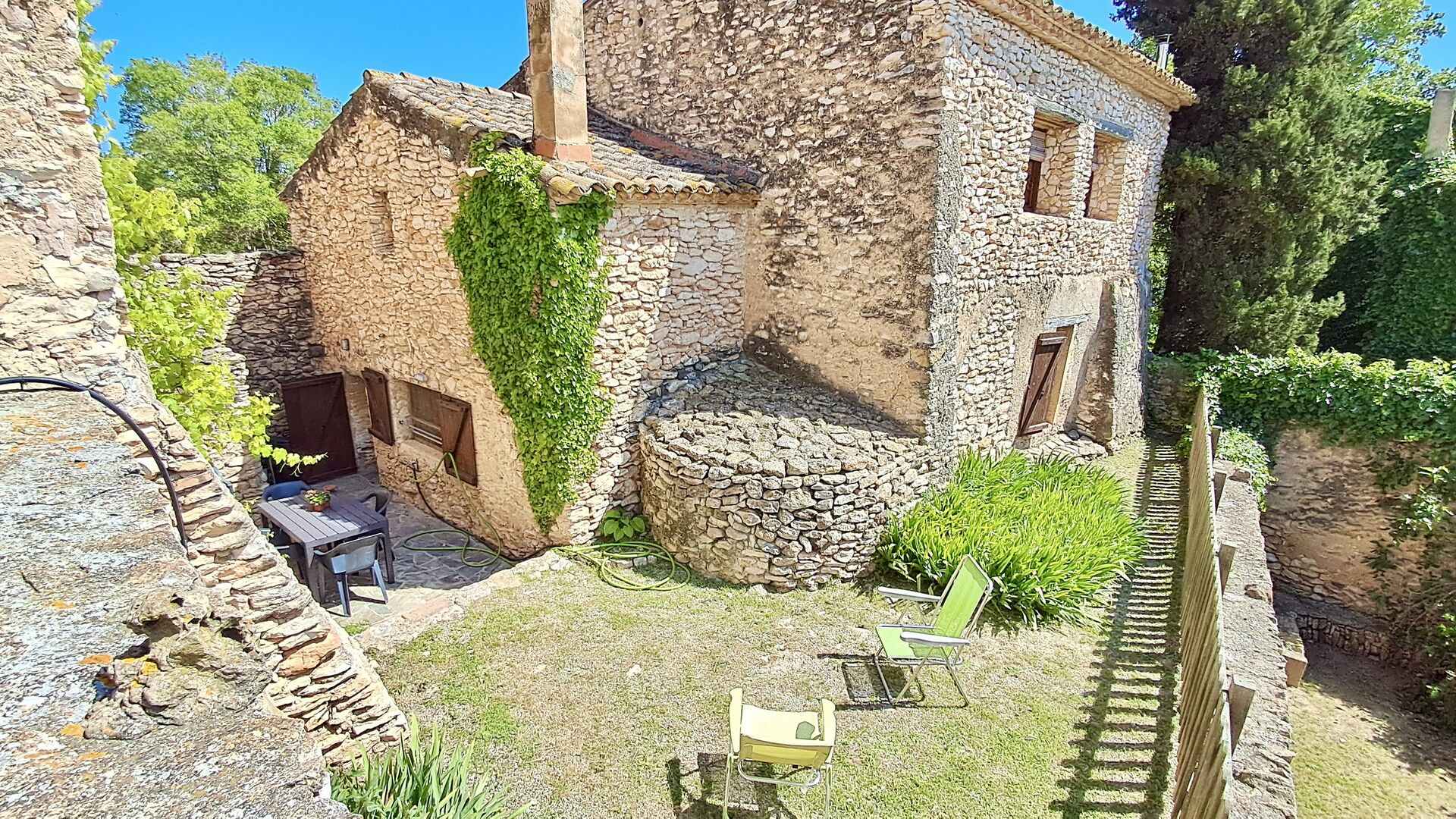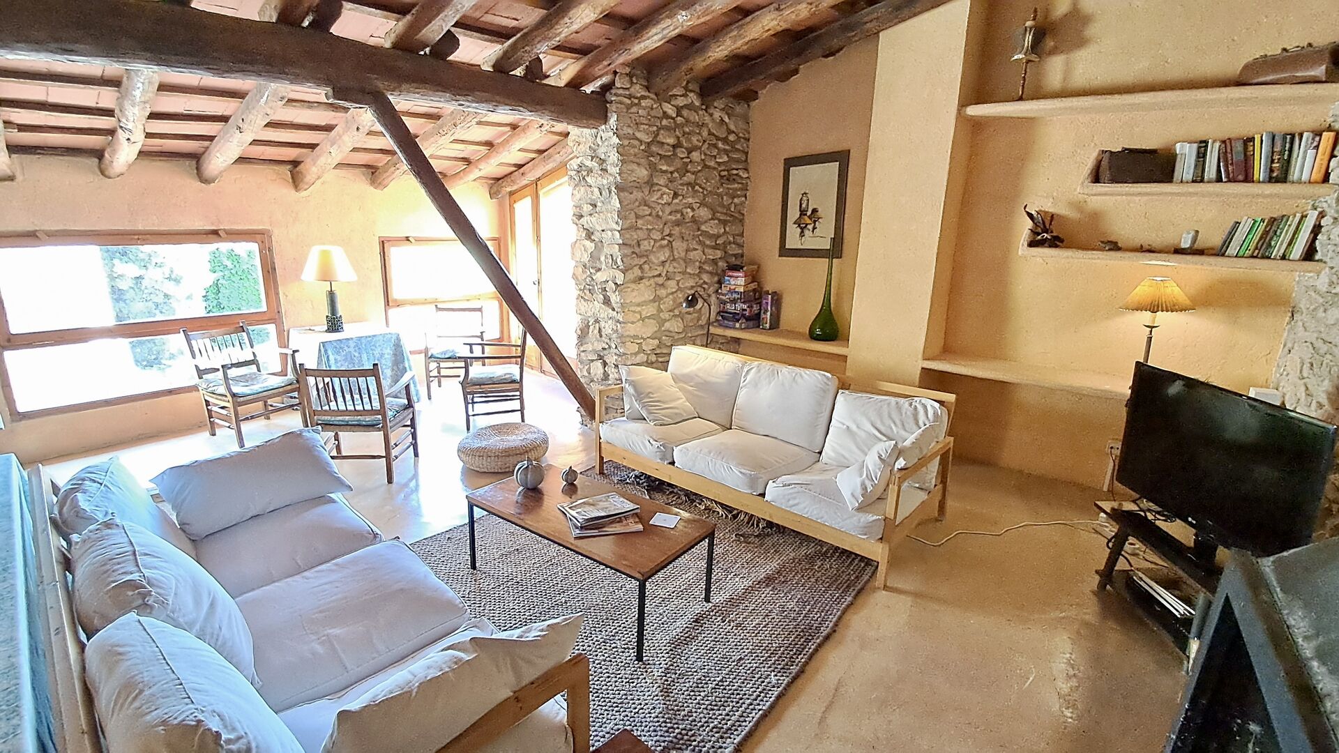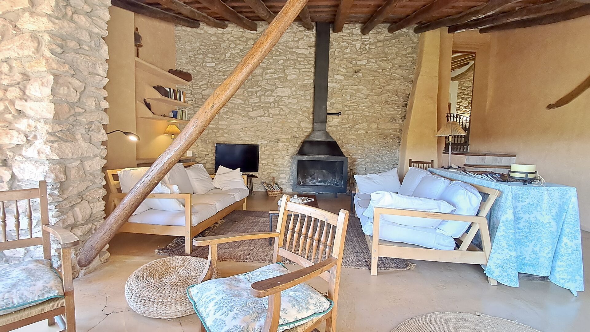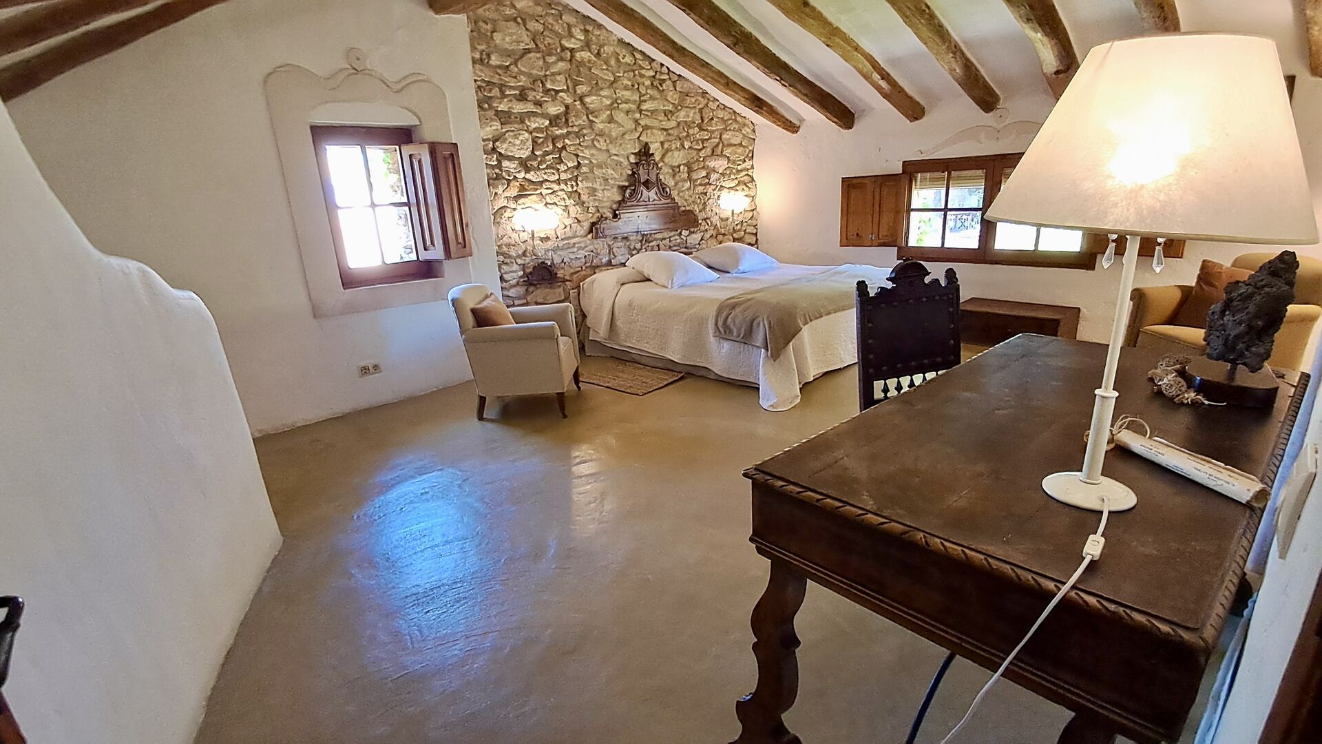 Das 300 m2 Haus ist in vielerlei Hinsichten eine angenehme Urlaubstelle. Die Möbel sind von hoher Qualität und die Decken sind sehr hoch. Obwohl das Haus restauriert ist , scheint die Geschichte immer noch durch, was Sie während Ihres Aufenthalts spüren werden . Es gibt viele kleine Details und Konstruktionen wie z.B. Deckenbalken. Auf der andere Seite der Straße ( keine Autos ) vor dem Vordereingang , finden Sie den großzügigen geteilten Swimmingpool-Bereich mit einem großen Swimmingpool von 10 x 4,5 m , in schattigen Umgebungen mit Sonnenliegen.