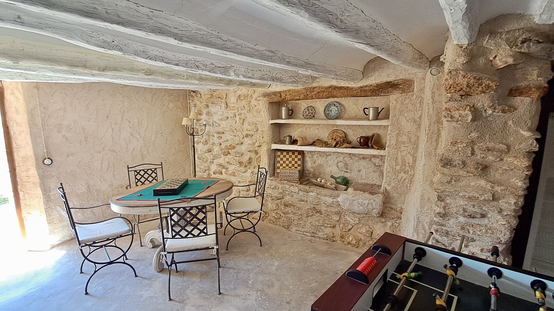 Auf der Rückseite des Hauses befindet sich ein Platz im Freien, wo Sie den Blick aus den Stühlen genießen können. Auch mit Platz zum Spielen. Im Inneren des Hauses, im Erdgeschoß, gibt es ein Spielzimmer mit Tischfußball . Weiter gibt es im Erdgeschoss ein Schlafzimmer und ein Badezimmer