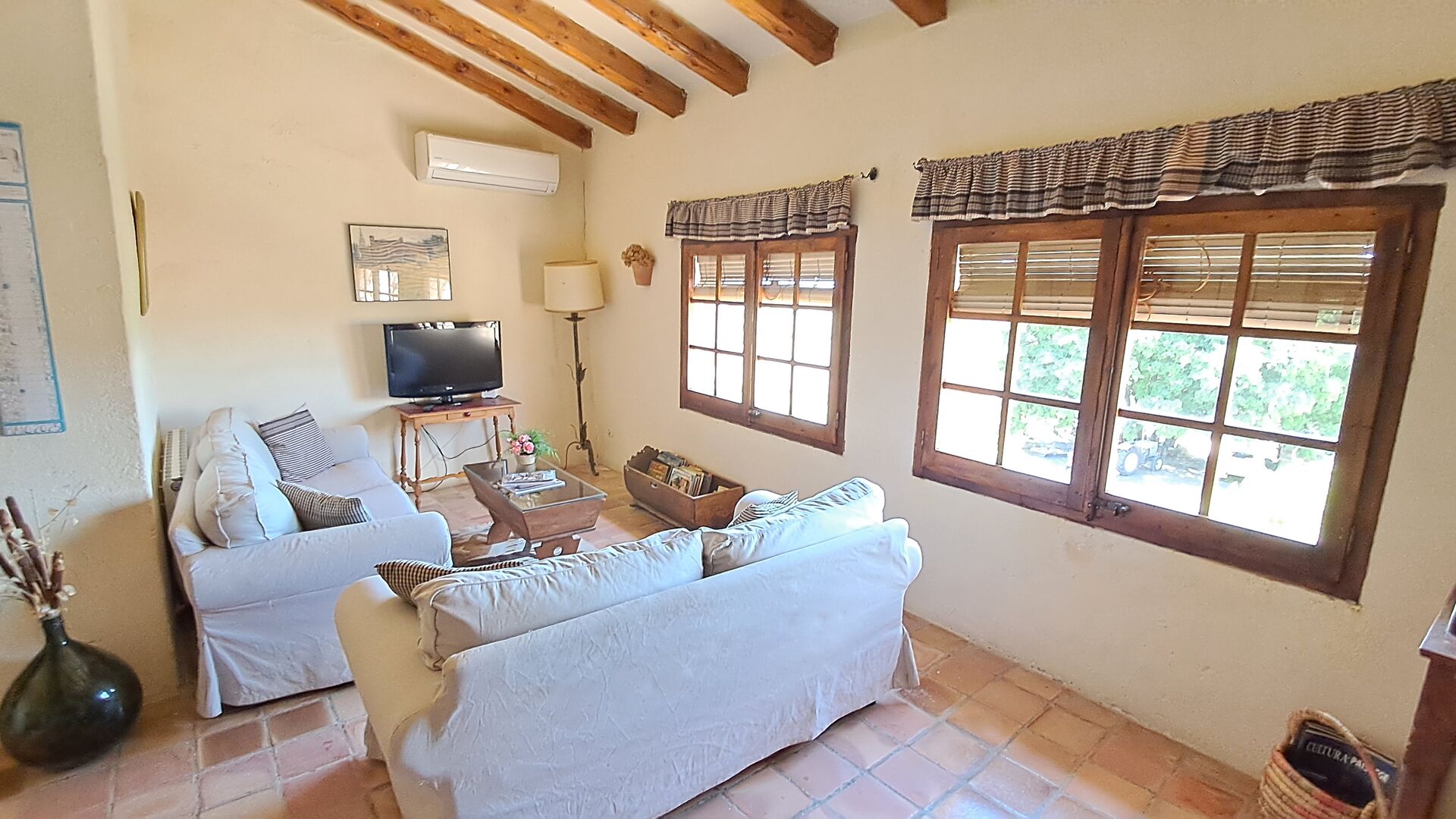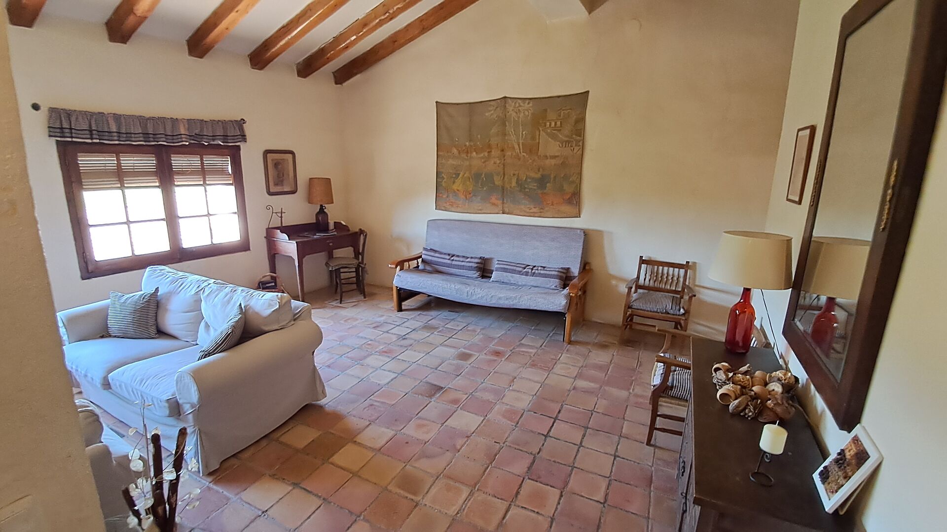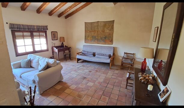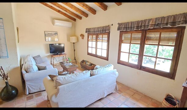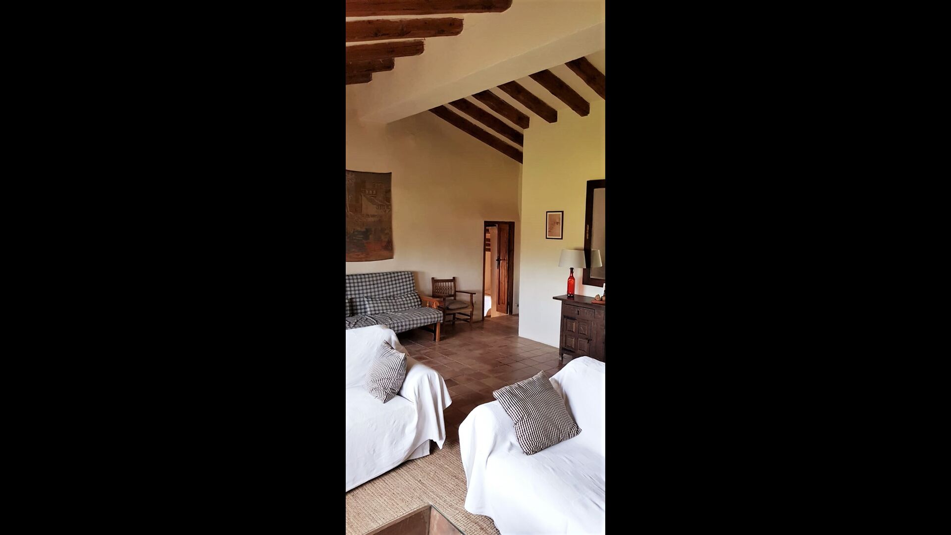 Mas de la Uvas hat ein großes und geräumiges Wohnzimmer mit Sitzecke und Tisch. Ein Stockwerk höher gibt es auch eine kleine Sitzecke mit einem Sofa und einem Sessel, von dem Sie fernsehen können.