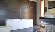 Es gibt ein " Elternschlafzimmer " mit einem 180 cm großen Doppelbett und Bad mit „Hydro-Massage Dusche“ und eine Badewanne mit " Farbtherapie " - hier können Sie die Farbe der Badewanne ändern. Von den zwei weiteren Schlafzimmern, ist eines mit Doppelbett und das andere mit zwei Einzelbetten. Sie teilen sich ein sehr modernes und äußerst komfortables Badezimmer mit vielen Details. Das Haus hat auch WLAN.