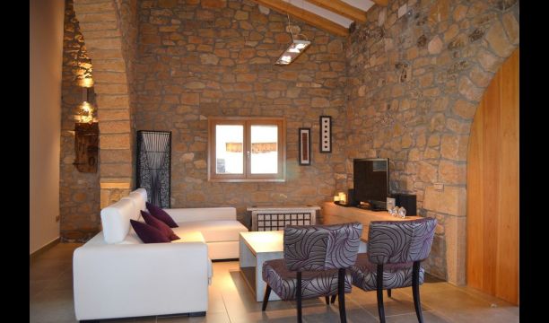 Mit hohen Decken, klassischen Steinwänden und heller Beleuchtung, ist dieser Raum ein perfekter Treffpunkt, wo die ganze Urlaubsgruppe zur gleichen Zeit zusammen sein können.