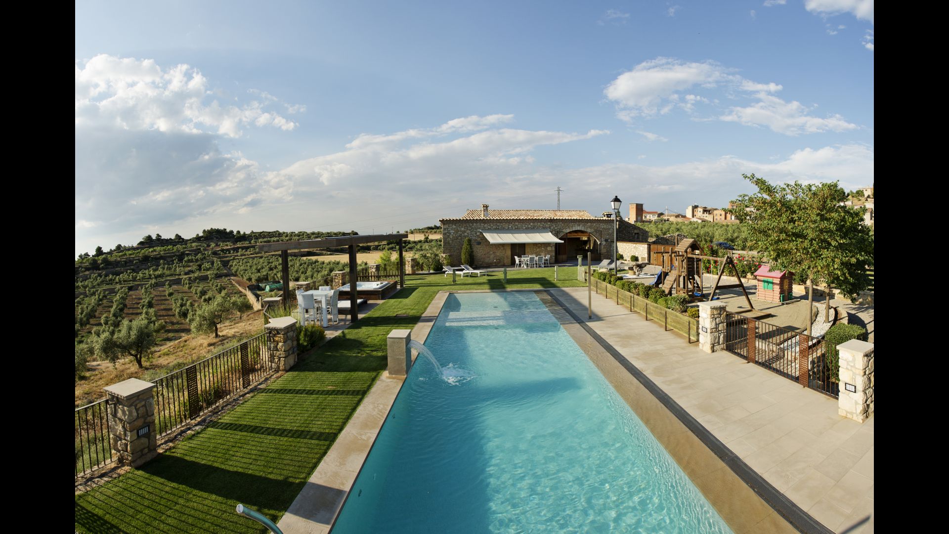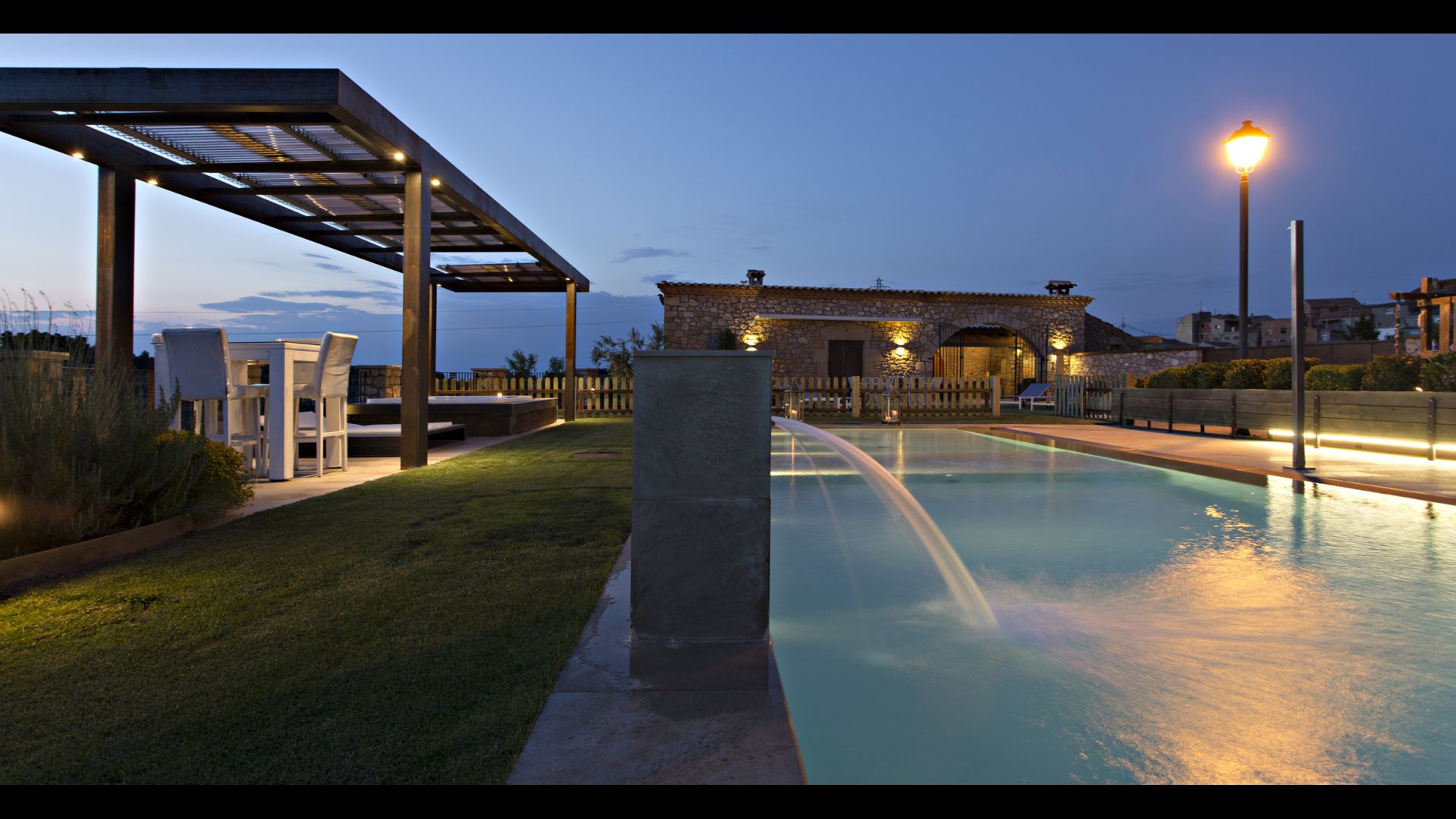 Der Garten ist ganz fantastisch. Die 16m lange Schwimmbecken ist zentral gelegen, und mit seiner einzigartigen Konstruktion, wird es die ganze Familie erfüllen: Die erste 4m ist eine flache Planschbecken für die Kleinen in der Urlaubsgruppe. Das andere Ende ist einen 8 m lange und tieferen Pool für die Erwachsenen. In diesem Ende gibt es eine Art von Wasserfall. Außerdem ist der Pool eingezäunt, was eine große Erleichterung ist, damit Sie nicht die ganze Zeit ein Auge auf den jüngsten Kindern zu halten brauchen. Der Pool ist eine großartiger Stelle für Entspannung oder Abkühlen in den warmen Katalanischen Tagen, und wenn das nicht reicht, gibt es auch ein Spa / Whirlpool neben dem Pool. Von hier aus gibt es einen spektakulären Blick auf die umliegenden Wein -, Oliven - und Mandelfelder.