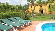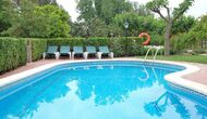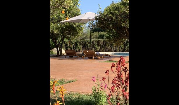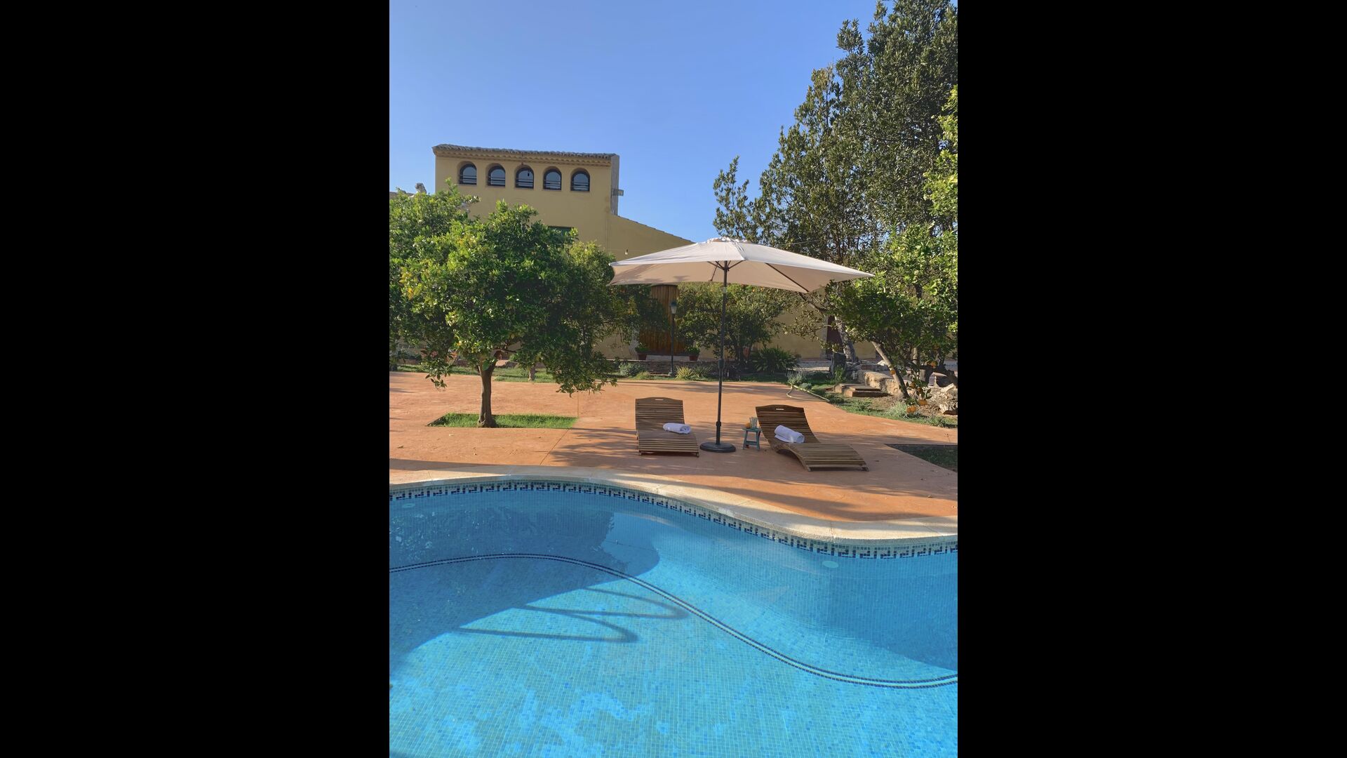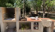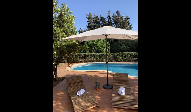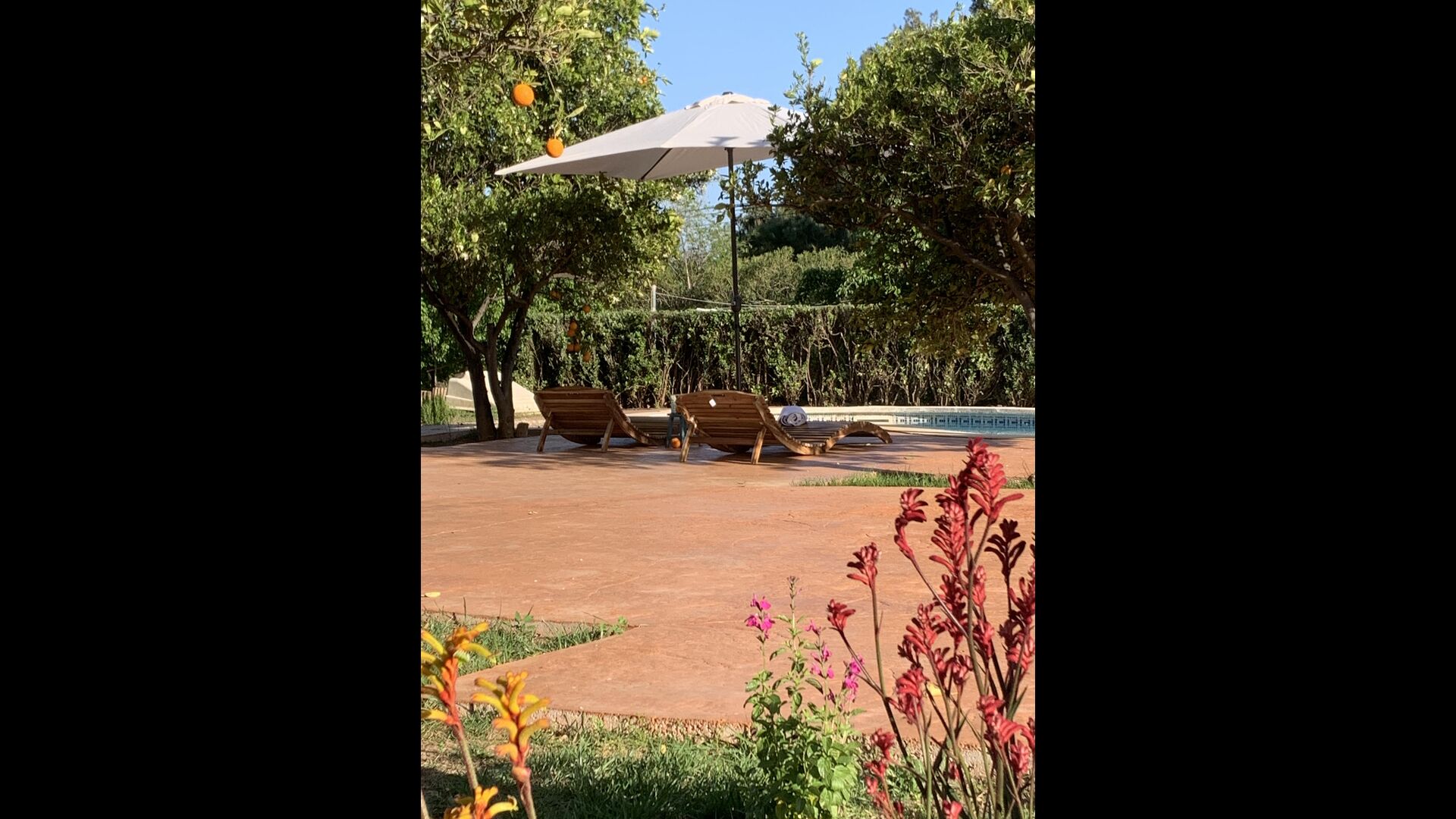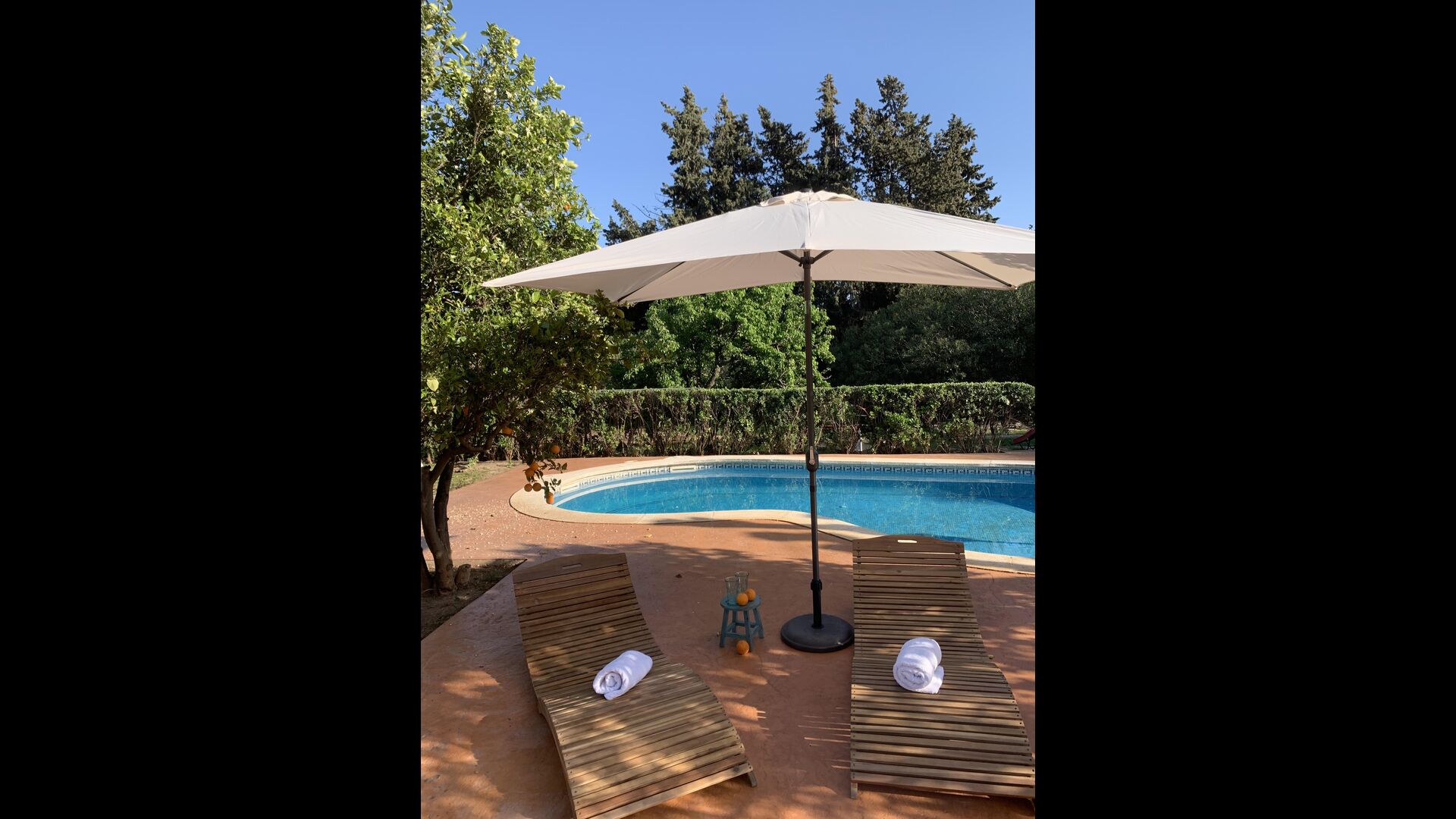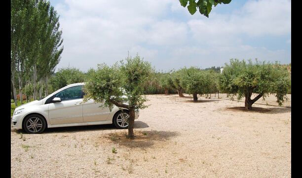Wenn Sie in der Villa ankommen, finden Sie einen großen Parkplatz, den mit schönen Olivenbäumen gepflanzt ist. Hinter dem Parkplatz gibt es einen 15x30 Meter Fußballplatz, schön von einem Olivenhain umgeben. Der Garten ist in mehrere schöne "Räume" unterteilt. Einer hat einen kleinen Spielplatz mit Sandkasten und Rutsche, den von Feigen, Birnen-und Kirschbäumen umgeben ist. Ein weiterer Bereich ist das Pool-Bereich vor dem Haus. Der Pool ist nierenförmig und ist von einer großen 250m2 Rasenfläche umgeben. Neben diesem Bereich ist ein kleiner Raum mit Tischtennis auch mit Kirschbäumen.