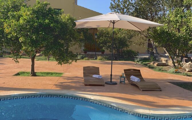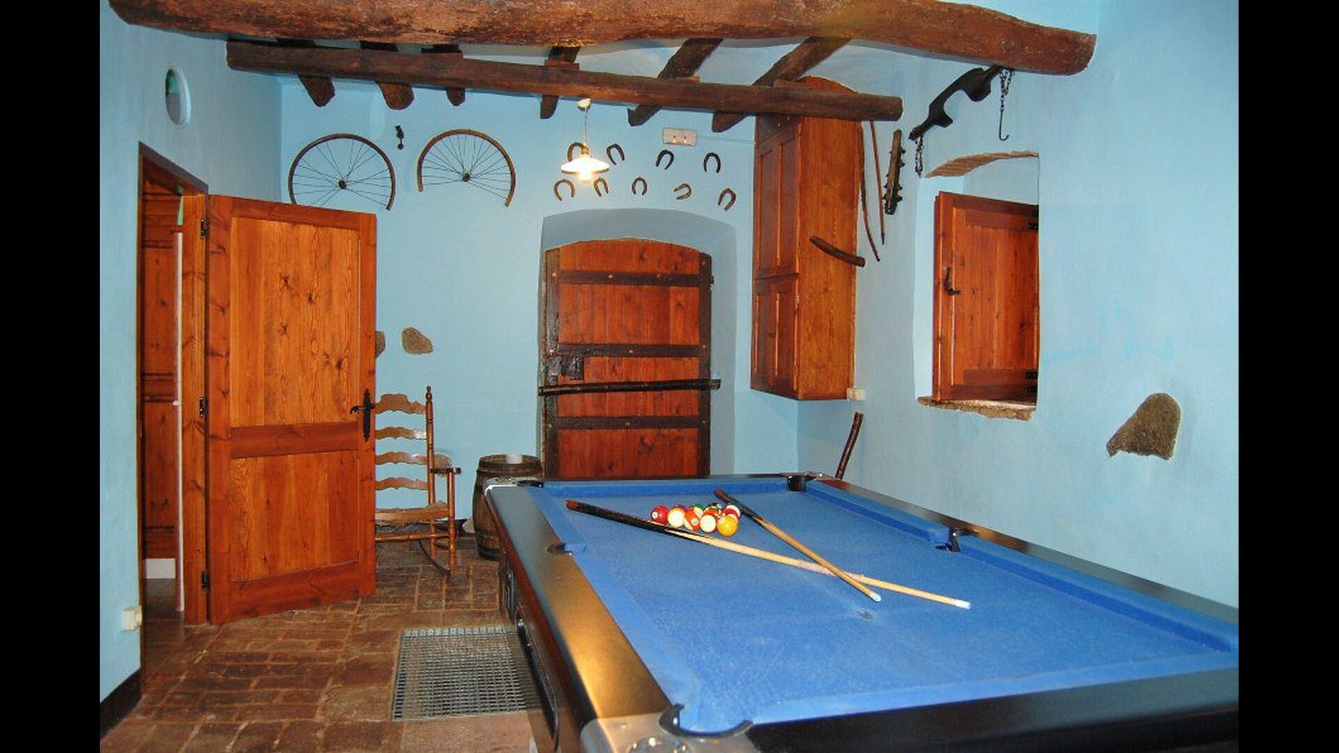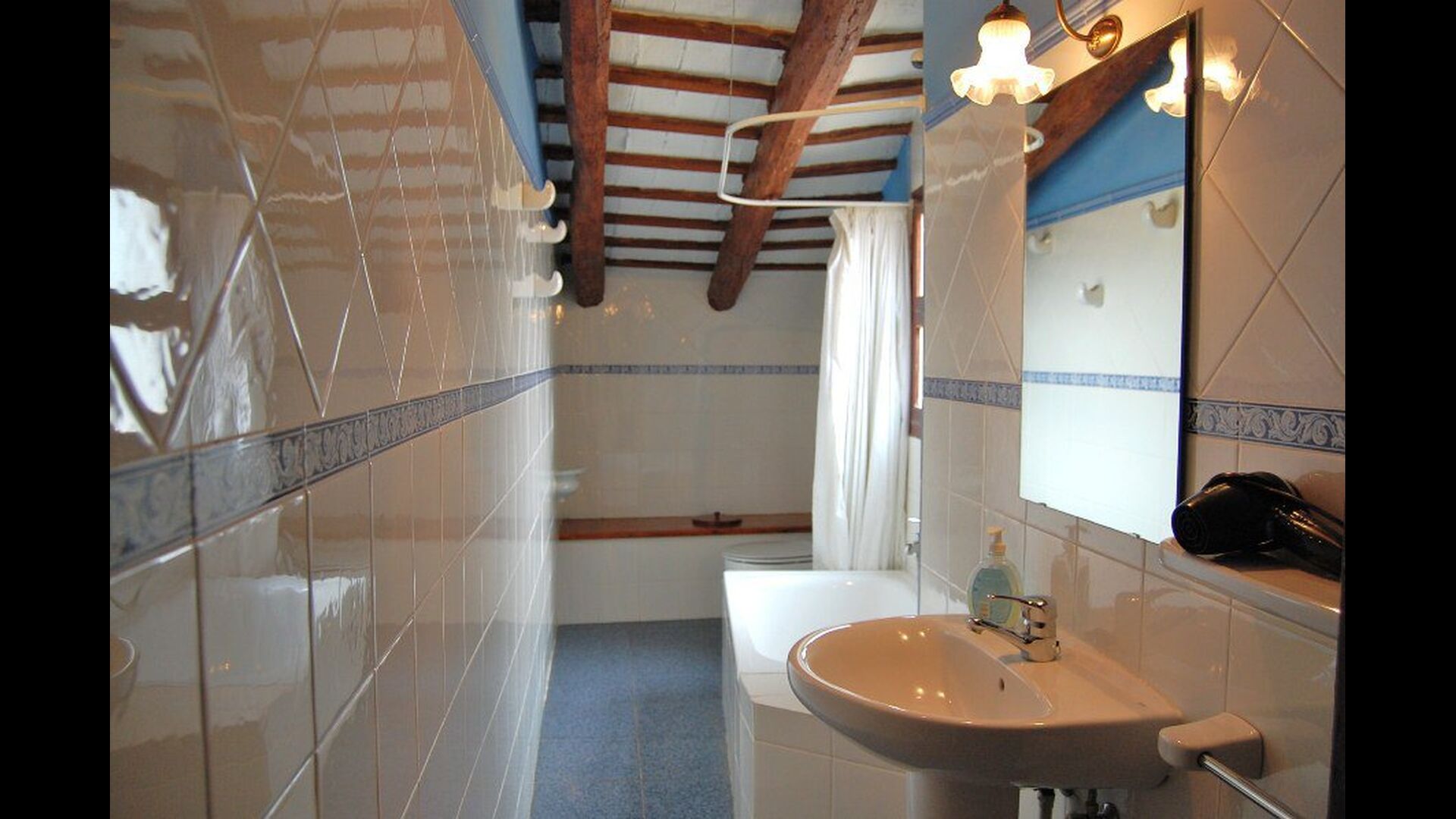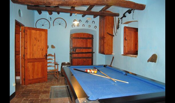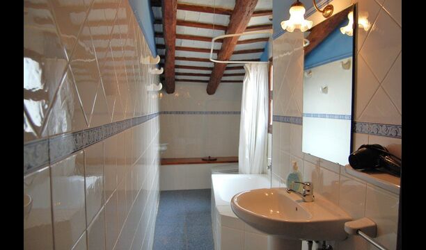 Dieses schöne Haus auf 450m2 Haus kann 16 Gäste beherbergen. Die untere Etage verfügt über eine kleine Kapelle zu Ehren des Heiligen San Antonio. Hier ist auch ein schöner Raum mit Billard. Die Besitzer haben die schönen hölzernen Weinfässer bewahrt um die Atmosphäre zu behalten. Auf dieser Etage befindet sich auch einer der 3 Bäder im Haus und ein Raum mit Waschmaschine und Bügeleisen.