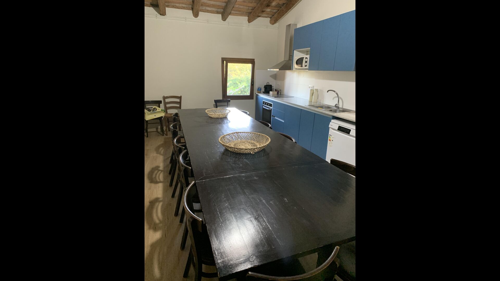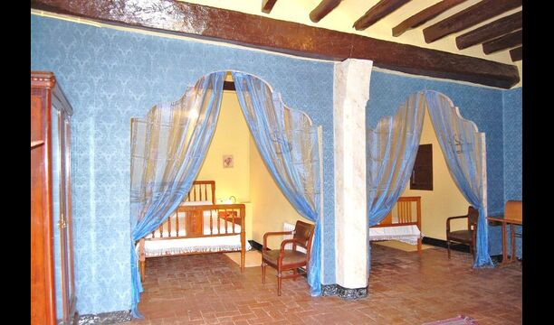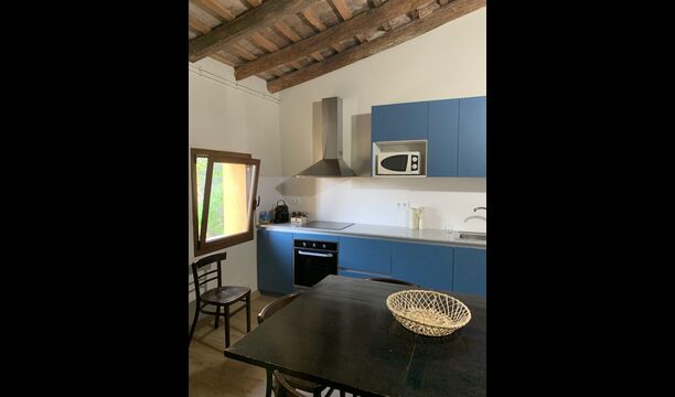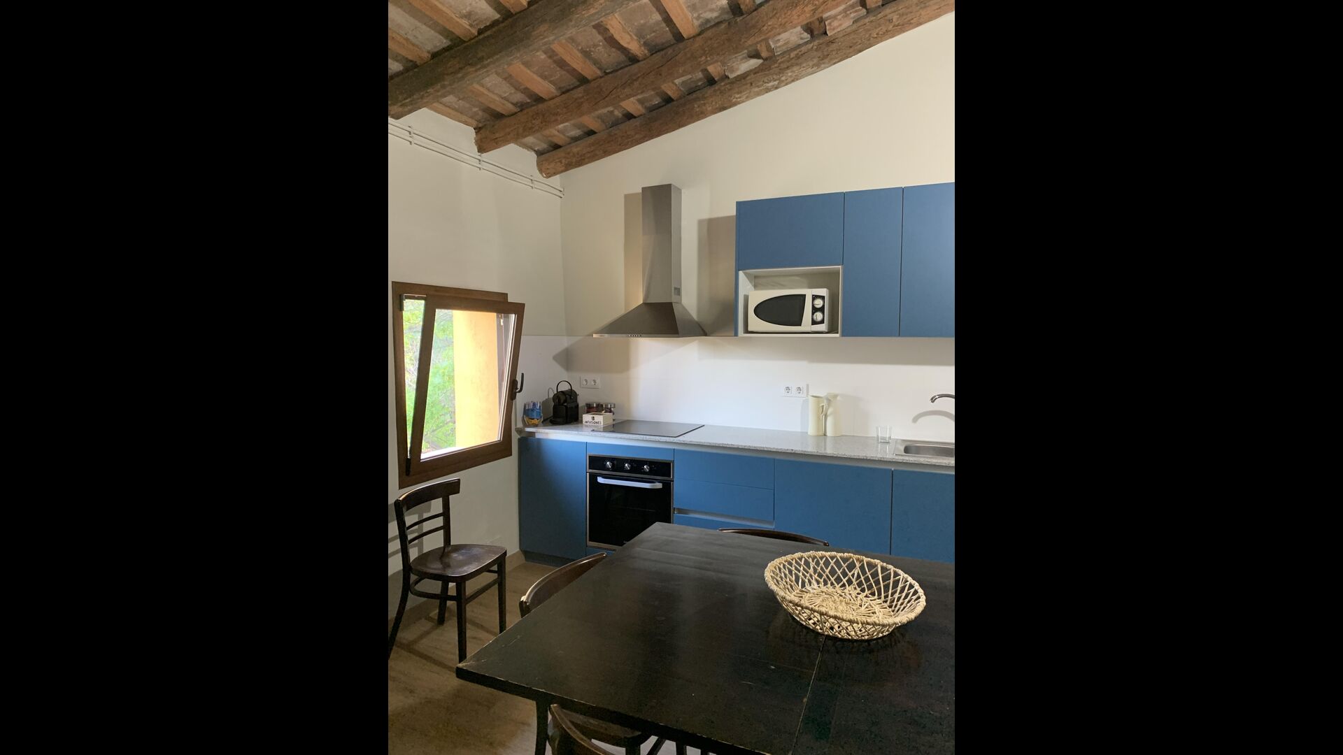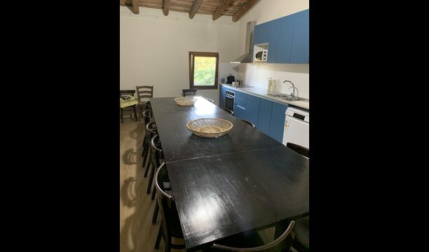 Auf der zweiten Etage des Hauses liegt das alte Esszimmer und eine voll ausgestattete Küche. Auf der ersten Etage finden Sie 6 der 7 Schlafzimmer in der Masia Gaudi. Die Eigentümer haben das Schlafzimmer des Hausherrn "dormie els Senyor de la casa" erhalten. Diese 40m2 Schlafzimmer besteht aus zwei Schlafzimmern, beide mit Doppelbetten und hat zwei Balkone mit Blick auf den Garten. Die 7 Schlafzimmer enthalten insgesamt 3 Doppelbetten und 10 Einzelbetten. Auf dem dritten und obersten Stockwerk liegt ein 40m2 Dreibettzimmer.