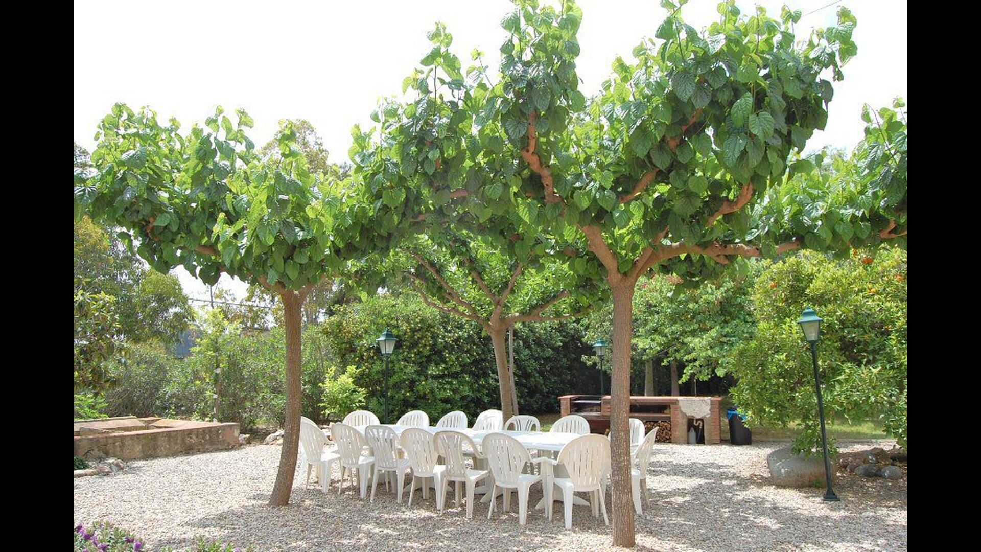 Am hinteren Teil des Gartens gibt es ein großer Hain von Obstbäumen. Hier hatten wir das Vergnügen, Orangen und Granatäpfel zu pflücken als wir das Haus im Frühjahr besuchten. Im Garten gibt es auch Wein und Haselnüsse. Der gesamte Garten wird von der Liebe zu Blumen und Bäumen der Besitzer gekennzeichnet, damit der Garten ein ganz besonderes Erlebnis ist. Das Haus ist privat gelegen, von Bäumen und Sträuchern umgeben. Die Straße zwischen Weinbau Priorat und die schöne Landeshauptstadt Reus läuft auf der anderen Seite der Büsche, so dass die Straße in der Vorgarten zu hören ist .
