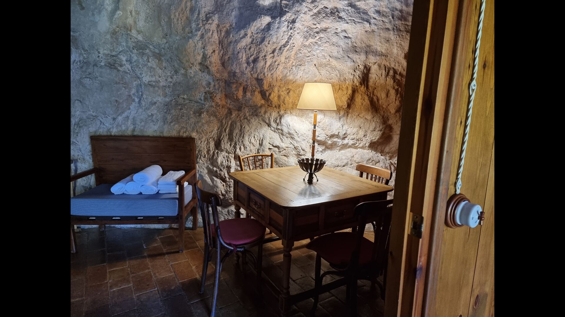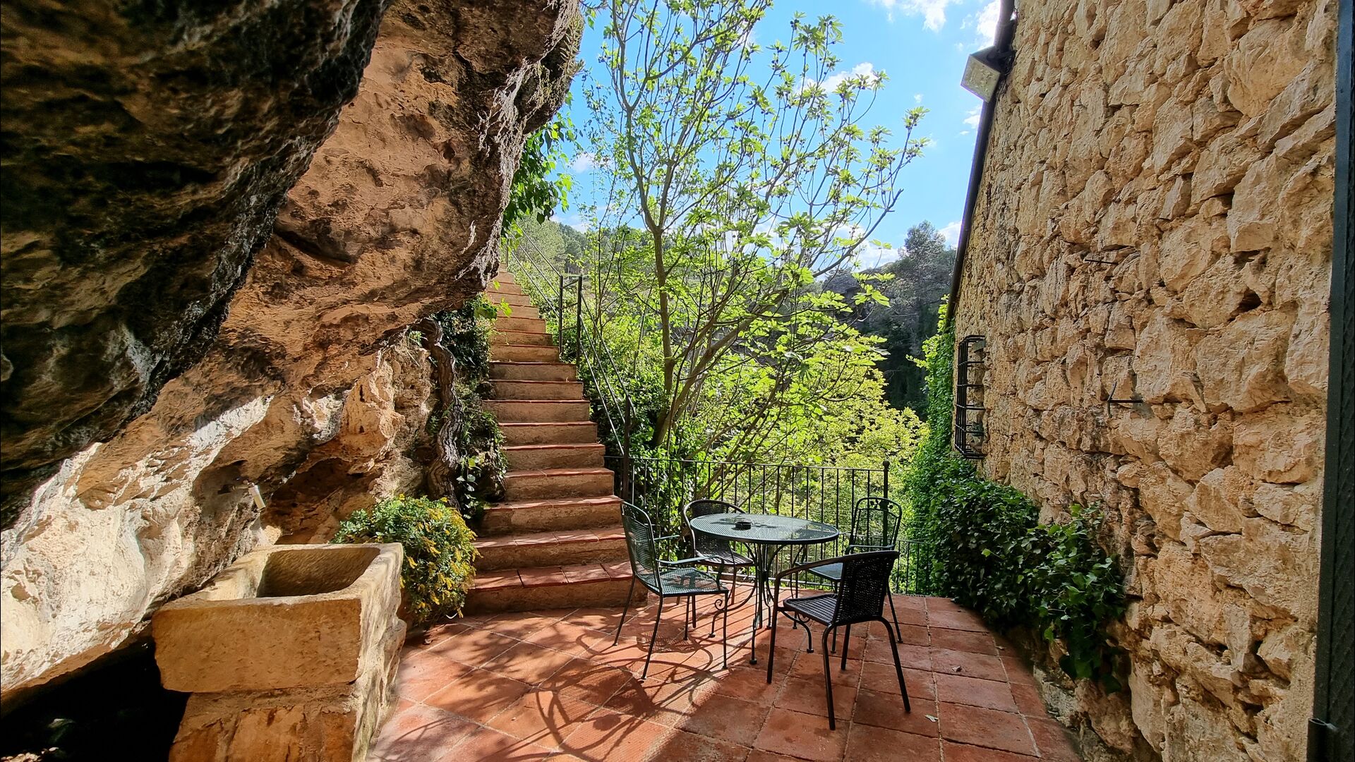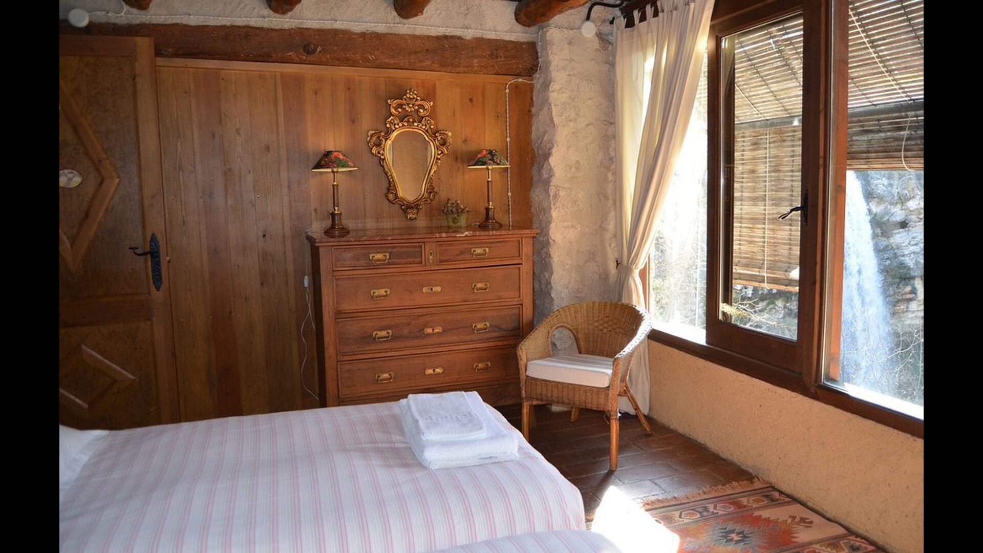 Die Besitzer Pilar und Jordi haben fantastische Arbeit geleistet, indem sie die Wassermühle sorgfältig renoviert und mit geschmackvollen Möbeln ausgestattet haben, um die Authentizität zu bewahren. Das Gebäude hat mehrere Stockwerke und ist direkt an der Seite eines Felsens errichtet, der eigentlich als eine der Wände des Hauses dient.