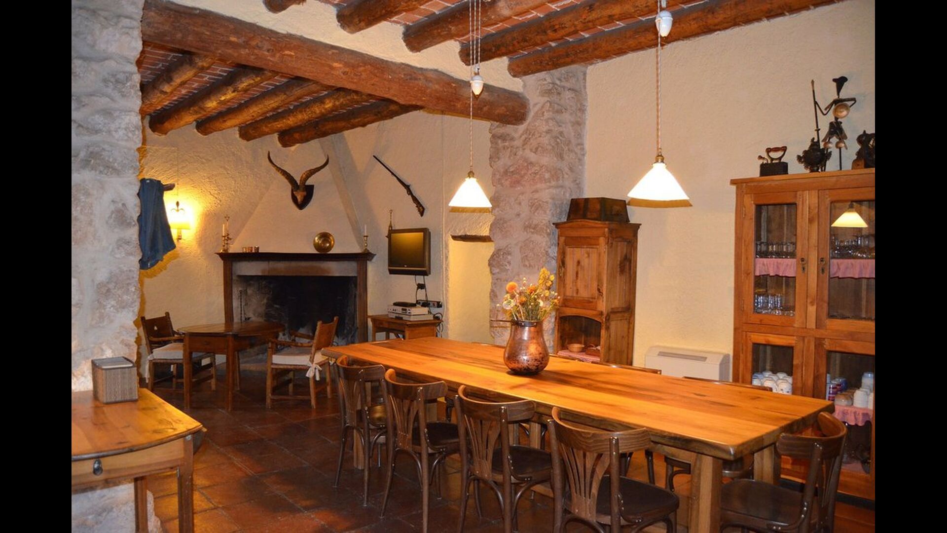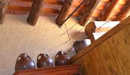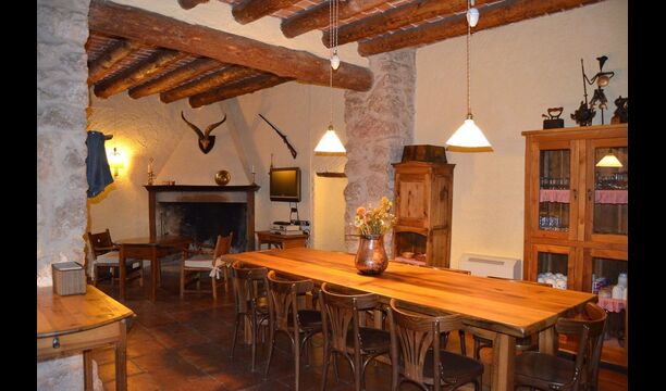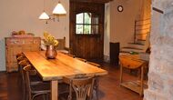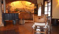 Da es sich um eine Wassermühle handelt, fließt das Wasser unter dem Gebäude hindurch und im untersten Teil sind die Maschinen noch vorhanden. Hier gibt es auch eine Toilette und eine kleine Küche, einen Grill und einen langen Tisch, als Alternative zum Essen draußen oder im Esszimmer.