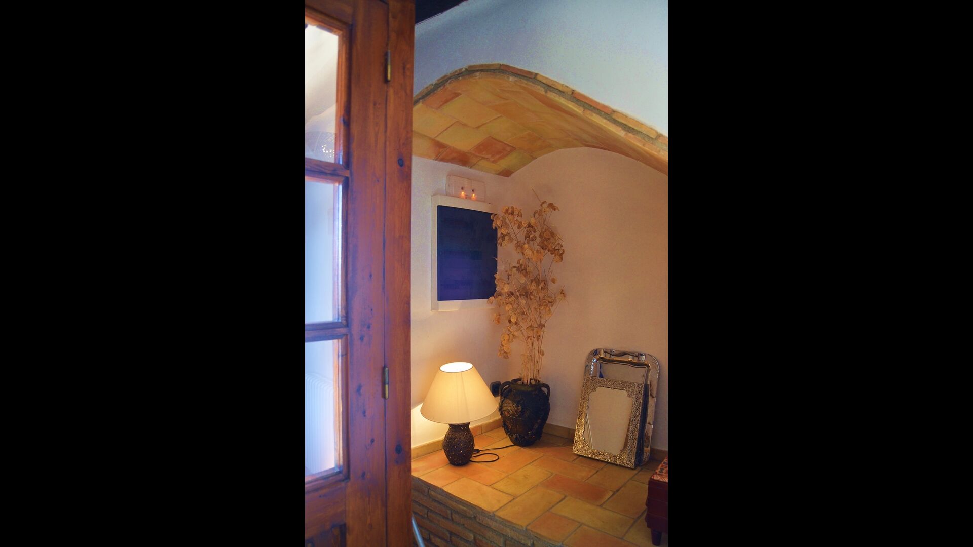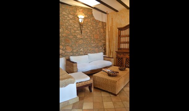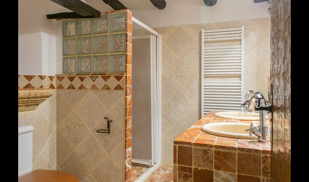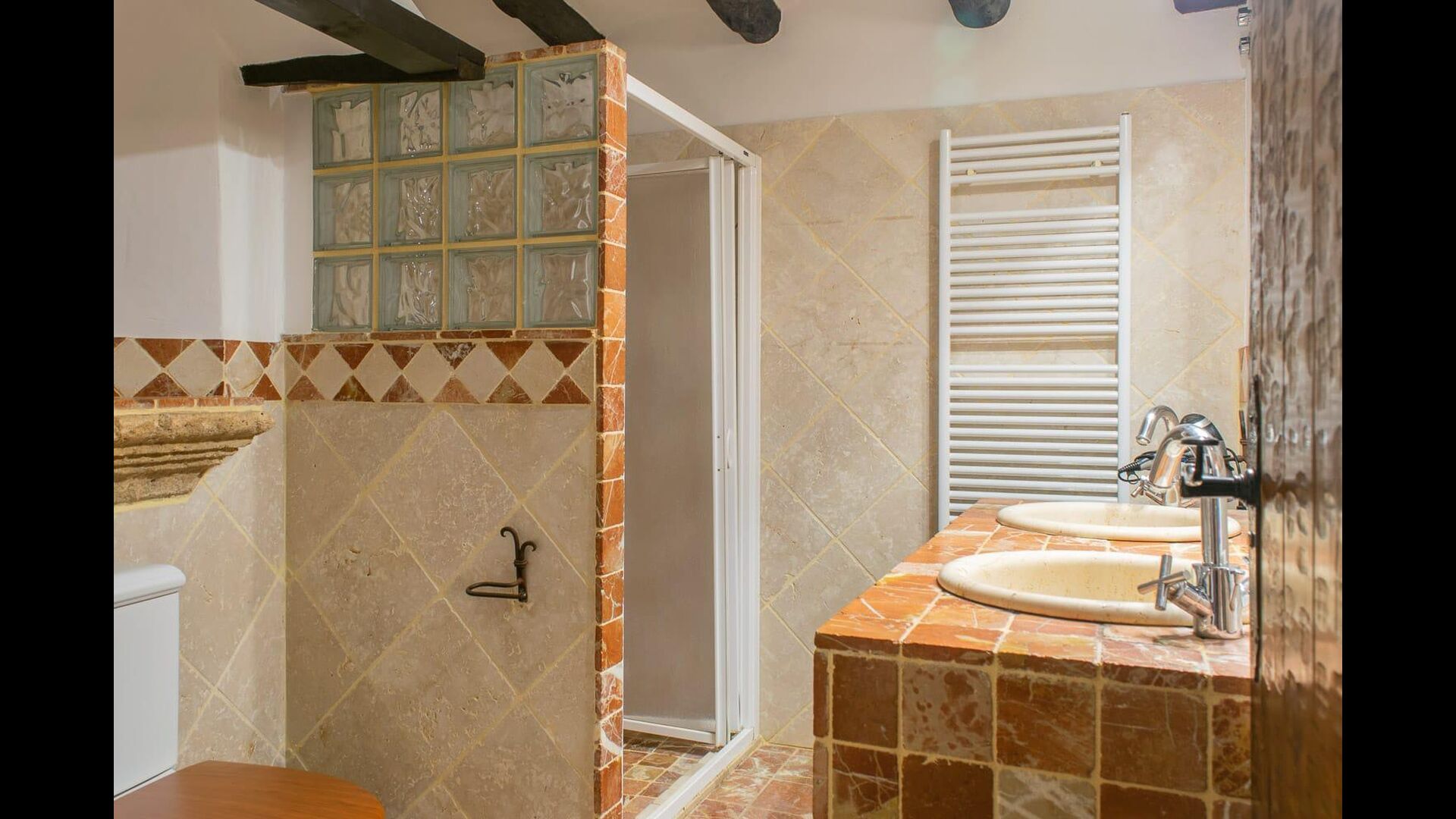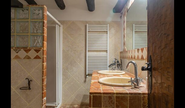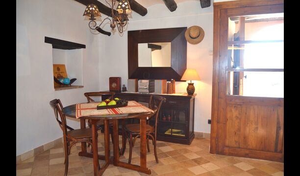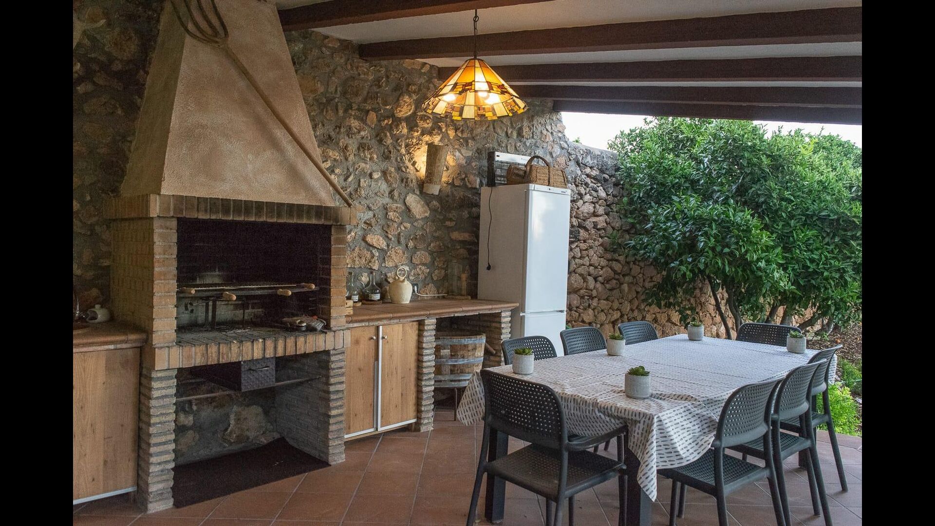 Das Ferienhaus ist sehr authentisch gebaut mit einer typisch ländlichen Struktur und mehreren Etagen. In der unteren Etage finden Sie zwei Essbereiche, von denen einer auch als Aufenthaltsraum mit Sofaecke und TV dient. Der Boden ist als Erweiterung der Außenterrasse und des Poolbereichs angelegt und hier wurde anstelle des alten Kamins ein Gasgrill installiert, auf dem Paella und ähnliches zubereitet werden kann. Im Erdgeschoss finden Sie außerdem die gut ausgestattete Küche. Darüber hinaus finden Sie auch das Badezimmer mit zwei Waschbecken und einer Dusche. (Außerdem extra Badezimmer im unteren Terrassenbereich)