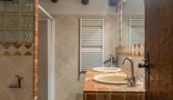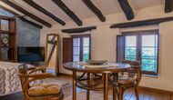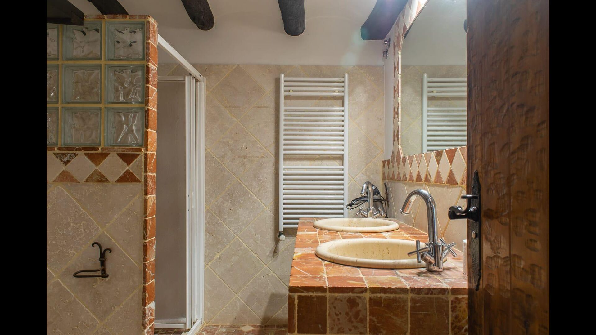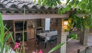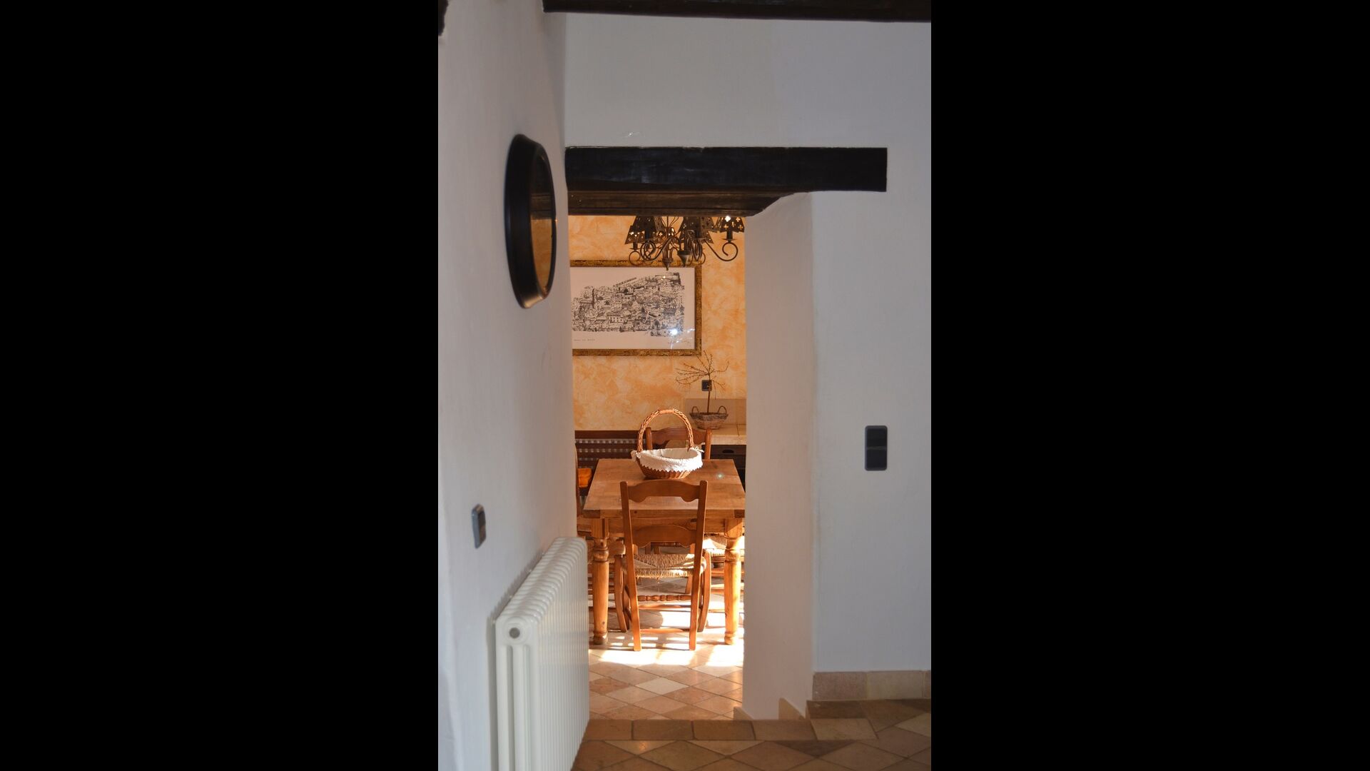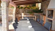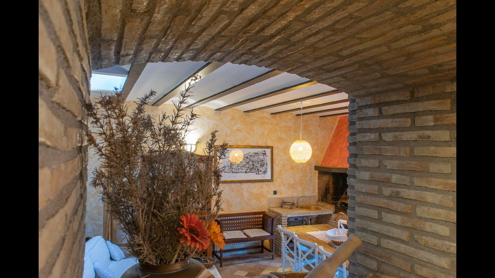 Das Ferienhaus ist sehr authentisch gebaut mit einer typisch ländlichen Struktur und mehreren Etagen. In der unteren Etage finden Sie zwei Essbereiche, von denen einer auch als Aufenthaltsraum mit Sofaecke und TV dient. Der Boden ist als Erweiterung der Außenterrasse und des Poolbereichs angelegt und hier wurde anstelle des alten Kamins ein Gasgrill installiert, auf dem Paella und ähnliches zubereitet werden kann. Im Erdgeschoss finden Sie außerdem die gut ausgestattete Küche. Darüber hinaus finden Sie auch das Badezimmer mit zwei Waschbecken und einer Dusche. (Außerdem extra Badezimmer im unteren Terrassenbereich)