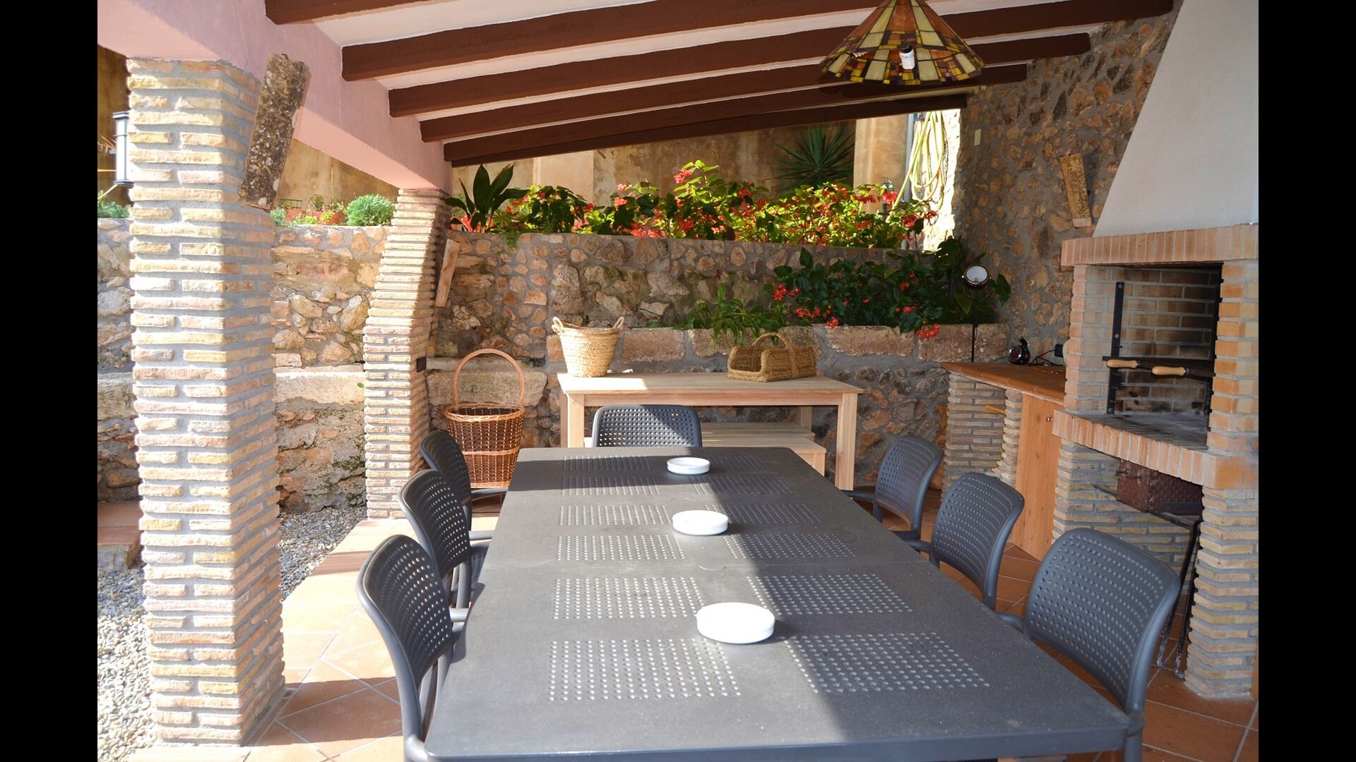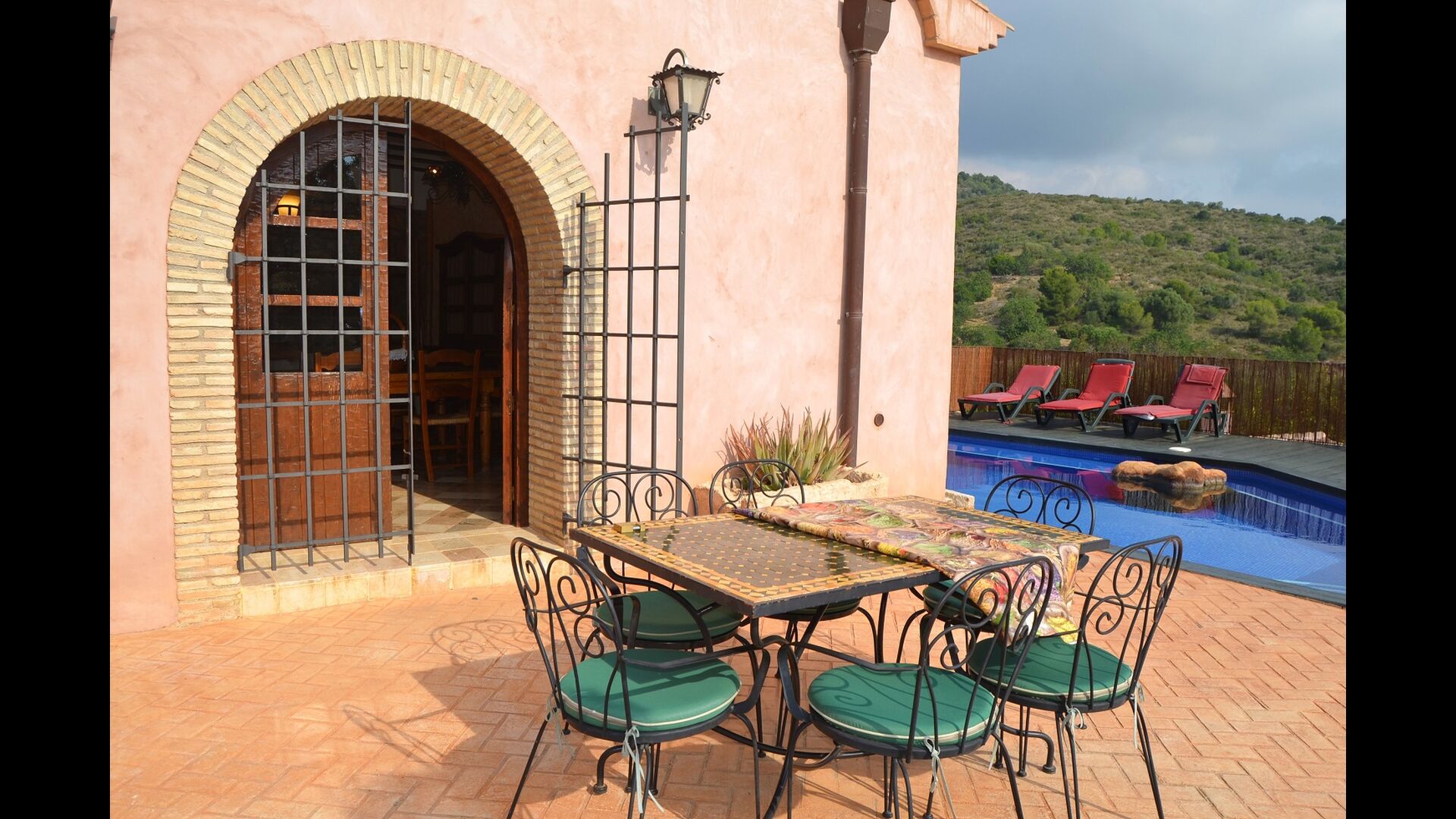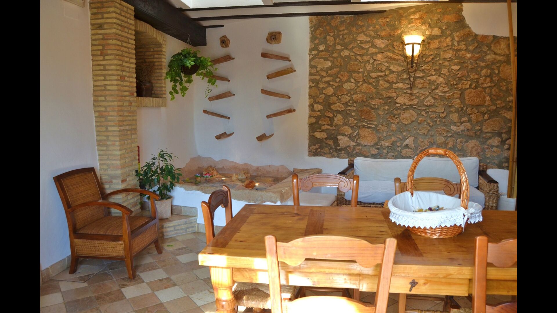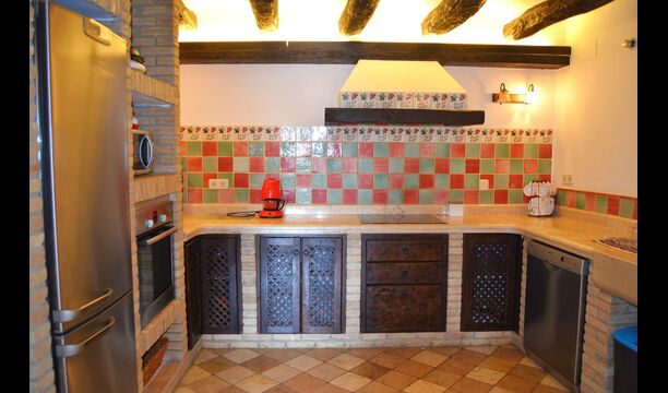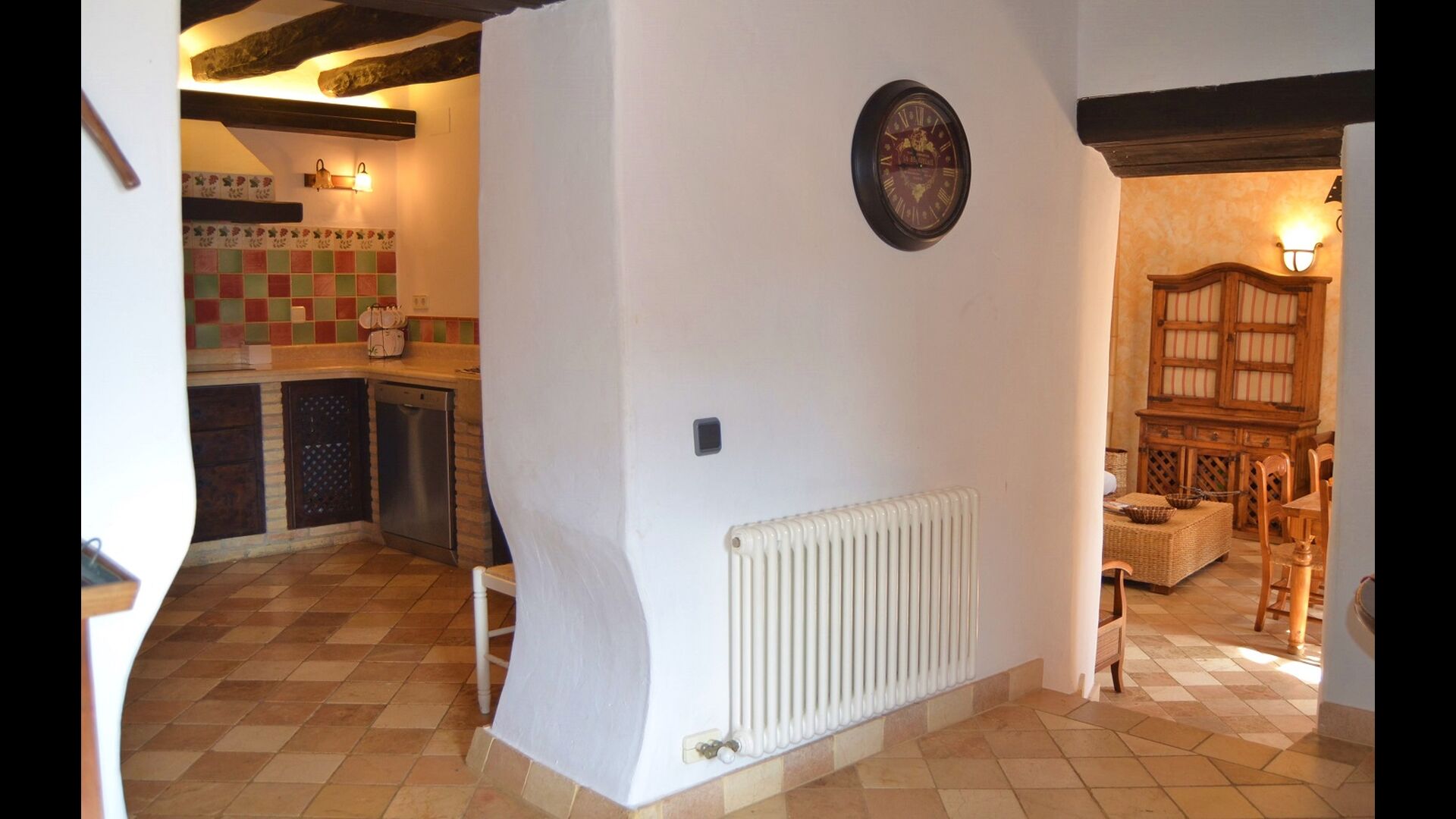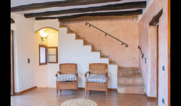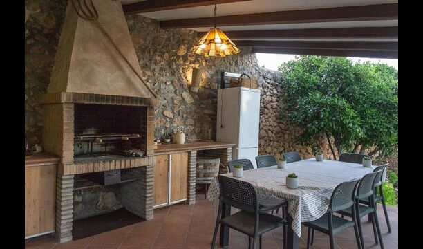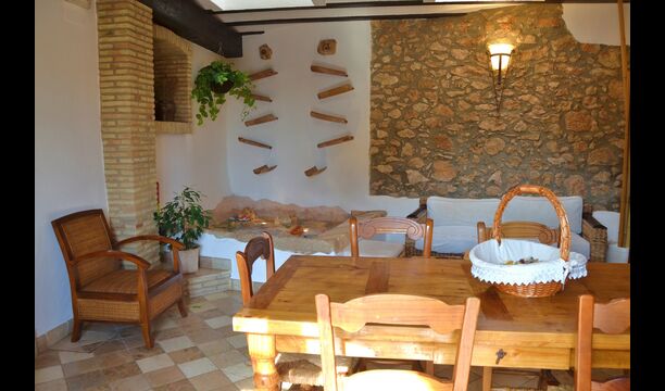 Das Ferienhaus ist authentisch gebaut mit einer typisch ländlichen Struktur und mehreren Ebenen. Im Erdgeschoss finden Sie die gut ausgestattete Küche sowie zwei Essbereiche, von denen einer auch über eine gemütliche Ecke mit Sofas und einem Fernseher verfügt. Es gibt auch ein Badezimmer im Erdgeschoss. Das Erdgeschoss ist mit direktem Zugang zur Außenterrasse und zum Poolbereich verbunden. Draußen finden Sie auch einen tollen Grillplatz, wo ein Gasgrill installiert wurde. Hier können Sie zum Beispiel eine köstliche Paella und andere köstliche spanische Gerichte zubereiten.