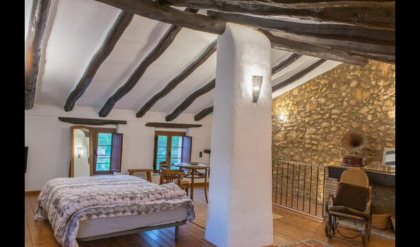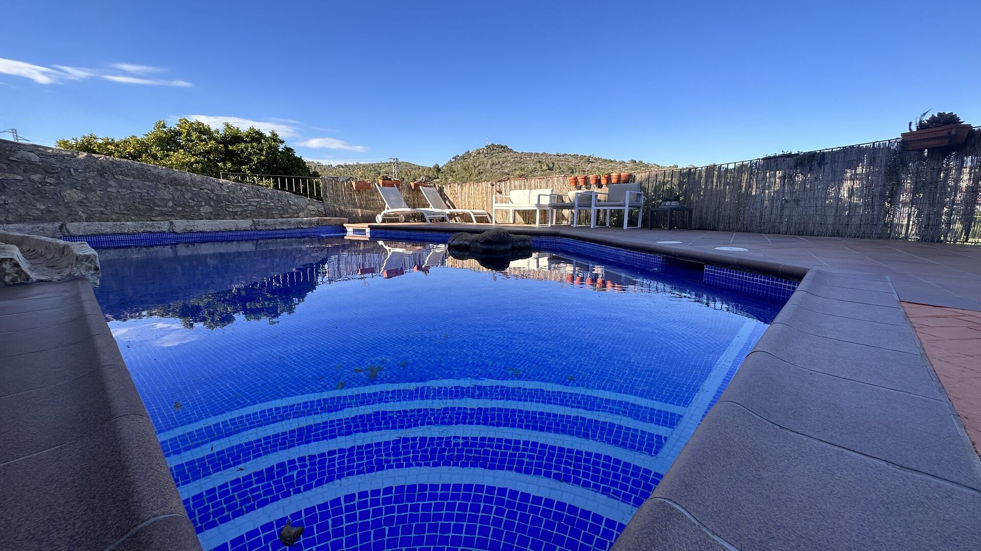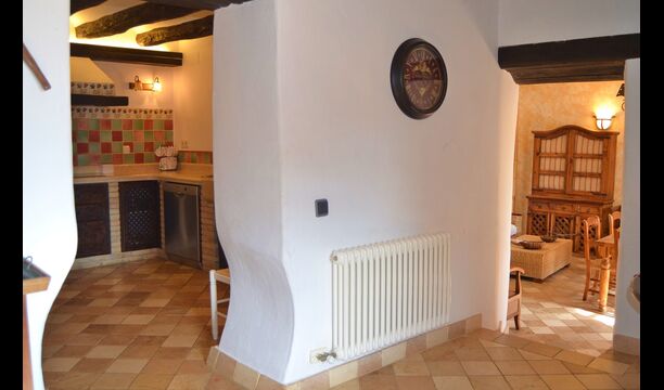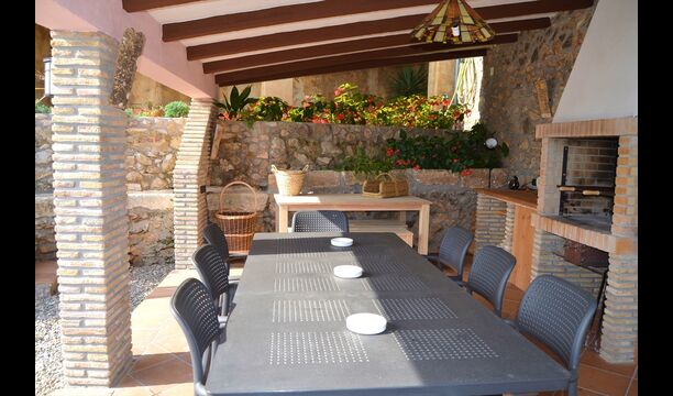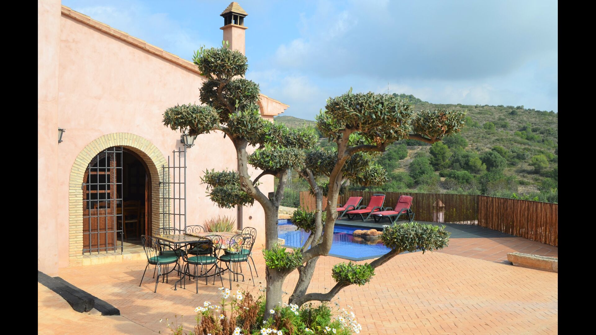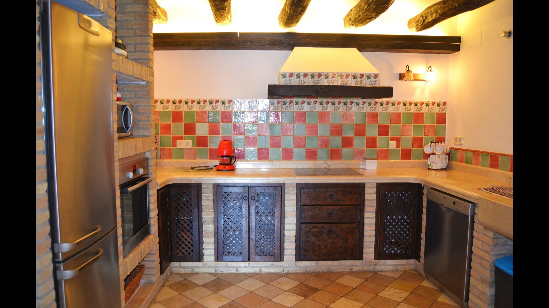 Das Ferienhaus ist authentisch gebaut mit einer typisch ländlichen Struktur und mehreren Ebenen. Im Erdgeschoss finden Sie die gut ausgestattete Küche sowie zwei Essbereiche, von denen einer auch über eine gemütliche Ecke mit Sofas und einem Fernseher verfügt. Es gibt auch ein Badezimmer im Erdgeschoss. Das Erdgeschoss ist mit direktem Zugang zur Außenterrasse und zum Poolbereich verbunden. Draußen finden Sie auch einen tollen Grillplatz, wo ein Gasgrill installiert wurde. Hier können Sie zum Beispiel eine köstliche Paella und andere köstliche spanische Gerichte zubereiten.