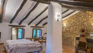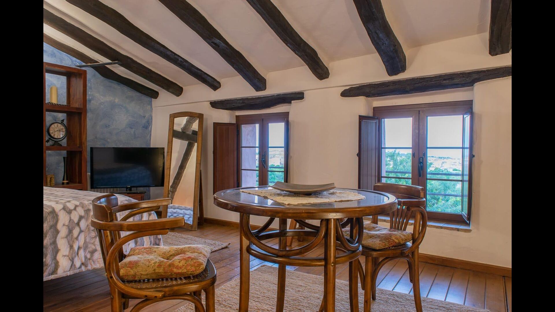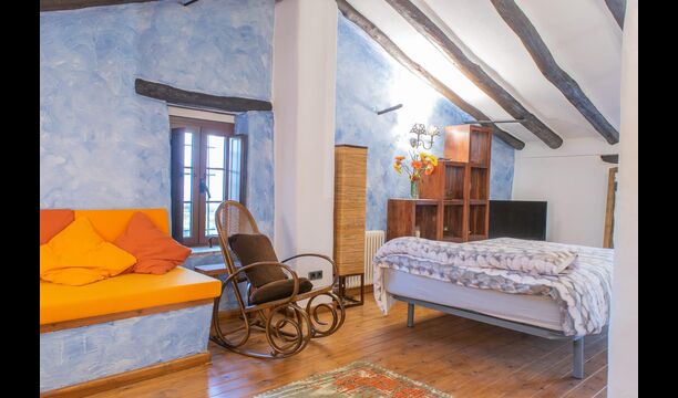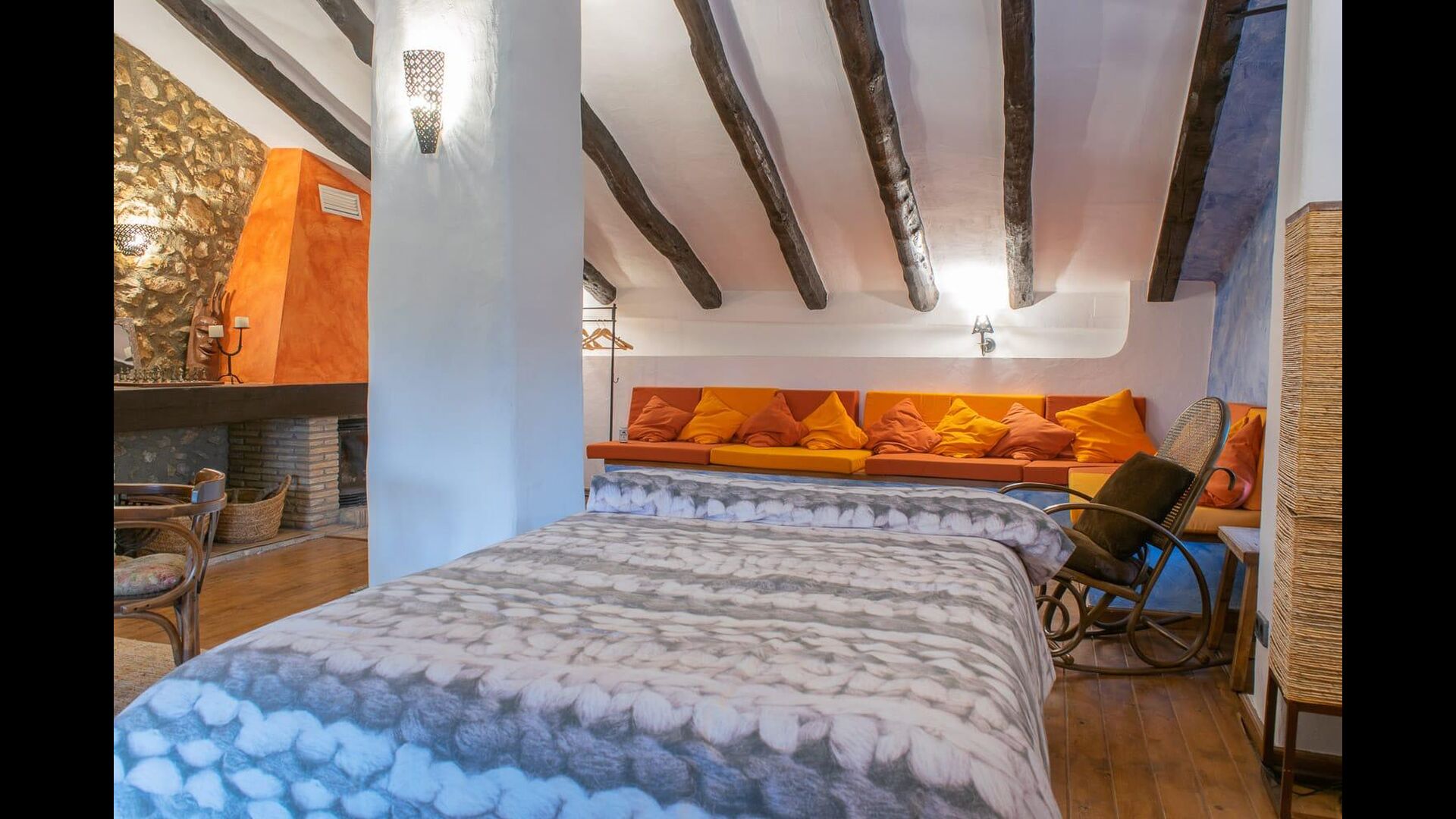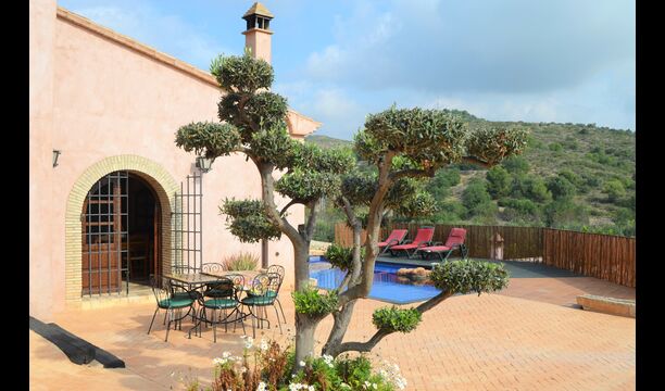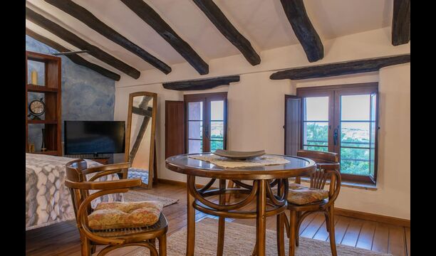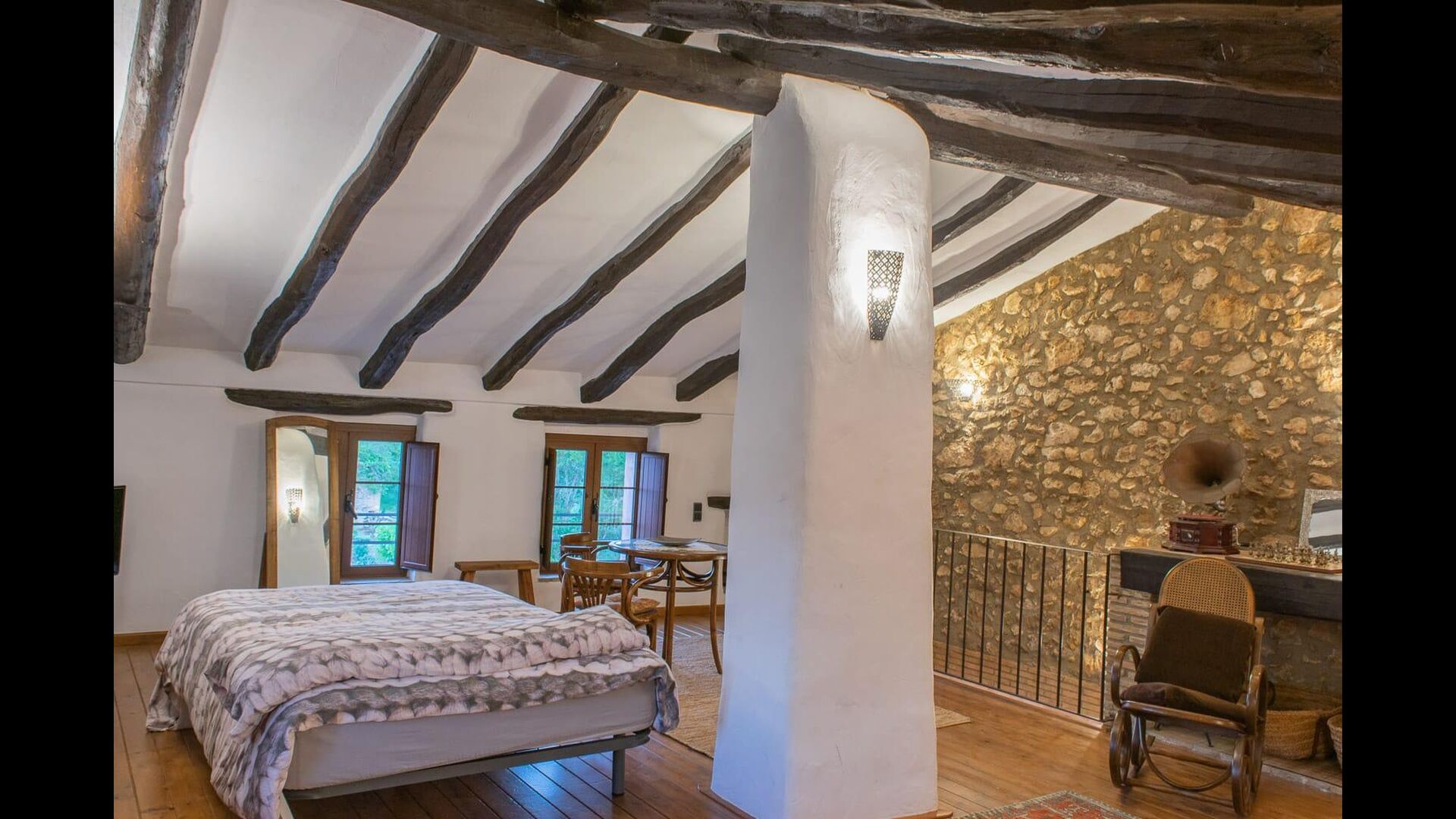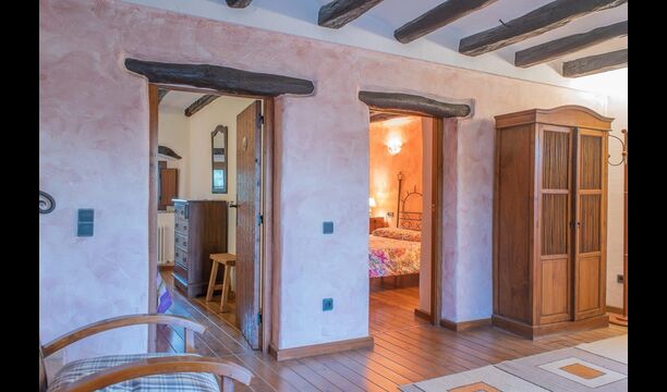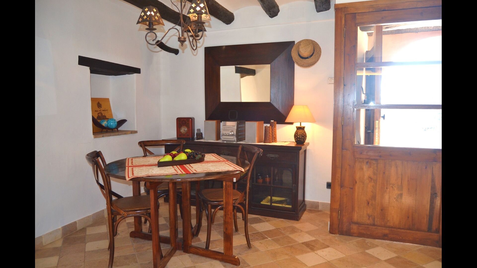 Das Ferienhaus ist authentisch gebaut mit einer typisch ländlichen Struktur und mehreren Ebenen. Im Erdgeschoss finden Sie die gut ausgestattete Küche sowie zwei Essbereiche, von denen einer auch über eine gemütliche Ecke mit Sofas und einem Fernseher verfügt. Es gibt auch ein Badezimmer im Erdgeschoss. Das Erdgeschoss ist mit direktem Zugang zur Außenterrasse und zum Poolbereich verbunden. Draußen finden Sie auch einen tollen Grillplatz, wo ein Gasgrill installiert wurde. Hier können Sie zum Beispiel eine köstliche Paella und andere köstliche spanische Gerichte zubereiten.