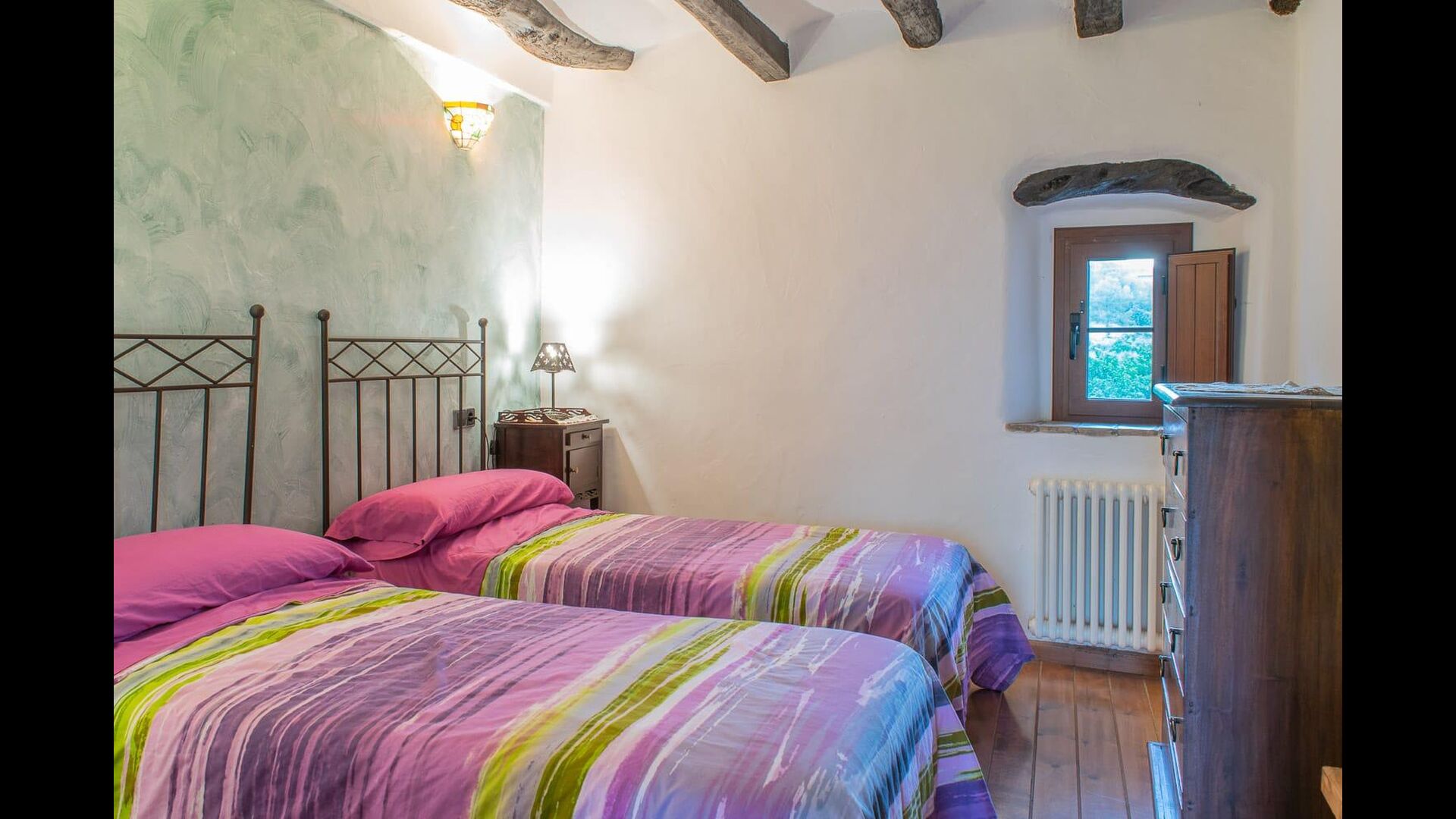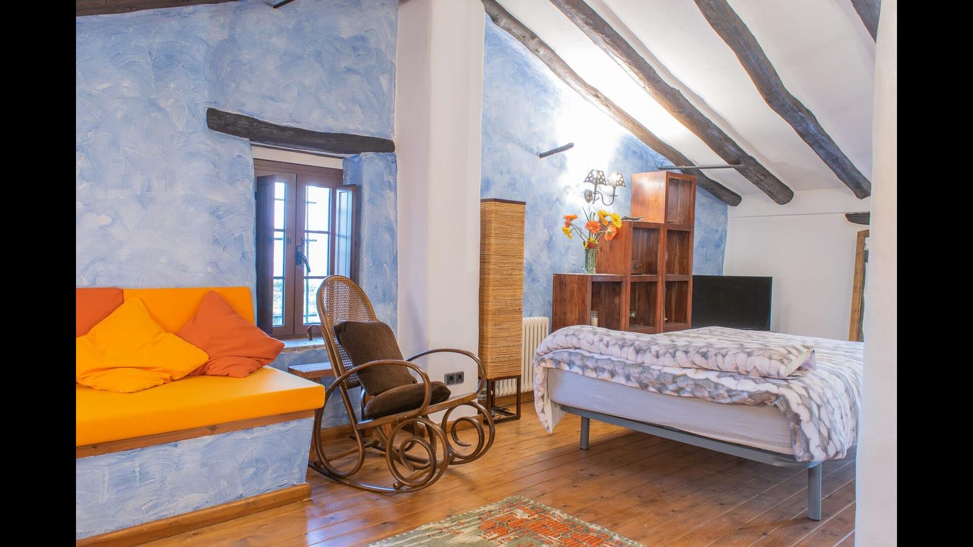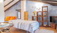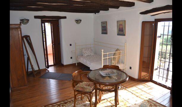 Die Schlafzimmer befinden sich im ersten und zweiten Stock. Ein mittlerer Raum ist mit einem Bett ausgestattet und kann bei Bedarf als Einzelzimmer genutzt werden. Von hier aus gibt es auch Zugang zu einer sehr schönen Terrasse mit herrlichem Blick auf das Mittelmeer in der Ferne. Auf dieser Etage befinden sich außerdem zwei geräumige Doppelzimmer, von denen eines mit einem Doppelbett und das andere mit zwei Einzelbetten ausgestattet ist.