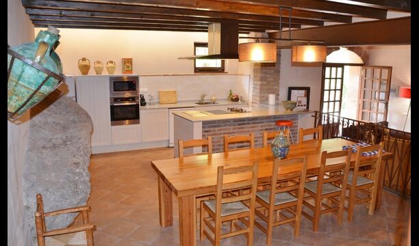 Can de Quima bietet eine Mischung von dem komfortablen und authentischen: Sie können zum Beispiel in den Pool die Wärme genießen und gleichzeitig den Blick über die Weinberge haben. Vor allem ist der Pool ist eine Sammelpunkt für alle in der Reisegruppe. Während die Kinder spielen, können Sie im Wasser abkühlen, wenn die Sonne auf ihrem Höhepunkt ist und die Hitze steigt. Im Poolbereich gibt es Liegestühle das Maximum aus dem südlichen Sommer zu bekommen. Gleich hinter dem Pool befindet sich eine Terrasse mit einem runden Esstisch, an dem alle Mahlzeiten genossen werden können. Vor allem beim Abendessen, wenn die Abendstunden kühler und komfortabel sind.