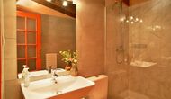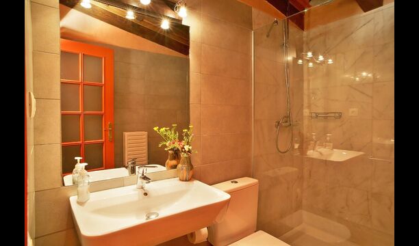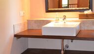Wenn Sie die Treppe vom Mehrzwecksraum hinauf gehen, treffen Sie die schöne und geräumige Zimmer. Es gibt vier Doppelzimmer, drei von ihnen haben Doppelbetten und einem Einzelbettent. Alle Zimmer sind mit eigenem Bad (en suite) verbunden.