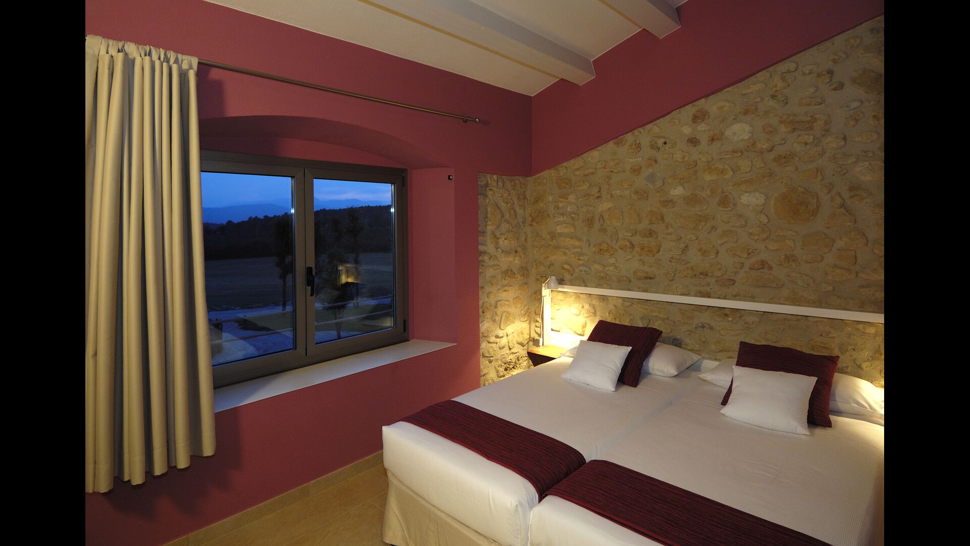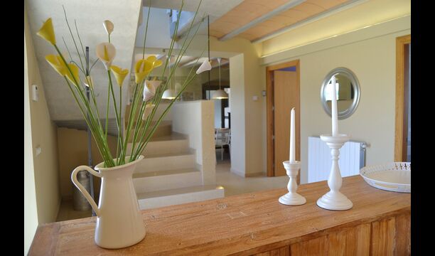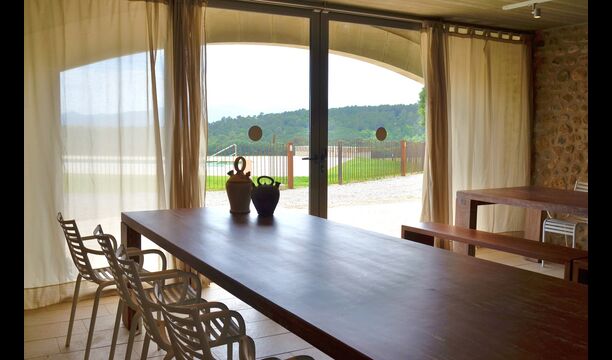Masia Plañellas besteht aus zwei identischen Gebäuden mit jeweils 5 Schlafzimmern, was mehr Privatsphäre bietet, wenn Sie in einer großen Urlaubsgruppe sind. Diese beiden Gebäude sind durch einen Speisesaal verbunden, in dem das Abendessen genossen werden kann. Im Obergeschoss befindet sich eine Dachterrasse mit herrlichem Blick auf die Landschaft.
