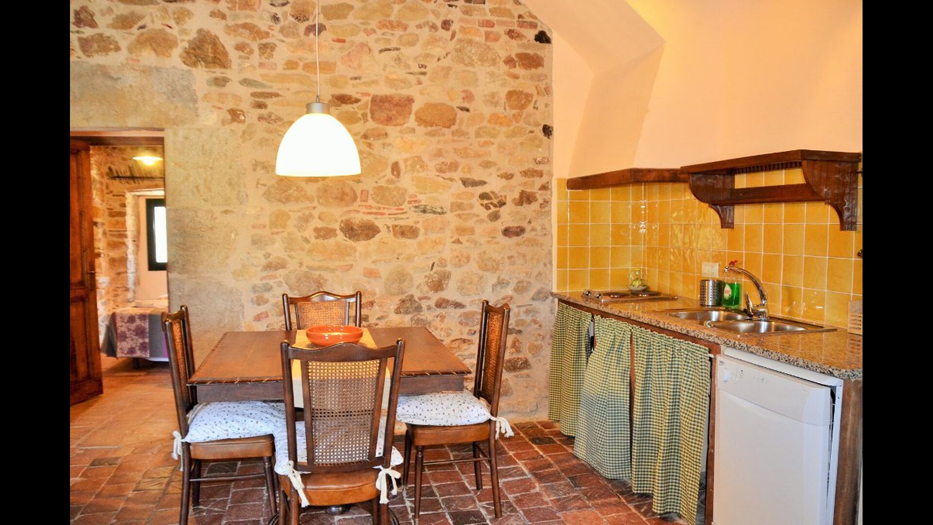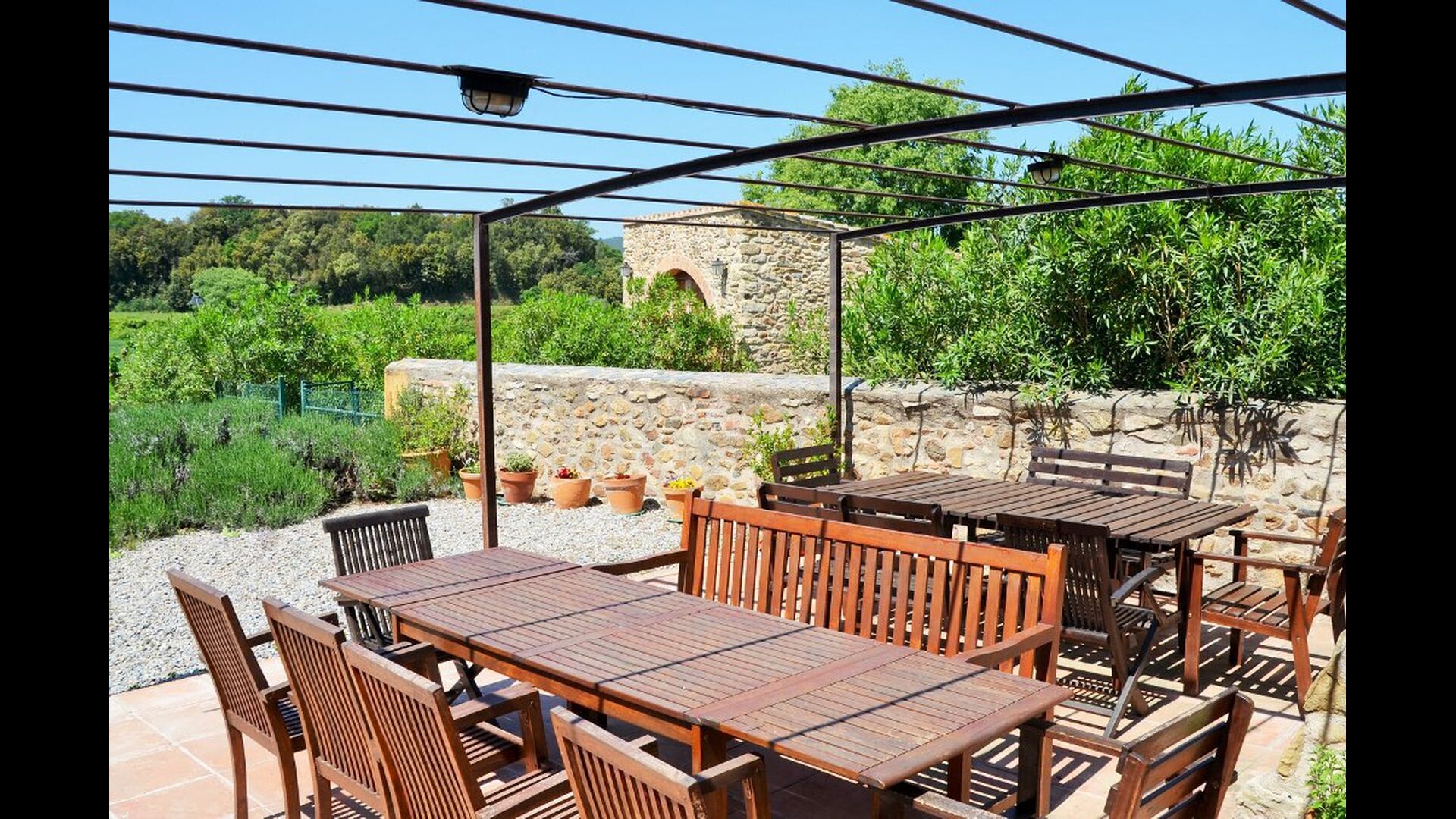 Das Haus hat einen sehr großen Garten mit einem großen Swimmingpool, mit einem Zaun gesichert und es gibt Liegestühle, wo Sie sich entspannen können, nur um von einem erfrischenden Bad unterbrochen. Der Rest des Gartens hat mehrere Terrassenbereiche und Orangen- und Zitronenbäumen bietet sowohl Schatten und einen Hauch von der mediterranen Atmosphäre. Im zu Fuß erreichbaren Dorf, gibt es ein paar Restaurants und ein Geschäft mit ein wenig von allem. Jeden Tag um 12:00 Uhr, kommt ein Bäckerwagen zum Markt, damit Sie Sie frisches Brot für das Mittagessen kaufen können. Es gibt größere Supermärkte in La Bisbal, die für seine Keramik bekannt ist. Diese Stadt ist nur 5 km vom Haus entfernt.
