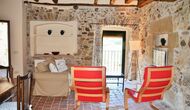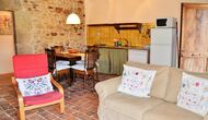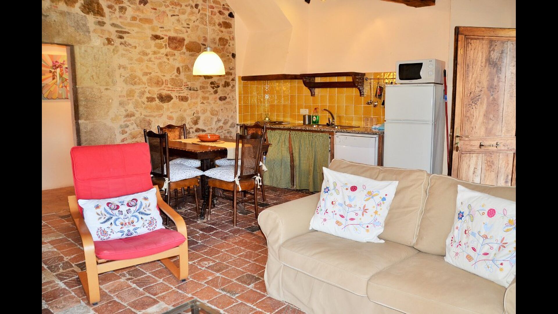 Diese Wohnung, "Alsin 1", ist auf der ersten Etage. Es ist in seinem Design sehr schön und rustikal. Das Wohnzimmer hat einen schönen, authentischen Steinboden und ein Sofabereich mit Flachbild -TV und schöne Aussicht auf den Garten.