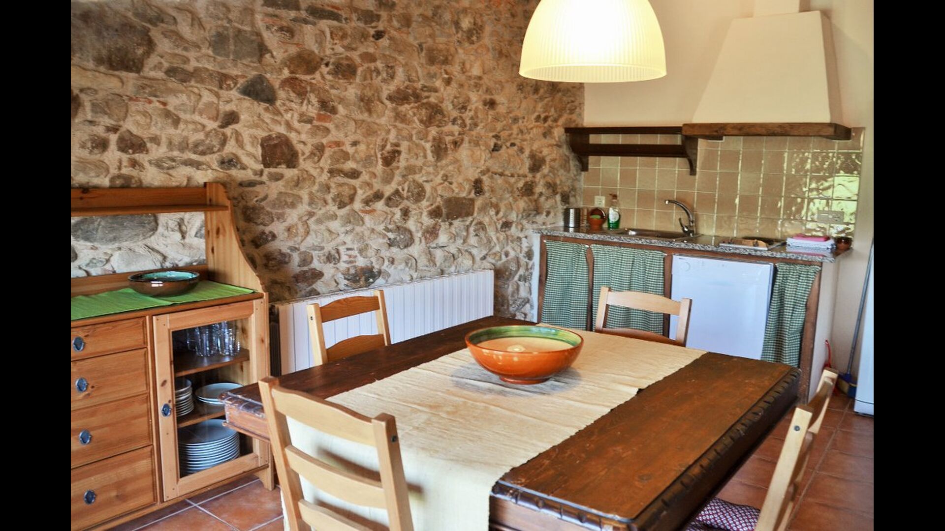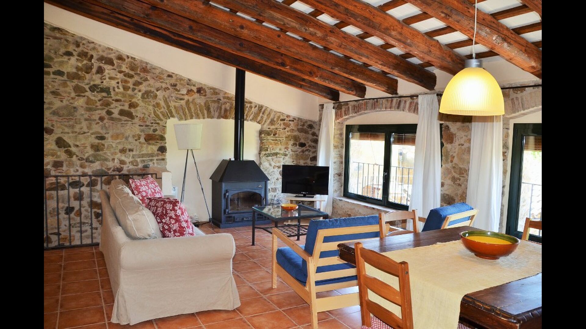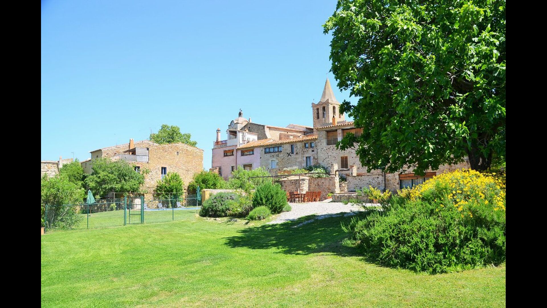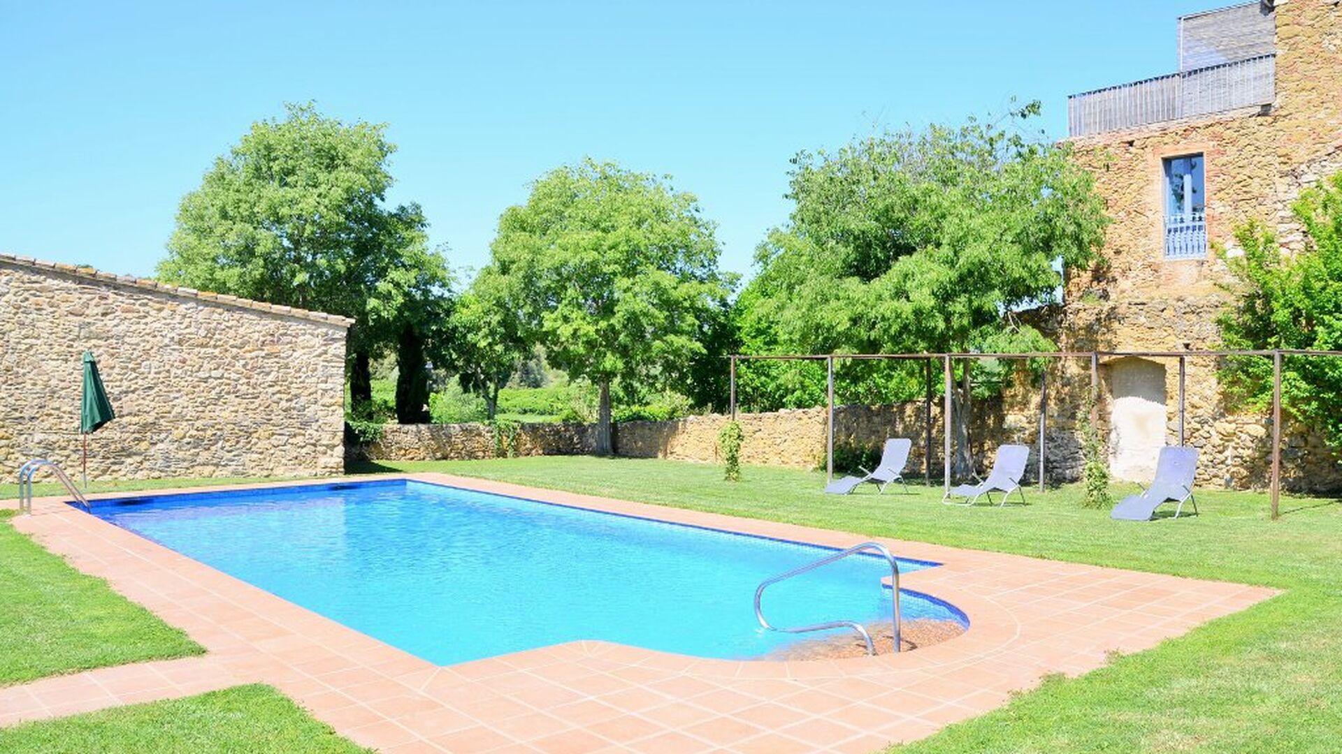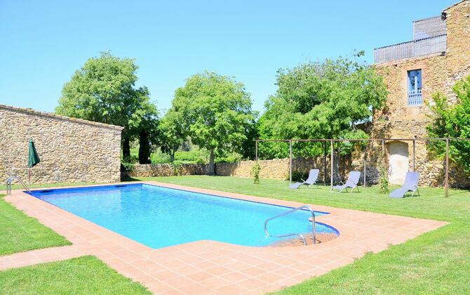 Das Haus hat einen sehr großen Garten mit einem großen Swimmingpool, mit einem Zaun gesichert und es gibt Liegestühle, wo Sie sich entspannen können, nur um von einem erfrischenden Bad unterbrochen. Der Rest des Gartens hat mehrere Terrassenbereiche und Orangen- und Zitronenbäumen bietet sowohl Schatten und einen Hauch von der mediterranen Atmosphäre. Im zu Fuß erreichbaren Dorf, gibt es ein paar Restaurants und ein Geschäft mit ein wenig von allem. Jeden Tag um 12:00 Uhr, kommt ein Bäckerwagen zum Markt, damit Sie Sie frisches Brot für das Mittagessen kaufen können. Es gibt größere Supermärkte in La Bisbal, die für seine Keramik bekannt ist. Diese Stadt ist nur 5 km vom Haus entfernt.