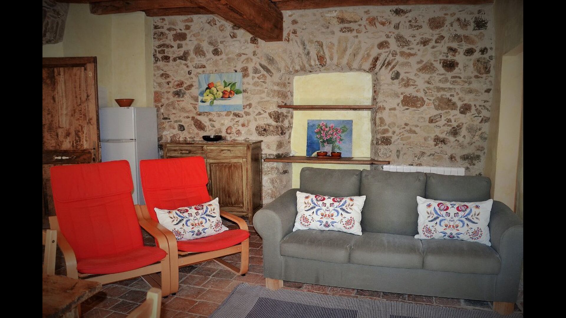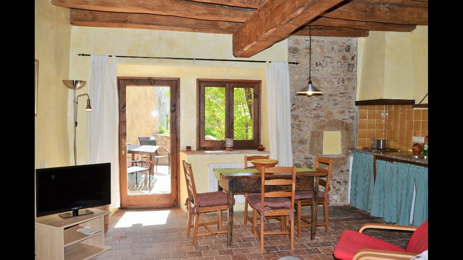 "Olive 3" ist eine schöne Wohnung mit typisch katalanischen Eigenschaften: Es hat schöne Steinmauern und Holzbalkendecke. Das Wohnzimmer ist mit der Küche in einen gemeinsamen Raum, die auch TV, Sofa und Stühlen hat, kombiniert. Es gibt ein schönes Schlafzimmer mit einem großen Doppelbett. Darüber hinaus gibt es ein großes, modernes Bad mit Dusche. Die Wohnung verfügt über eine private Terrasse, damit Sie die warme Katalanische Sonne genießen können.