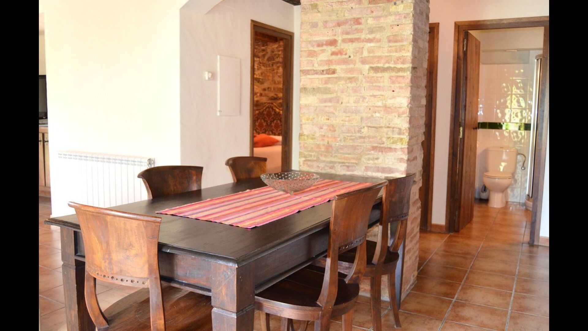 Casa Vermellas-Verde ist eine Wohnung im ersten Stock. Es verfügt über eine gemütliche private überdachte Terrasse vor dem Eingang. Man tritt in das gemeinsame Wohnzimmer ein, wo es eine Sofa-Ecke mit Ledermöbeln und Flachbild-TV gibt und nächst einen Esstisch aus massivem Holz und passenden Stühlen. Die Küche ist mit keramische Kochplatten, Backofen, Geschirrspüler, Kühlschrank, Mikrowelle und Toaster ausgestattet.. Es gibt 2 Schlafzimmer, ein mit Doppelbett und eines mit zwei Einzelbetten. Für Familien mit kleinen Kindern stehen ein Kinderbett und ein Hochstuhl zur Verfügung. Diese authentische und qualitativ hochwertige ländlichen Wohnung ist auch mit WLAN-Internet ausgestattet.